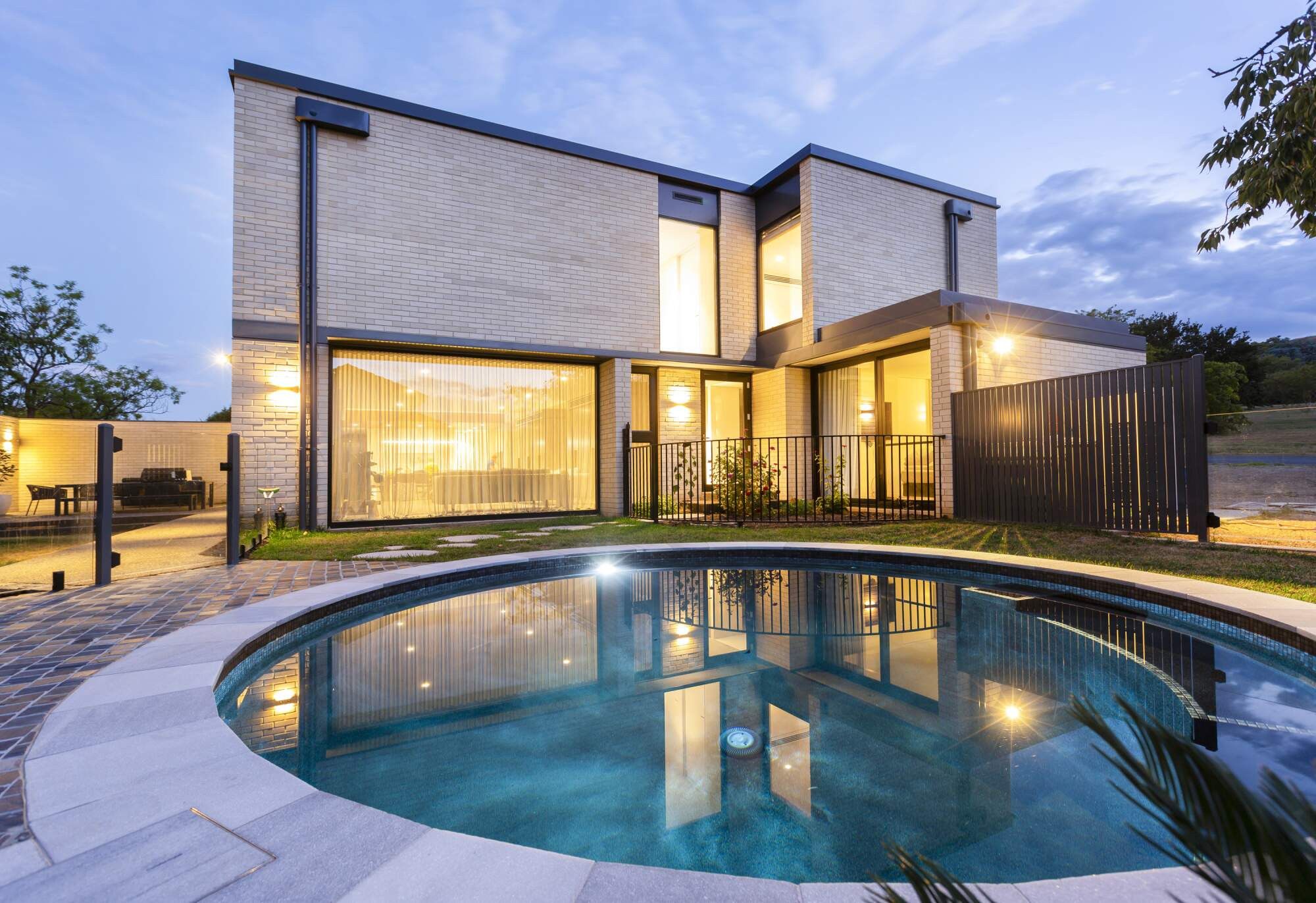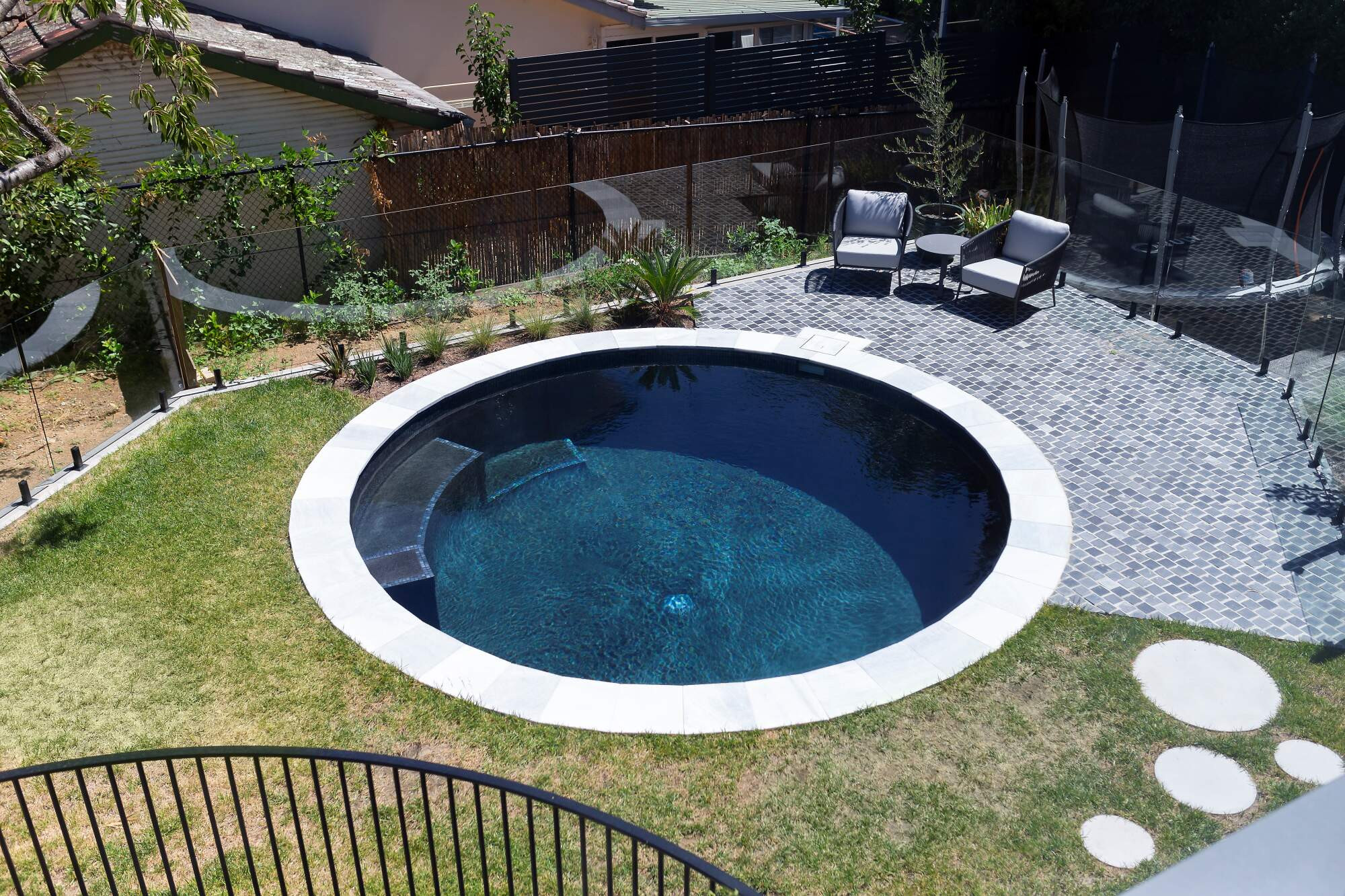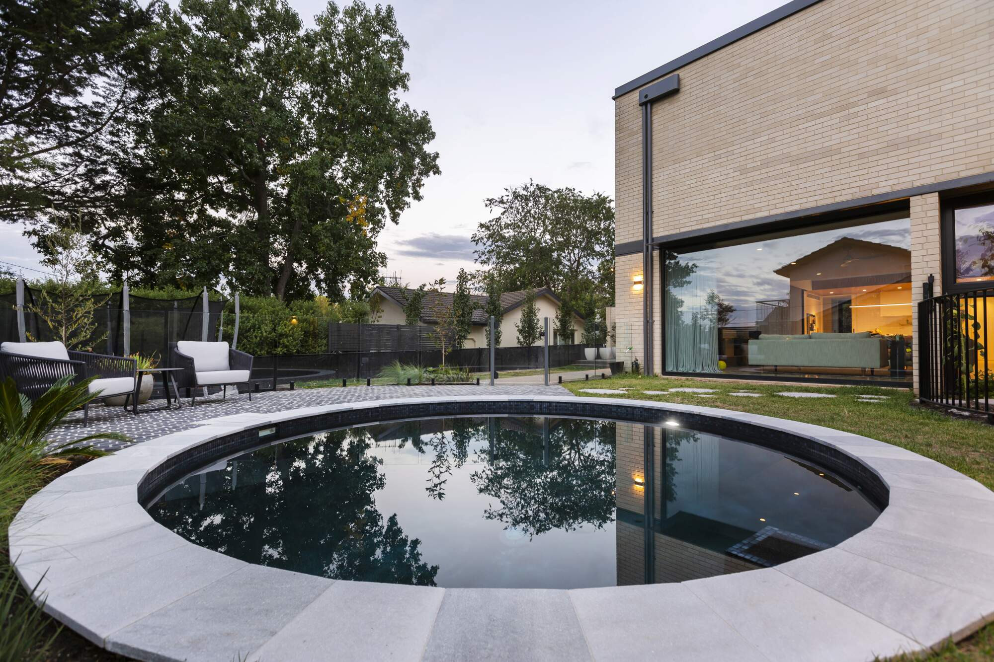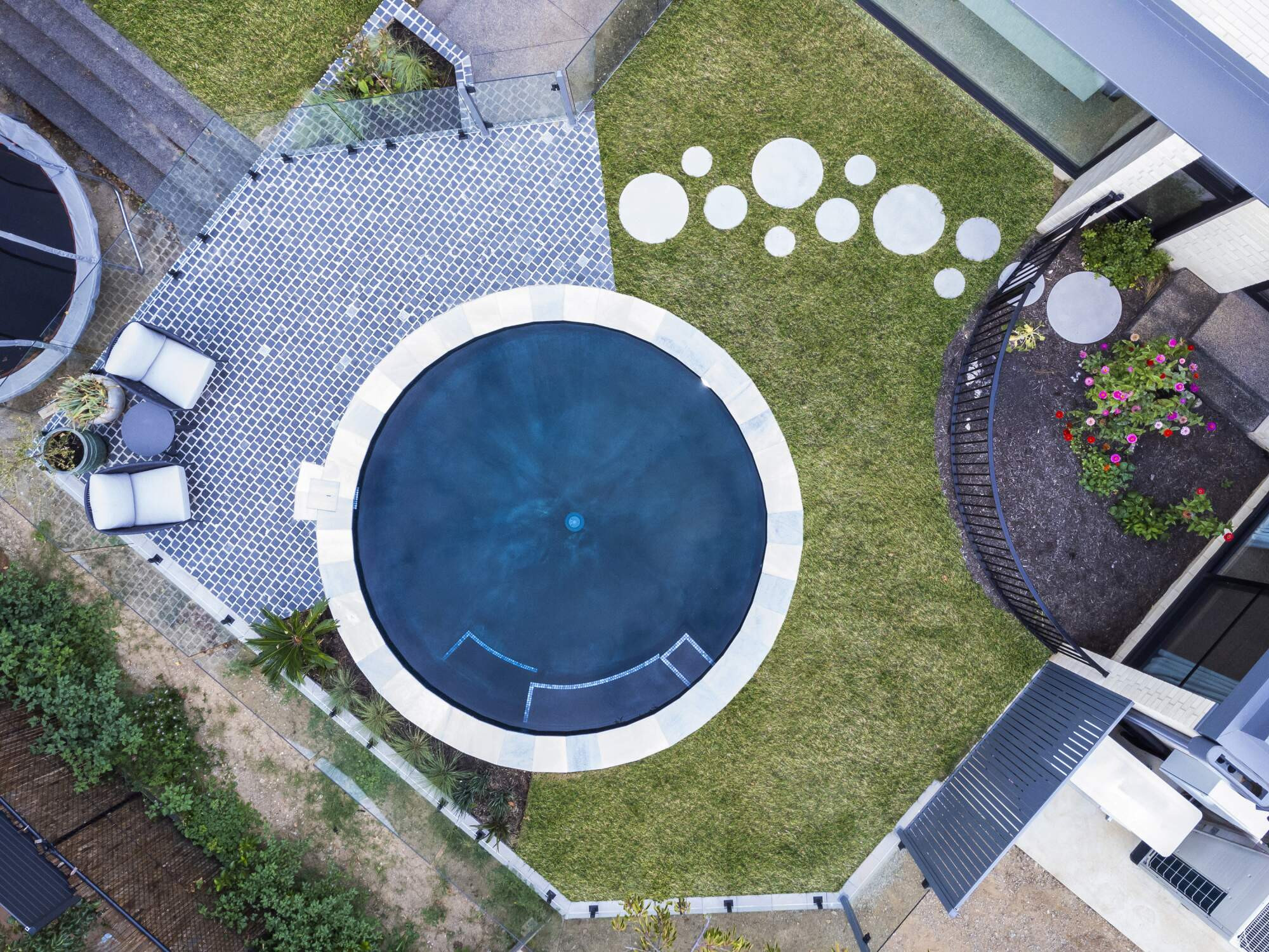 An exciting and functional, modern swimming pool. It is the true focal point, drawing the eye and adding a sense of structure to the free flowing garden design.