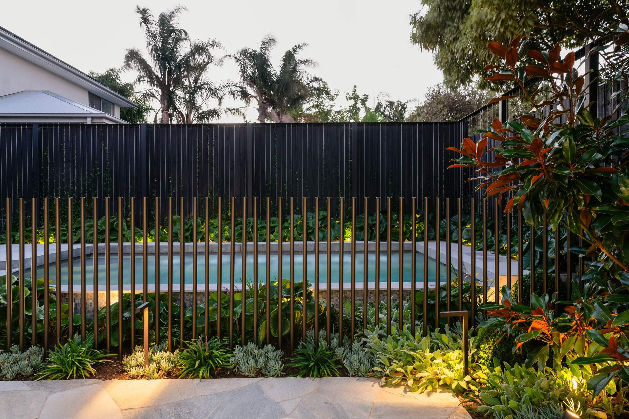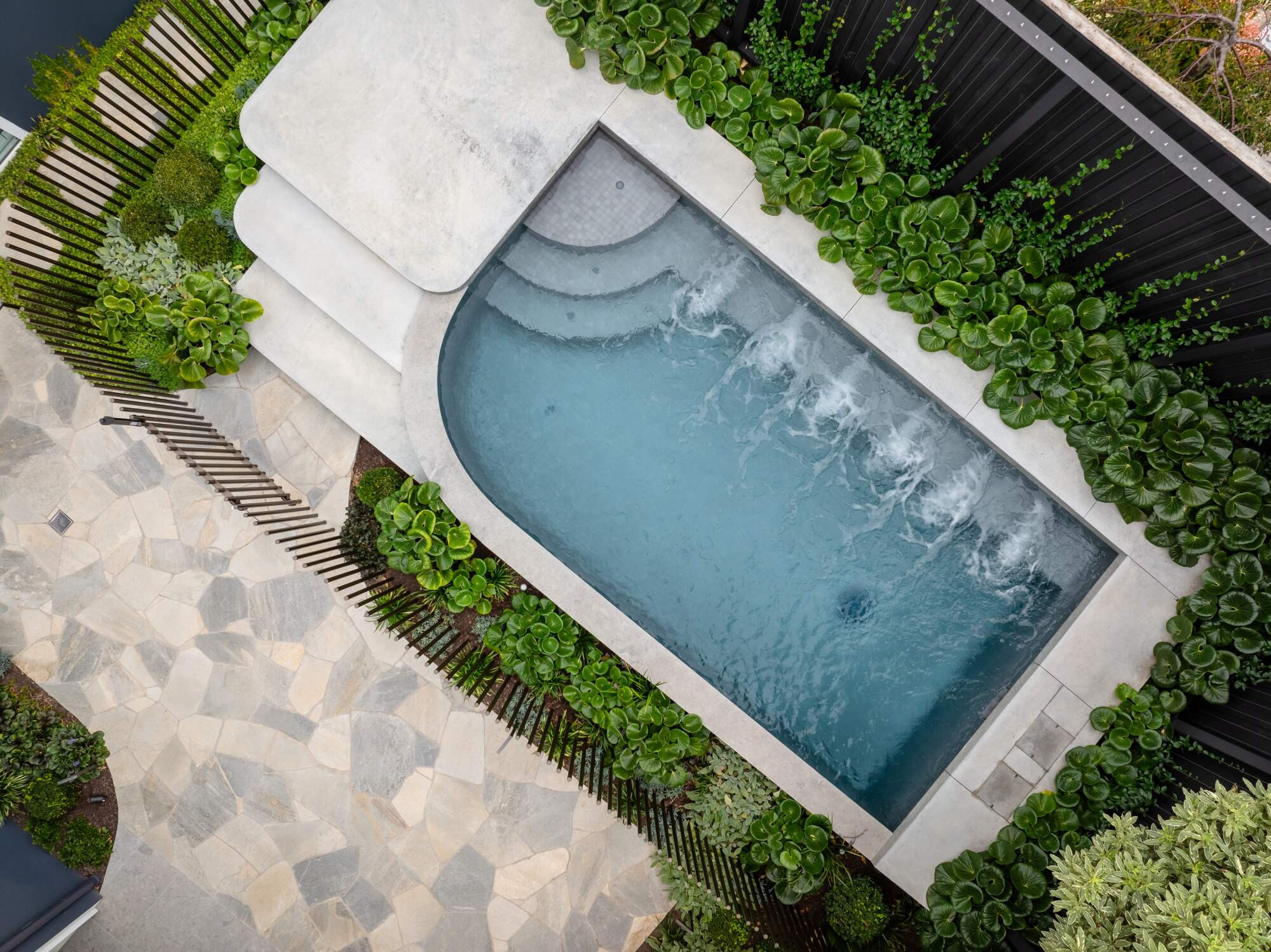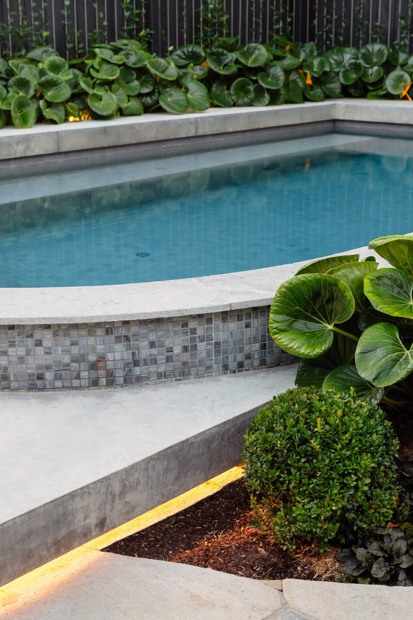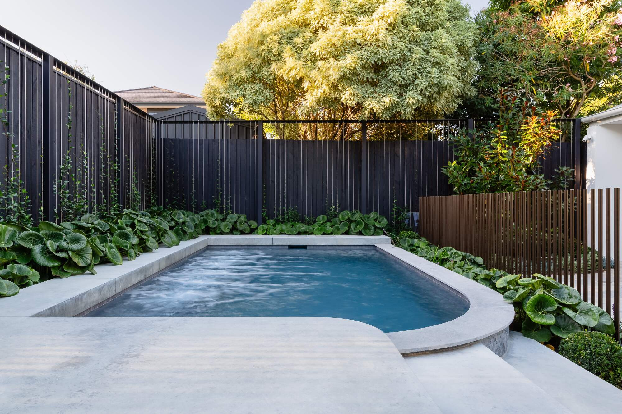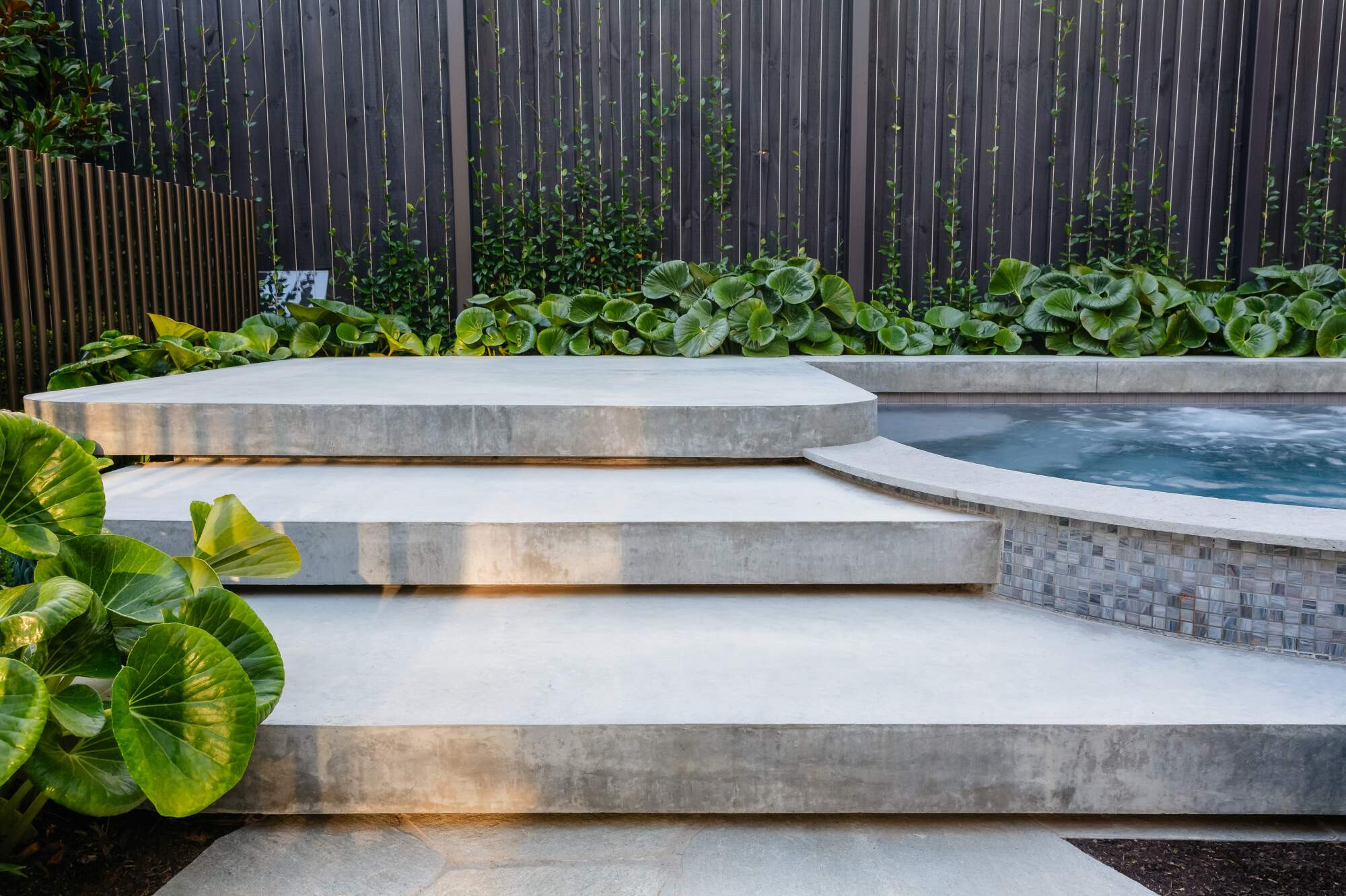 The space was carefully considered, designed and executed by the passionate team of highly skilled and passionate trades. The centre of attention is the raised plunge pool/spa built for the now all adult family who love to entertain and spend days and nights together and with friends all year round. The bespoke plunge pool/spa caters for cooling off on hot summer days as well as nestling into a winters night with the functionality of the fully heated spa mode.