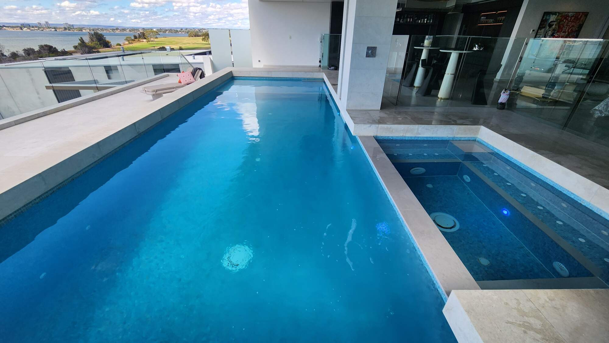 A stunning revitalisation has created a spectacular riverfront vision within the borders of an already spectacular home. By removing imposing internal piers and lengthening the pool deck this pool has matured from a clunky impractical combo into a sleek and sophisticated accompaniment to an exquisite home and location.
