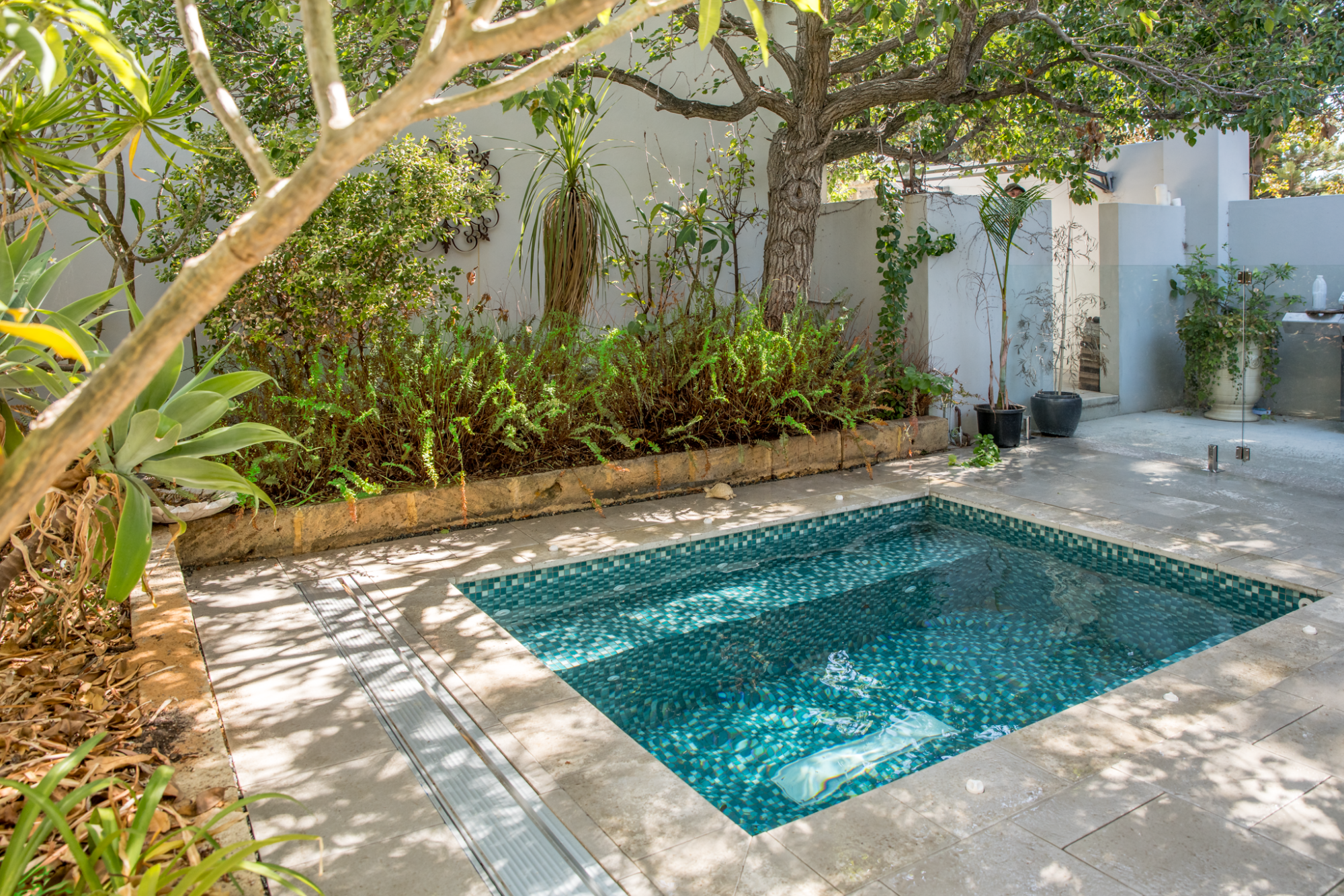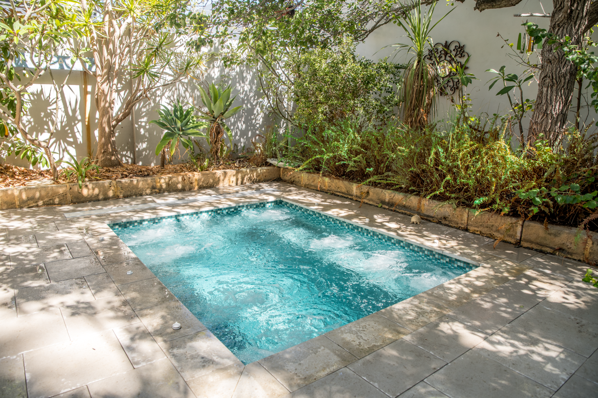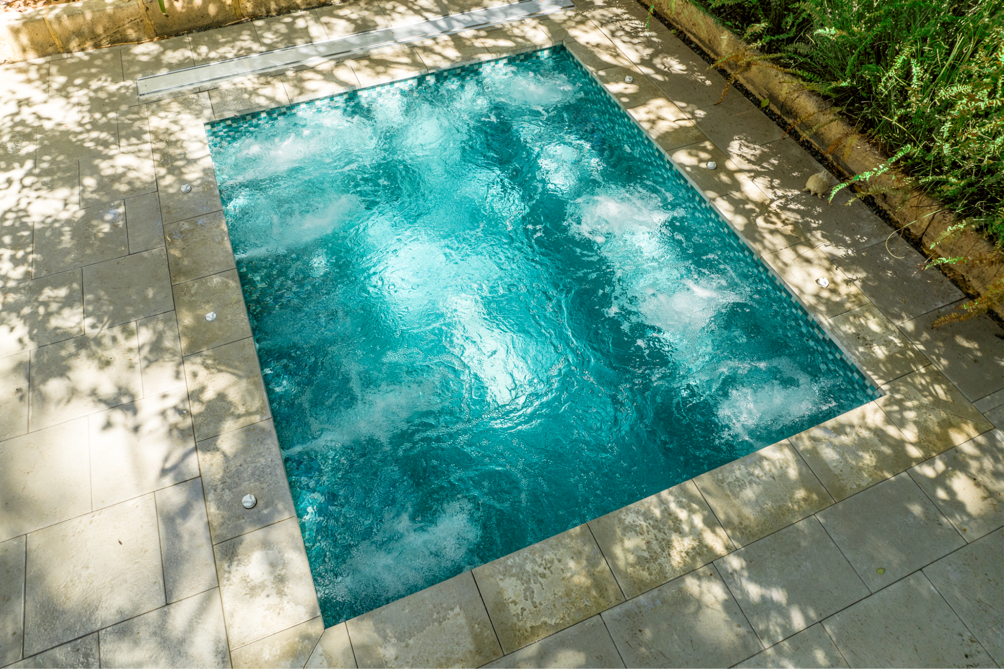 This absolutely stunning spa has been constructed in a very tight area with access constraints at every point of the job. The end result is this impeccable tropical oasis visible from the entire ground floor of the home. The clients could not have imagined the process being so stress free and the end result so incredible. The dark green water complements the grey of the paving and, surrounded by garden, offers the ultimate relaxation space.