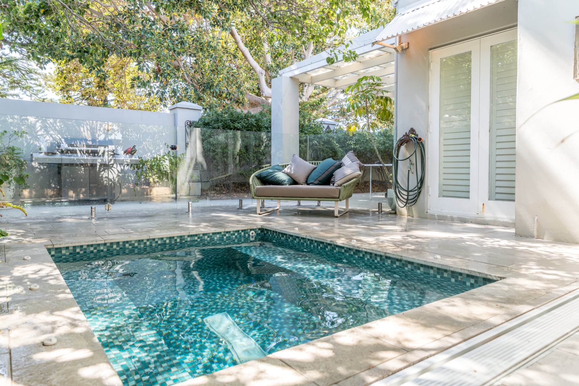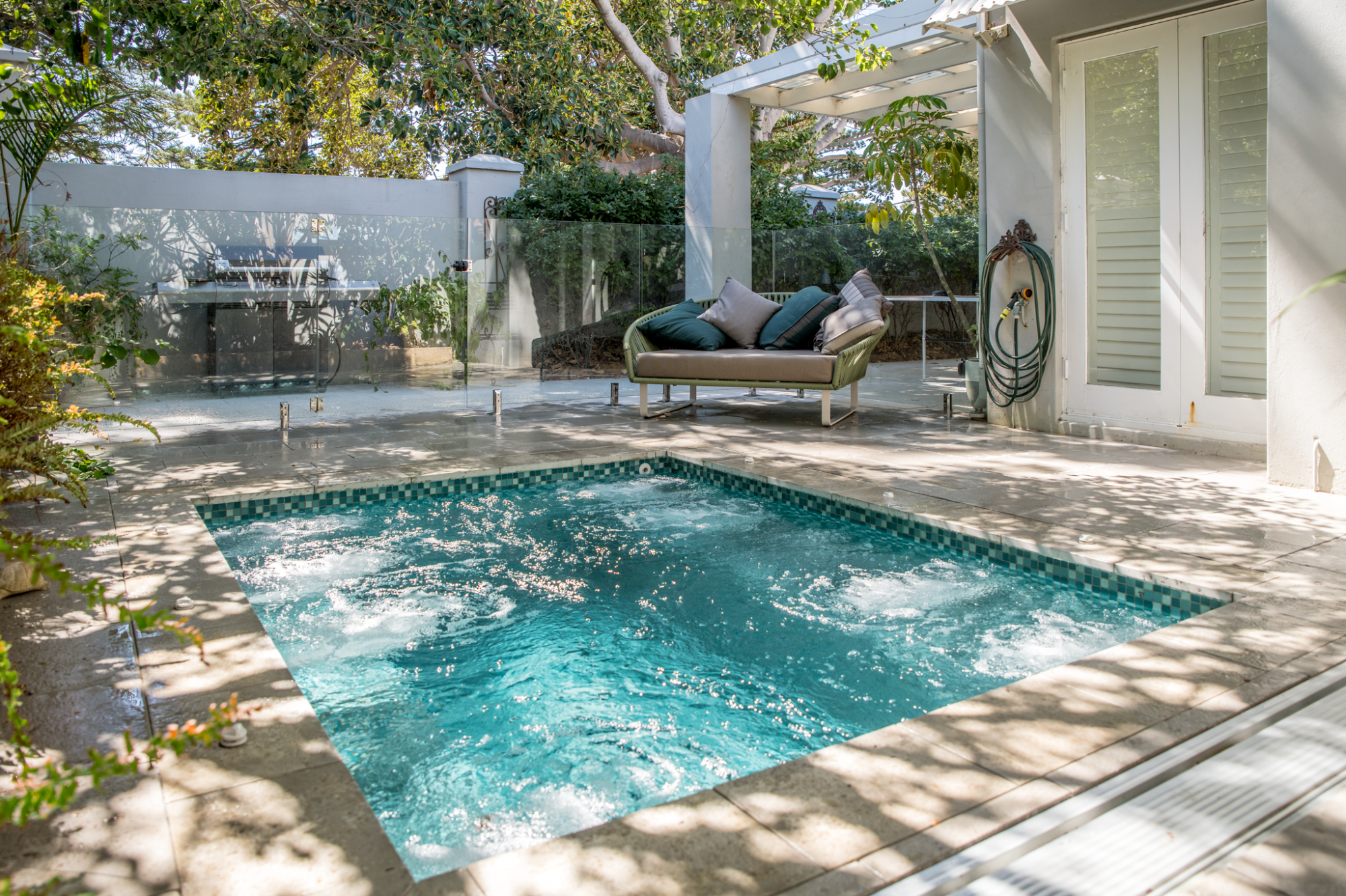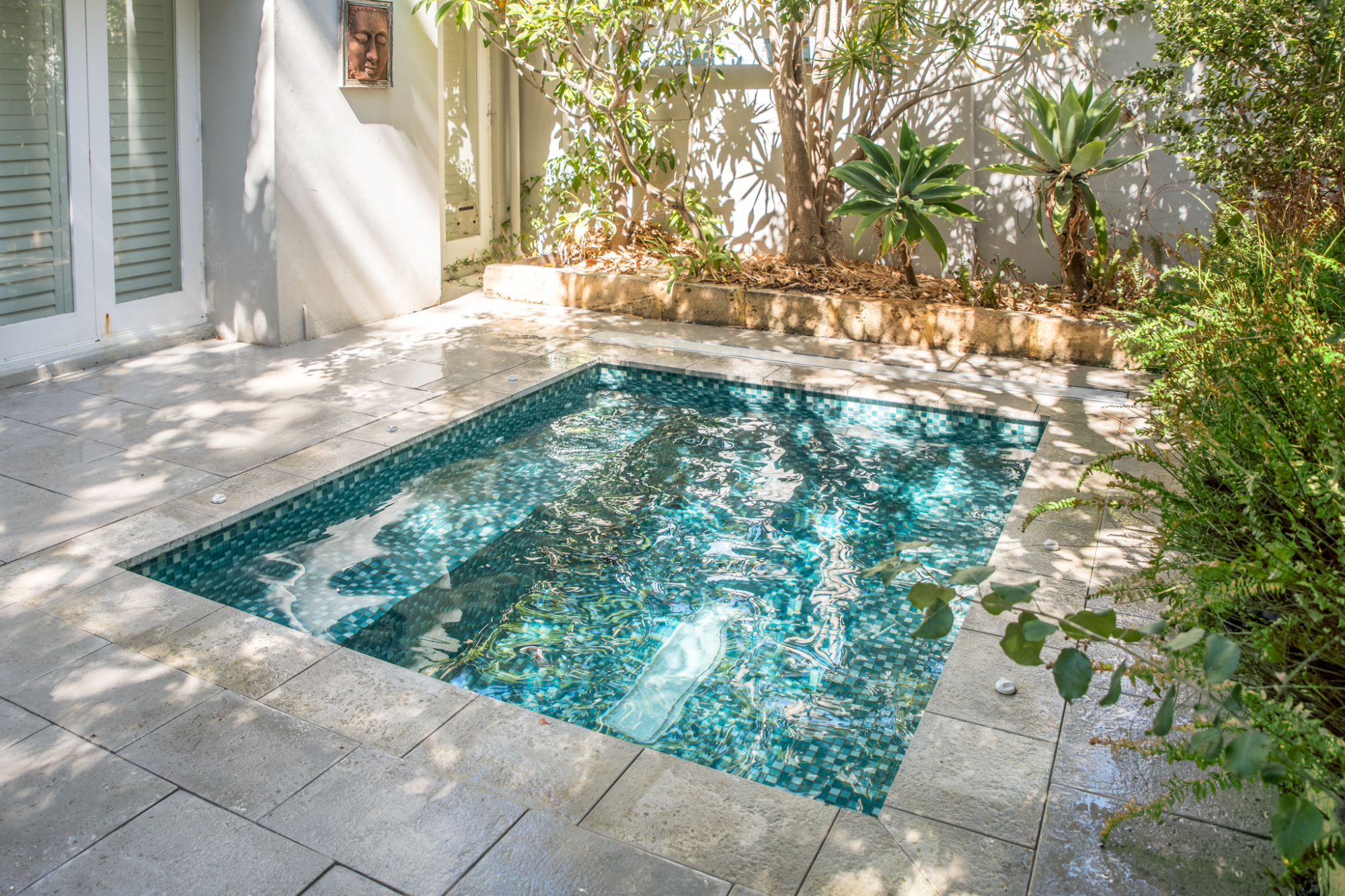 This absolutely stunning spa has been constructed in a very tight area with access constraints at every point of the job. The end result is this impeccable tropical oasis visible from the entire ground floor of the home. The clients could not have imagined the process being so stress free and the end result so incredible. The dark green water complements the grey of the paving and, surrounded by garden, offers the ultimate relaxation space.