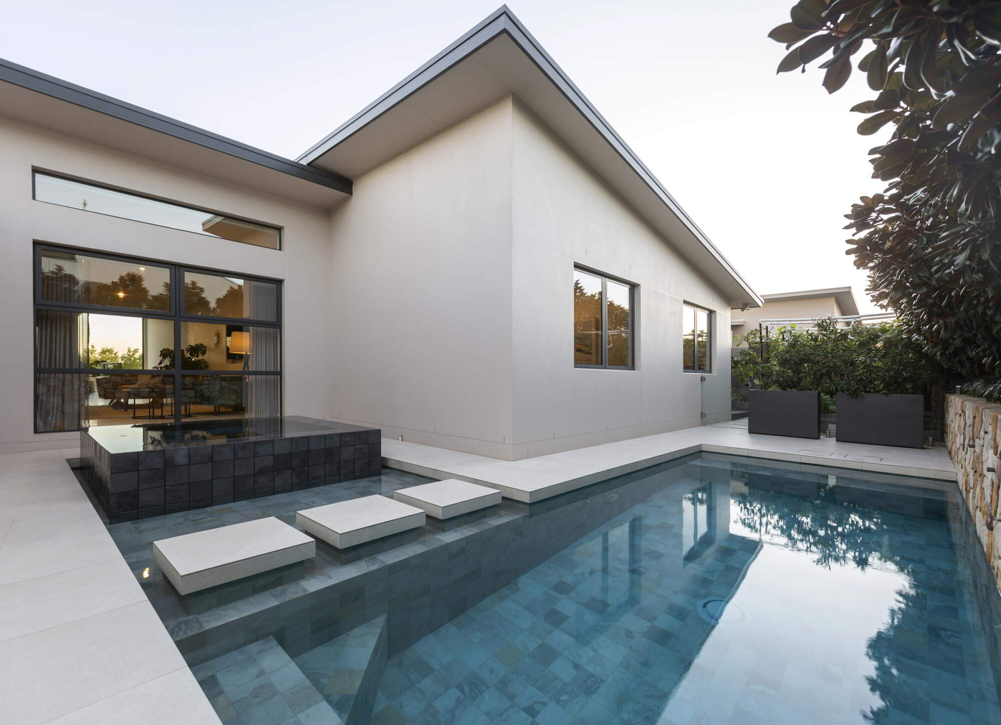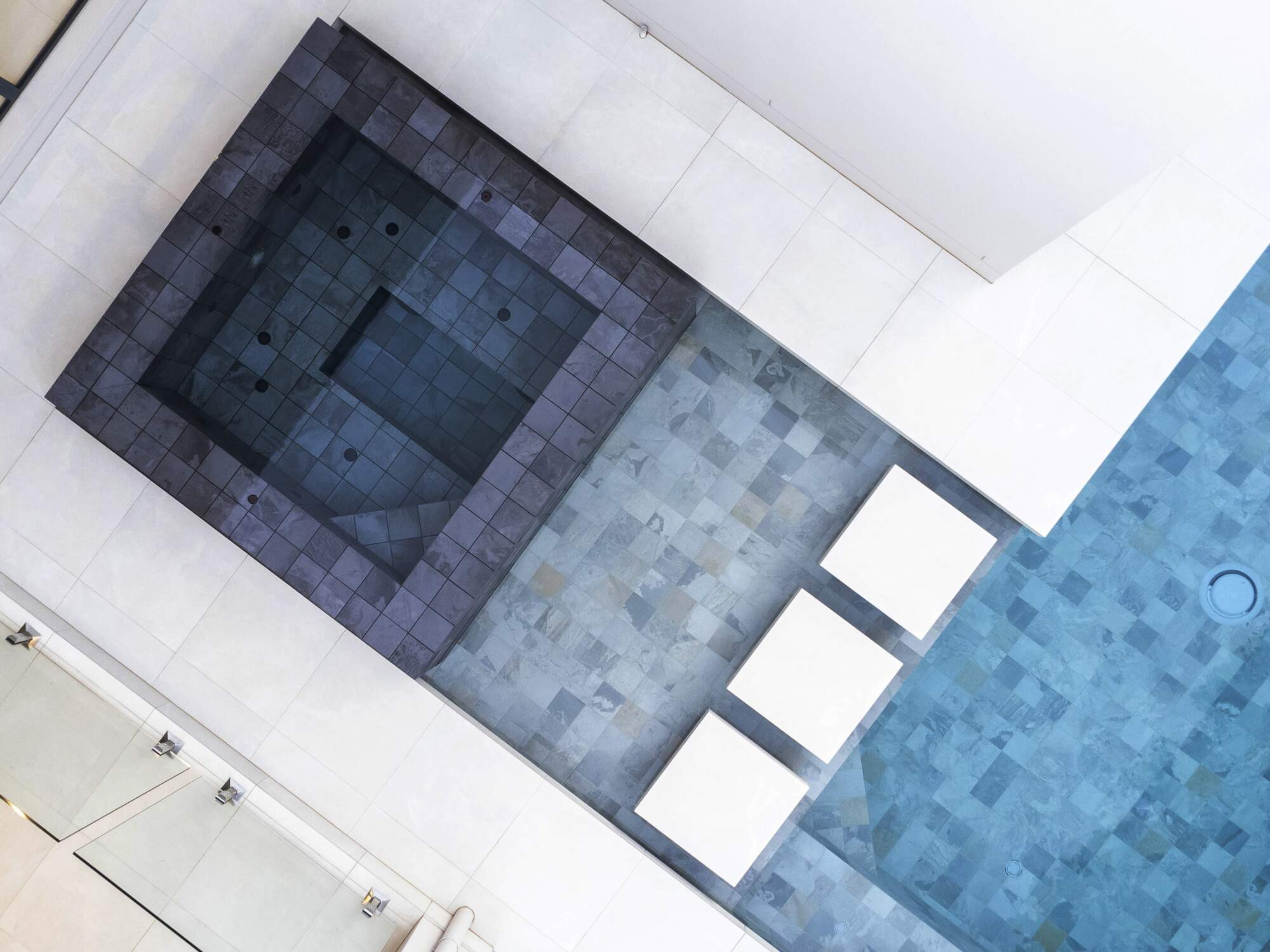 This elevated infinity edge spa serves as a captivating centerpiece, merging functional design with exceptional beauty.