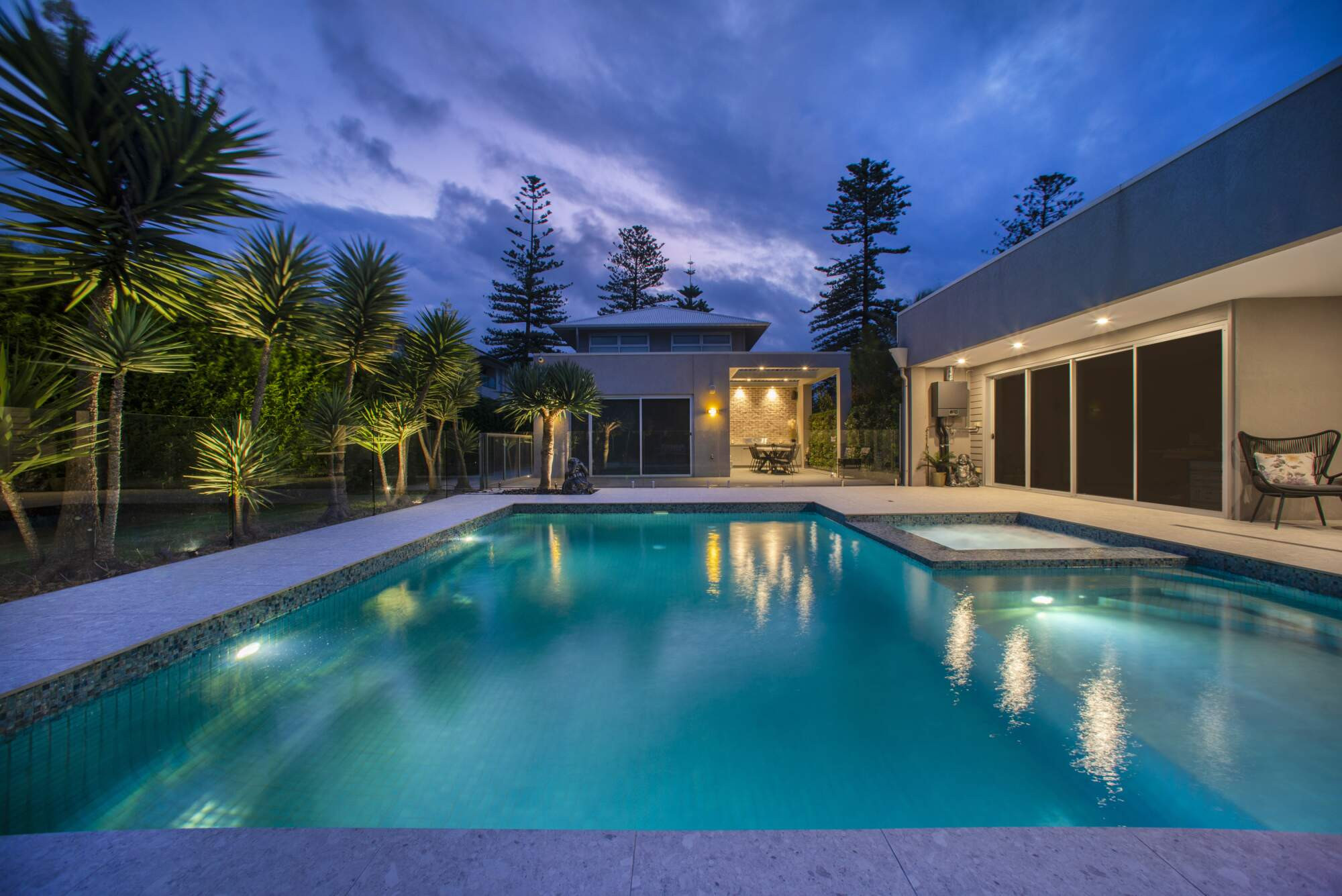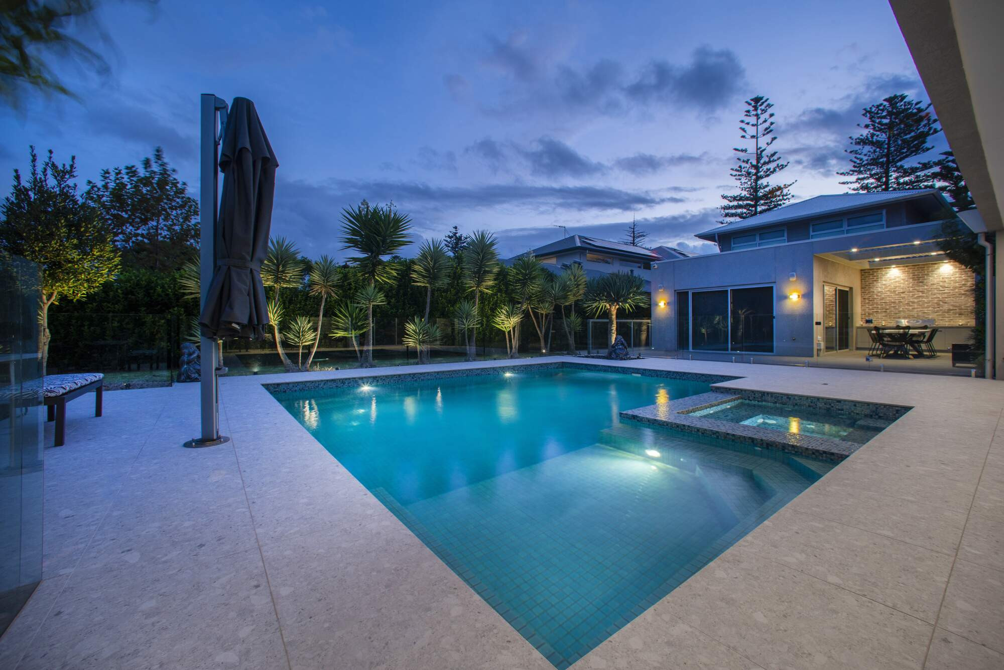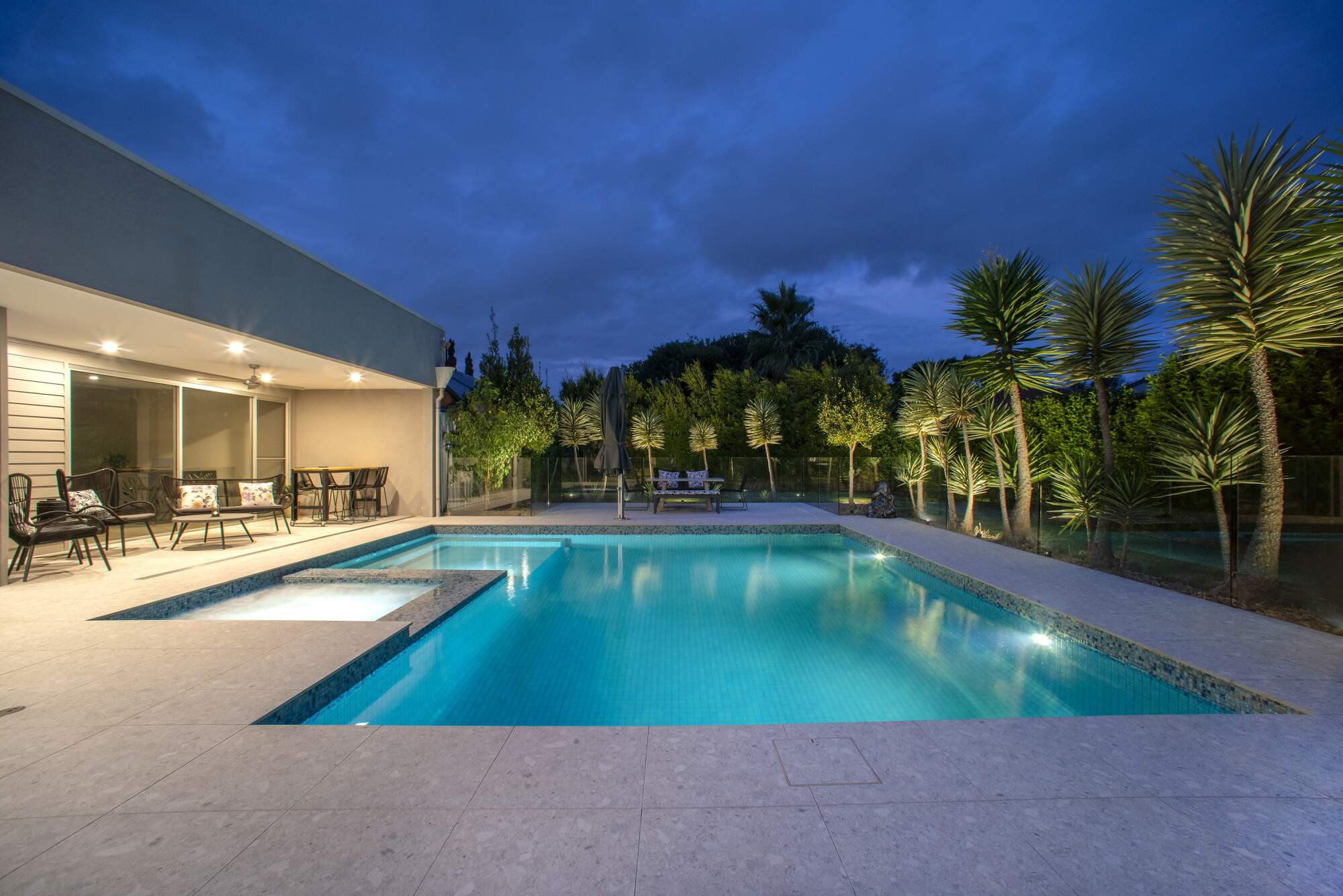 Indulge in the epitome of relaxation and luxury with our exquisite pool and spa transformation. Immersed in tranquility amidst a captivating glass mosaic blend, while cutting-edge technology elevates the experience to new heights. This sophisticated oasis not only redefines the home's ambiance but also offers a haven of serenity and rejuvenation.
