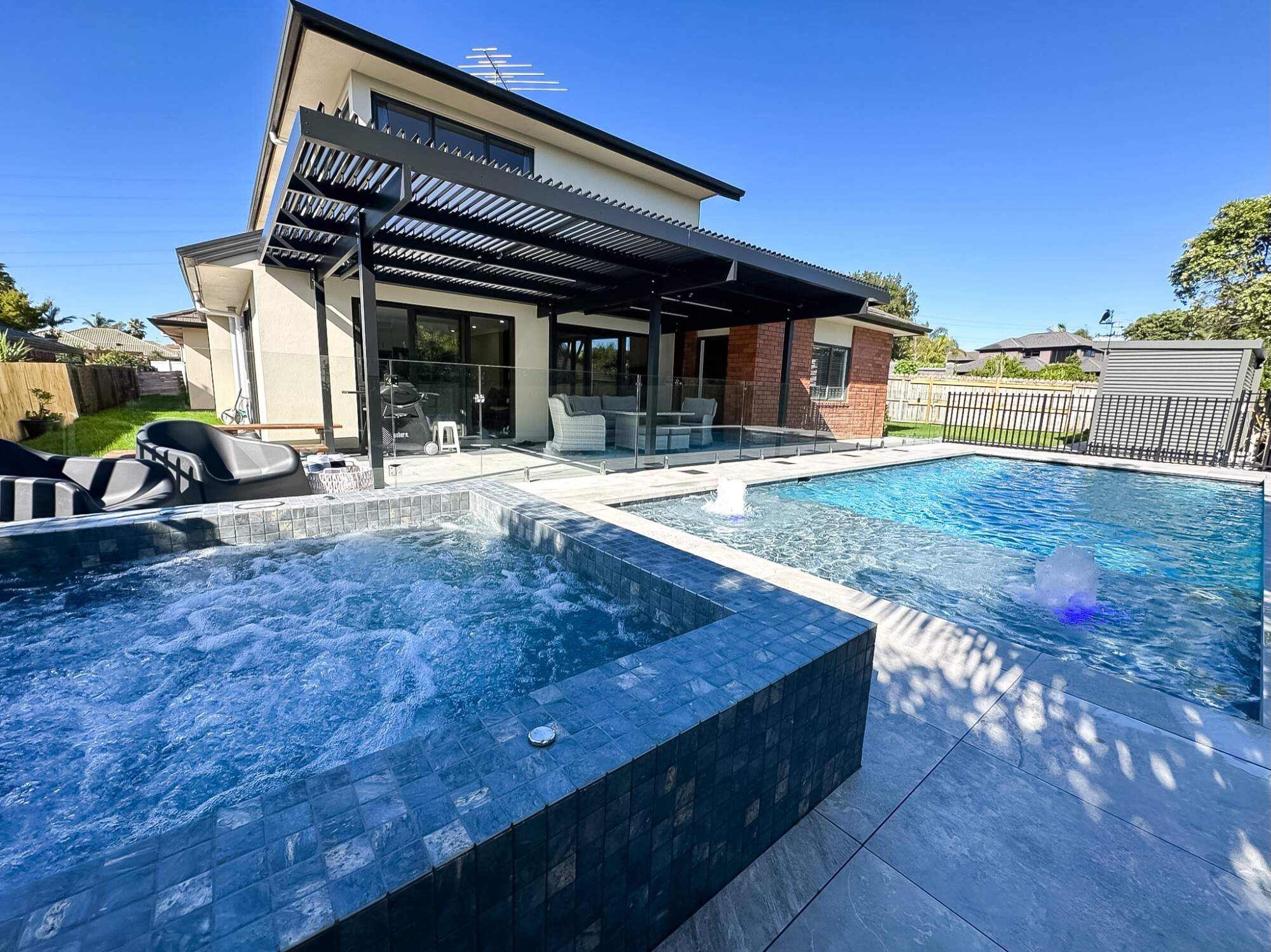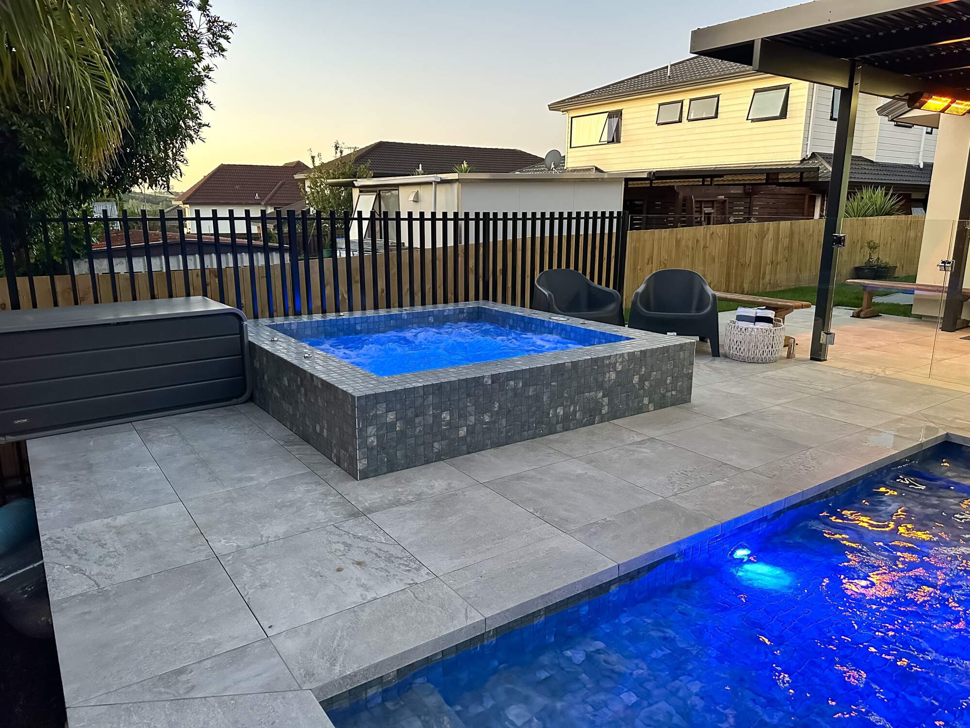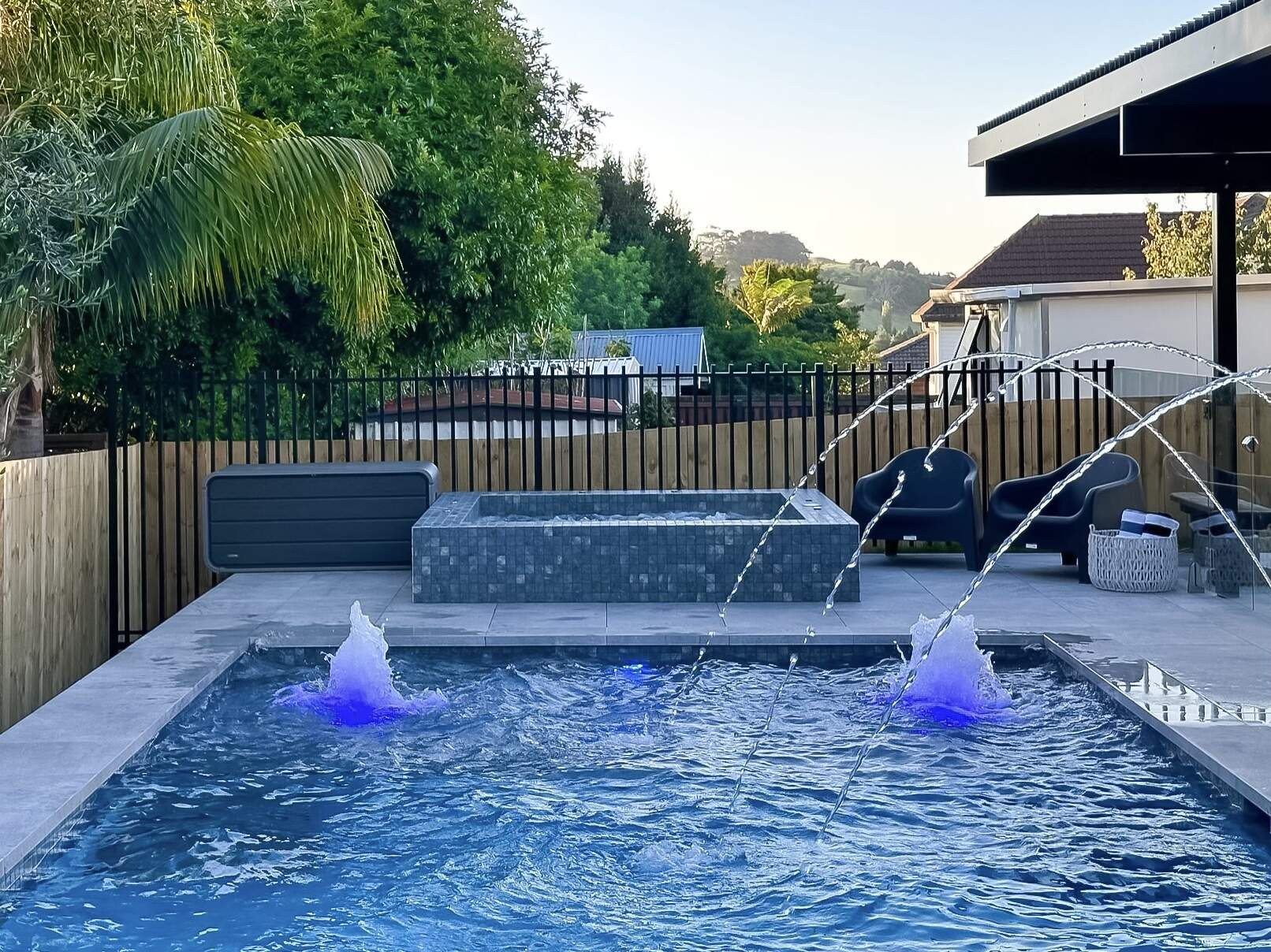 This standalone spa pool complements a fully featured swimming pool and entertainment area. Deliberately designed as a raised spa pool makes it easy for the homeowner, nearing their twilight years, to get in and out with ease. Strategically placed jets enable bathers to enjoy a spa while others maximise the swimming pool in front of them. It’s also the perfect cold to hot changeover for those who have lingered in the pool a little longer than intended. Its like your very own hot spring.