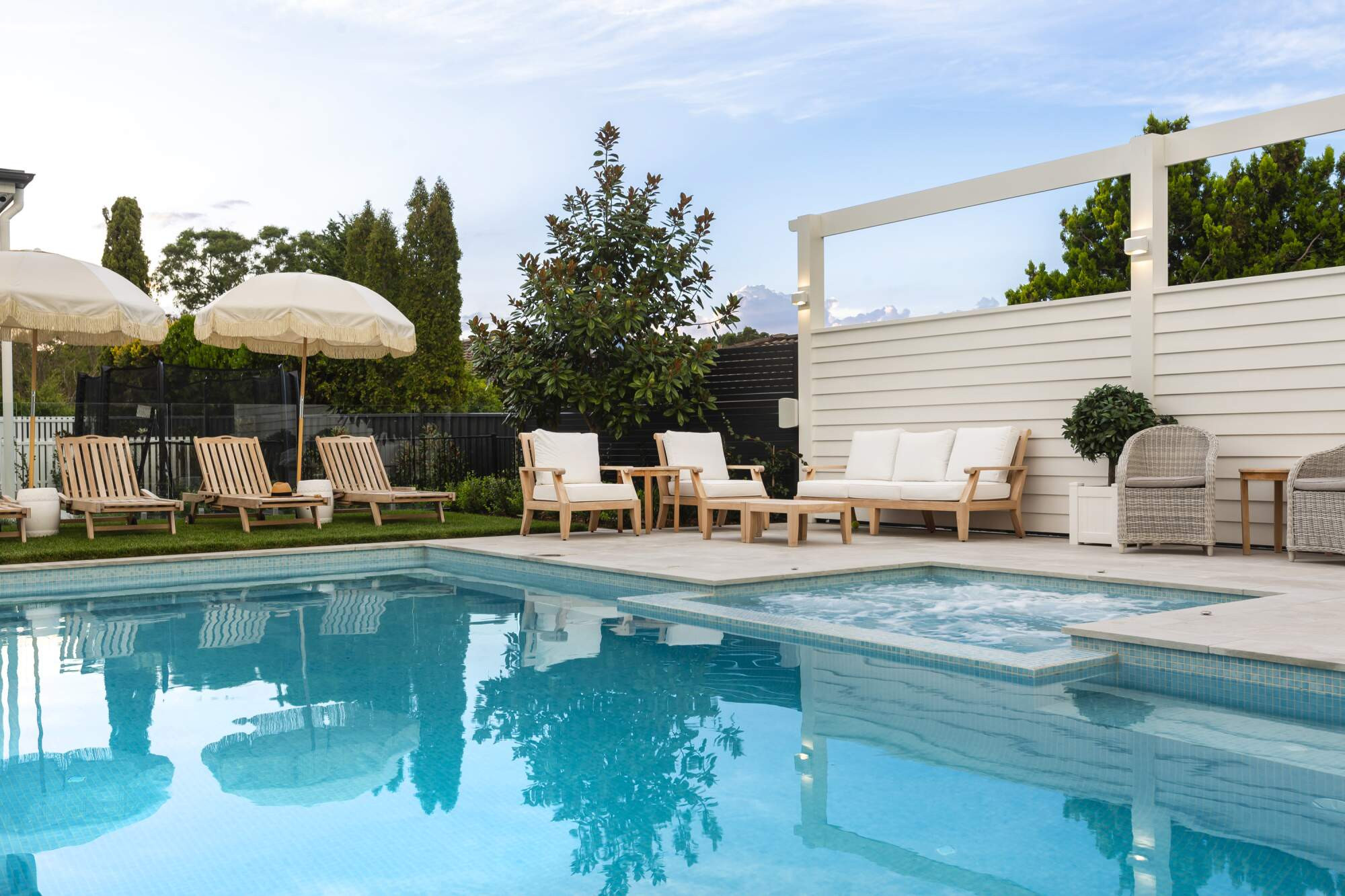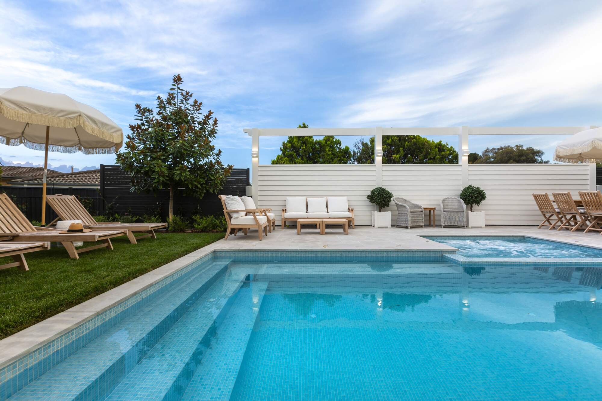 Resort style magnificence, showcasing our team's attention to detail and insistence on excellence. Contemporary design combined with beauty and functionality. A classic, yet modern example of seamless integration between home, garden, outdoor living and entertainment area and the swimming pool & spa.