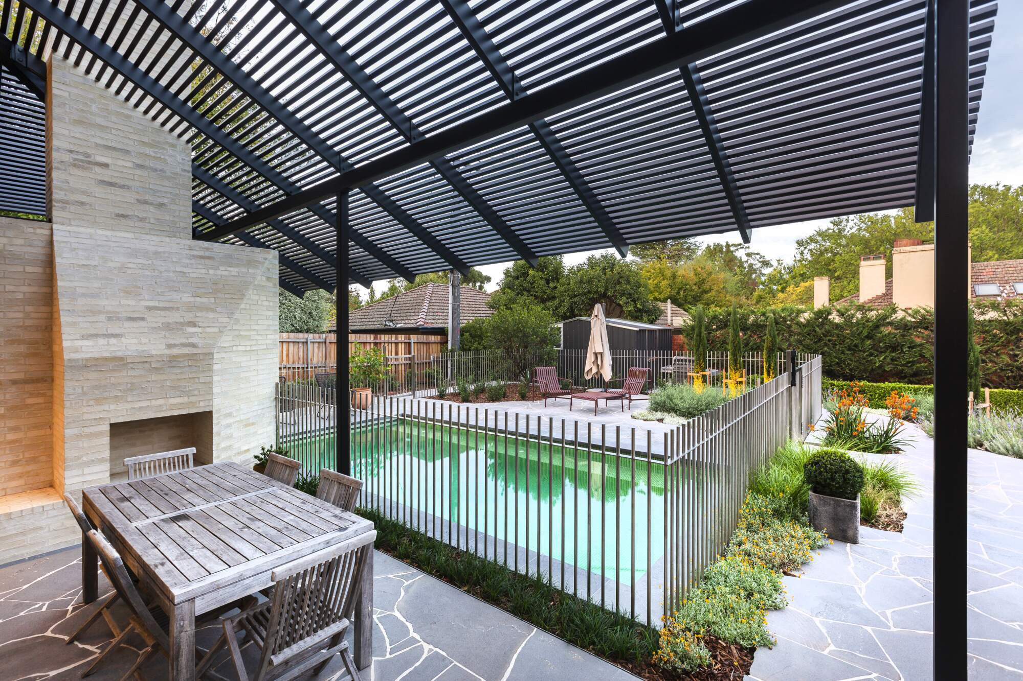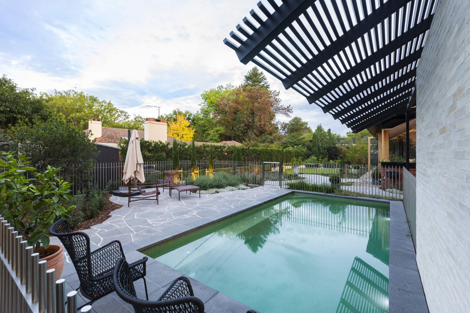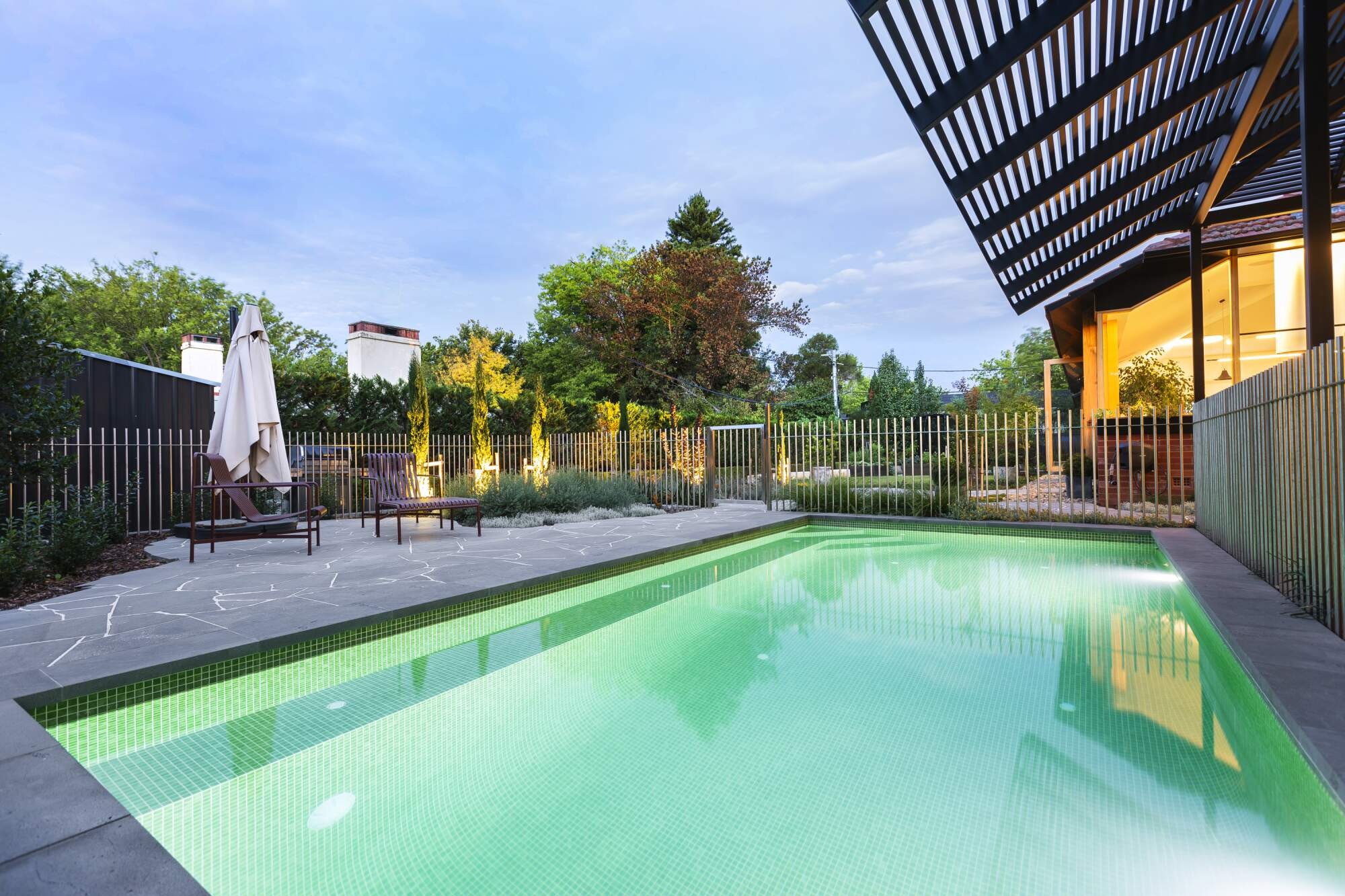 The uniquely designed and custom made stainless steel tubular fence creates the illusion of separation whilst maintaining an uninterrupted view of the surrounding garden. The positioning of the fence follows a gentle curve – contrasting yet complementing the house design and its surrounds perfectly.