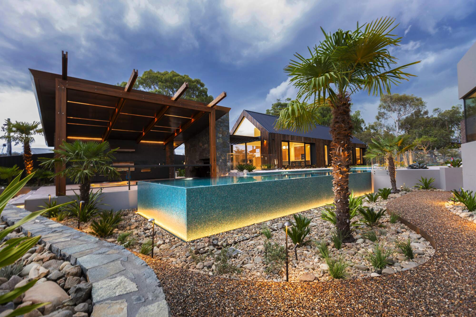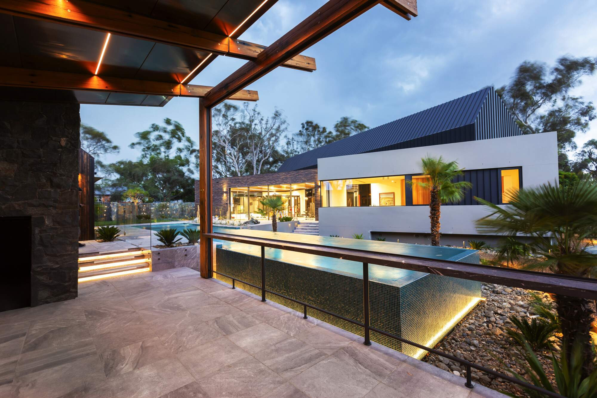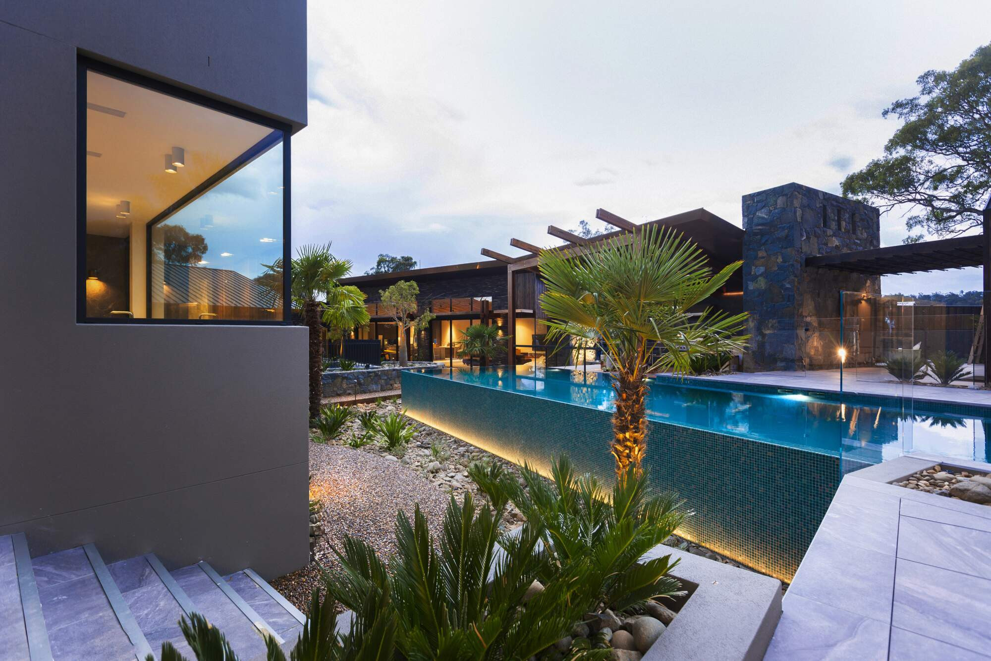 Contemporary design combined with beauty and functionality. Designed by the project’s lighting engineer, lighting is varied, subtle and captivating. Intended to highlight and enhance the landscaping features, swimming pool & spa and striking architectural features and luxurious materials of the surrounding buildings, the various lighting styles and technologies are specifically designed, positioned and directed to create sophisticated visual highlights.