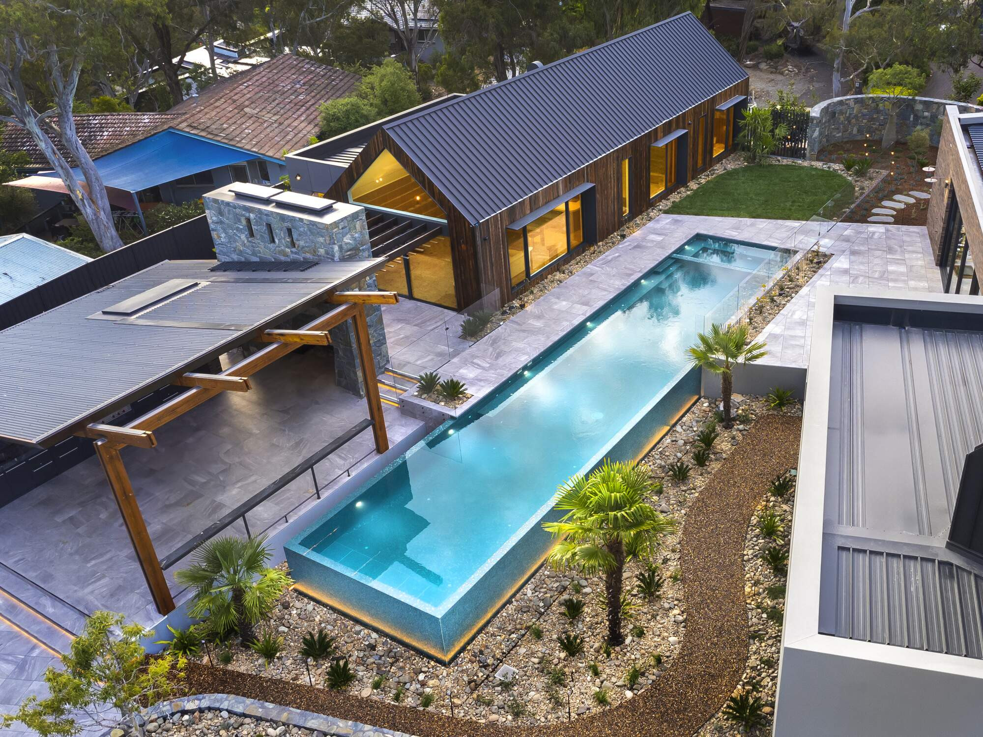 A breathtaking and captivating statement! Contemporary design and luxurious materials combine beauty and functionality to provide the ultimate in private getaways. This stunning project is testament to the vital, close working relationship and co-ordination with the architect's team, the building contractor and associated trades required to create the ultimate home, swimming pool and spa luxury.