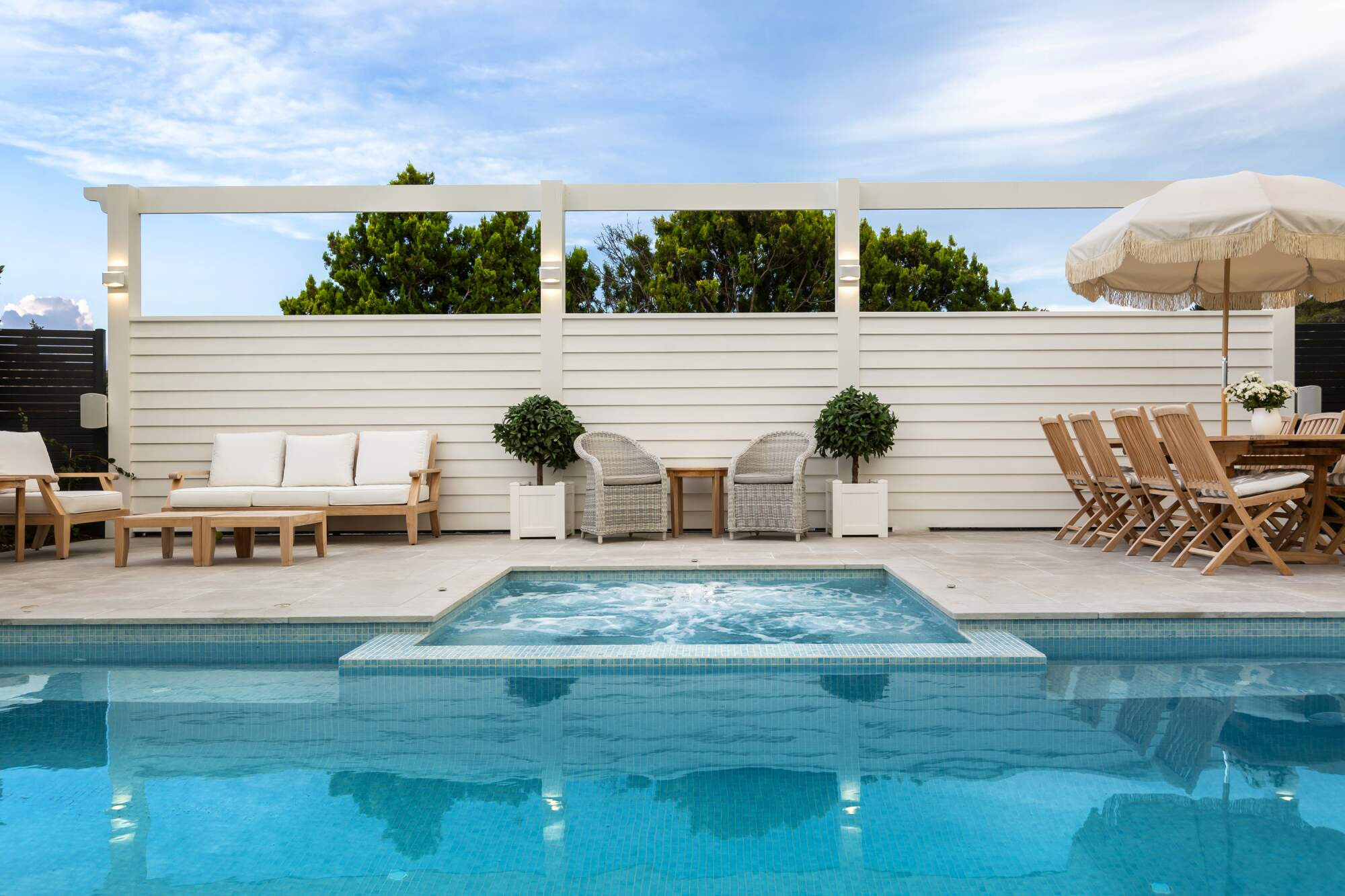Resort style magnificence, showcasing our team's attention to detail and insistence on excellence. Contemporary design combined with beauty and functionality. A classic, yet modern example of seamless integration between home, garden outdoor living and entertainment area and the swimming pool & luxurious integrated spa.