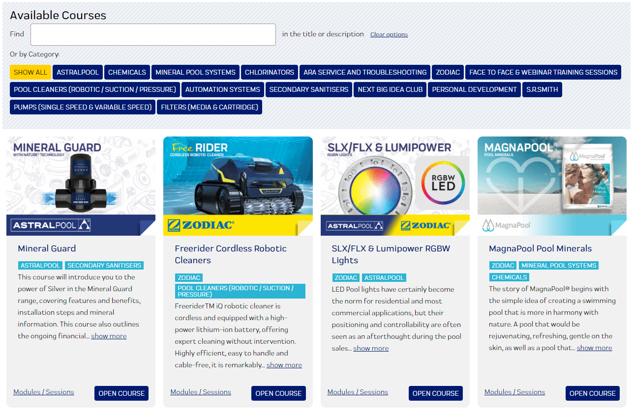 The Fluidra Pro Academy prioritises engagement and interactivity in its training content wherever possible, and the Freerider Cordless Robotic Cleaner course is a prime example of this philosophy in action. Leveraging multimedia, gamification techniques, and interactive elements, the course captivates learners' attention and fosters active participation. The Fluidra Pro Academy creates engaging learning experiences, helping the industry elevate its knowledge one course at a time.
