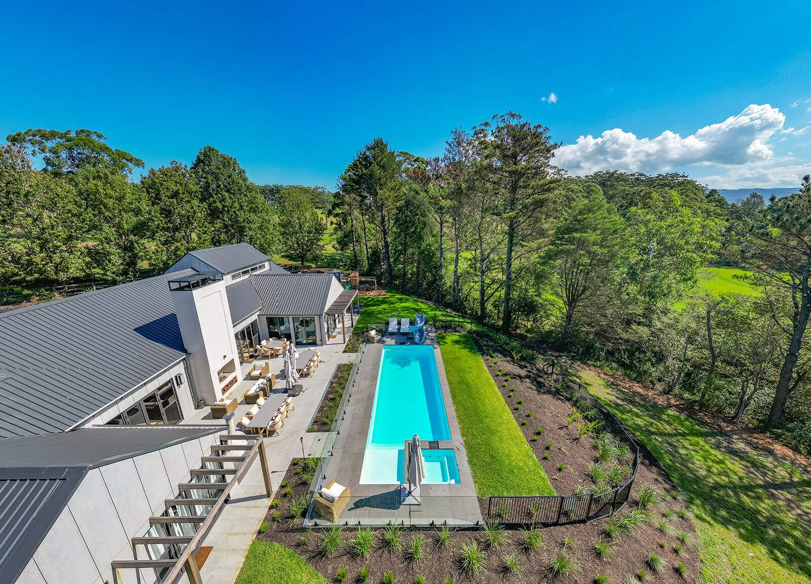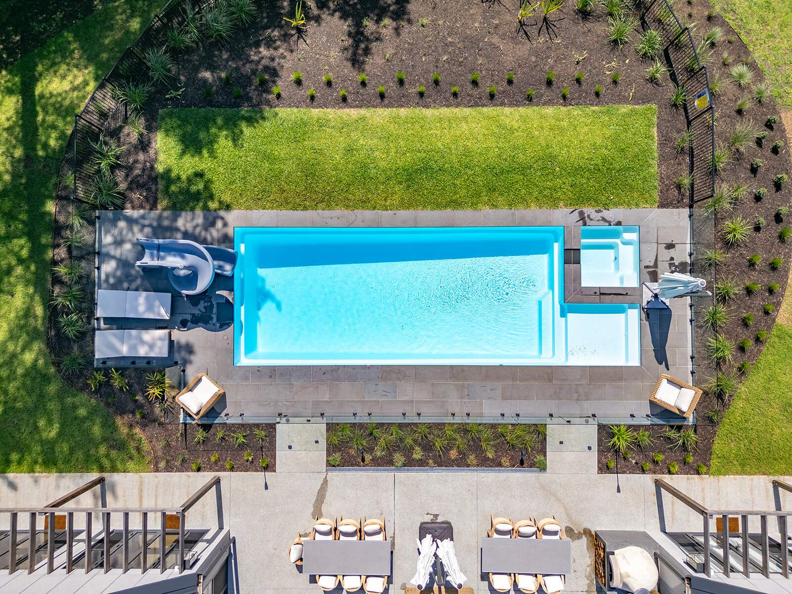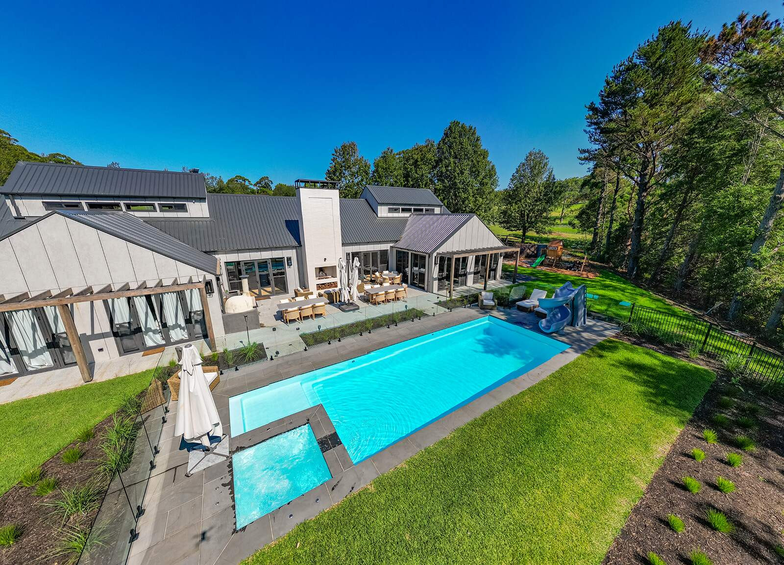 The Luxury Barn House, featuring the magnificent 12m Brooklyn pool in Alpine White Shimmer, is a standout in Berry. From every interior room to exterior space, the crystal-hued water glistens day and night, offering ambiance and a focal point at this rural retreat. Enjoyed by owners and guests alike, this one-piece pool and spa configuration was the perfect choice, with all the premium features making it the most stunning space to indulge in.