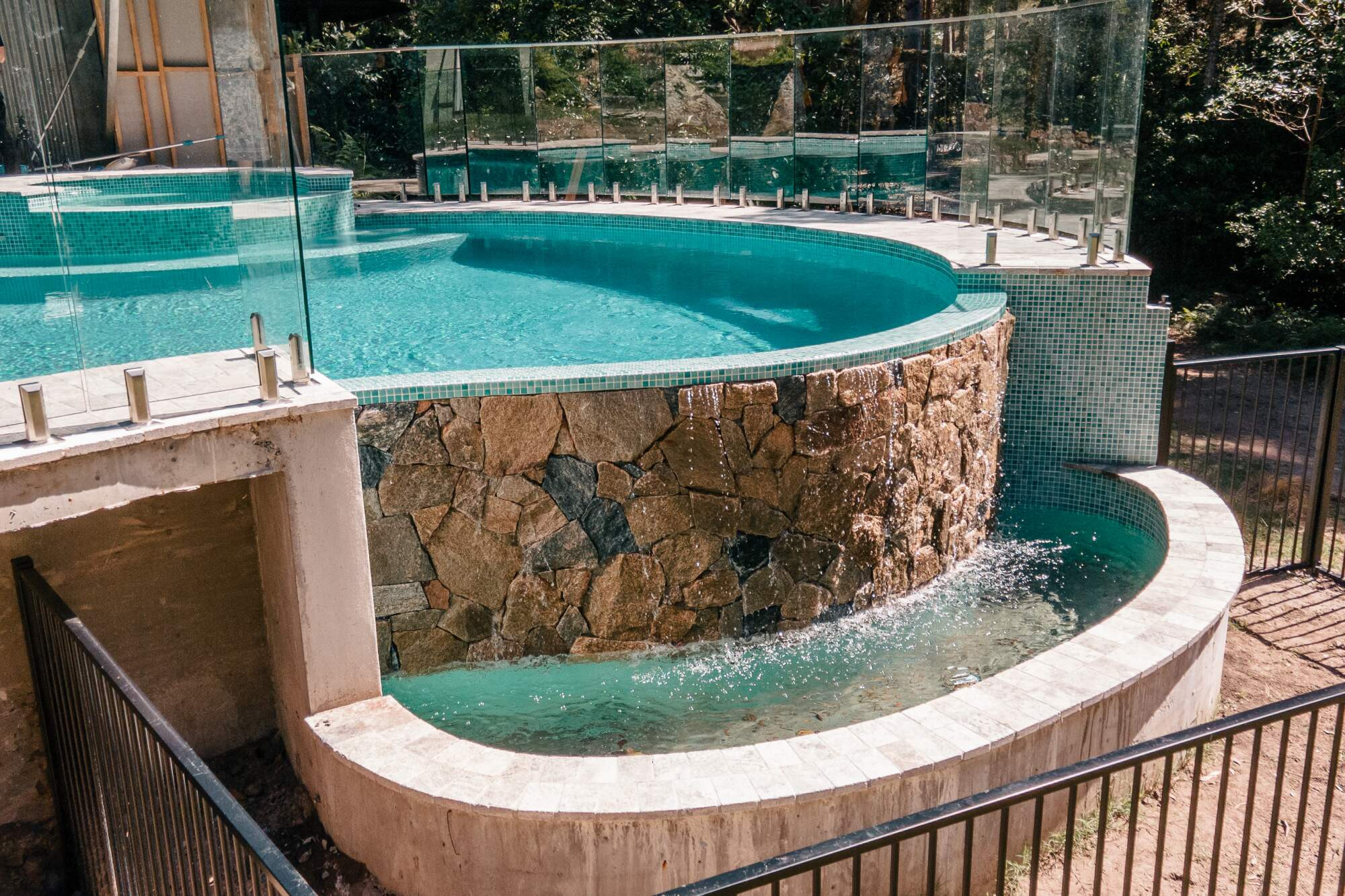 Welcome to Queen Pools' latest masterpiece nestled at the bottom of a picturesque valley. But what truly sets this pool apart is our homage to the stunning rock wall feature, meticulously crafted to mirror the natural beauty of the surroundings, serving as a majestic backdrop to your aquatic sanctuary. Dive into a world where every swim is an escape, every moment a celebration of nature's splendor. Join us as we redefine the boundaries of elegance and tranquility, one pool at a time.