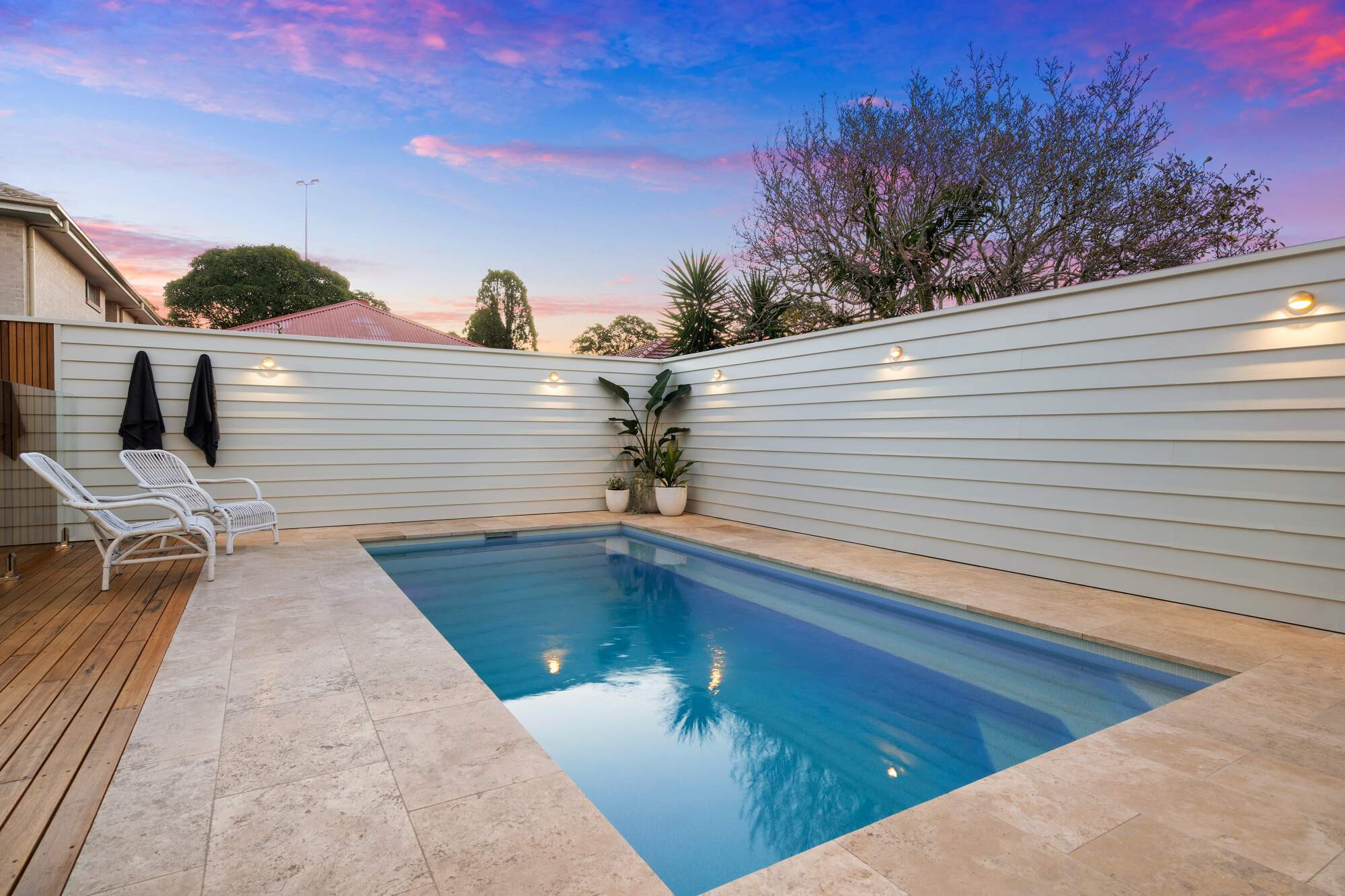 Imagine relaxing by this Hamptons style abode complete with chic style plunge pool! This spectacular plunge pool, tucked away in an award winning home, oozes easy entertainment and relaxation with its luxurious, low maintenance features. Decked out with premium finishes with serene stone tiles and stylish timber decking. Your gateway to a great lifestyle relaxing by the external fire pit and hosting unforgettable gatherings.