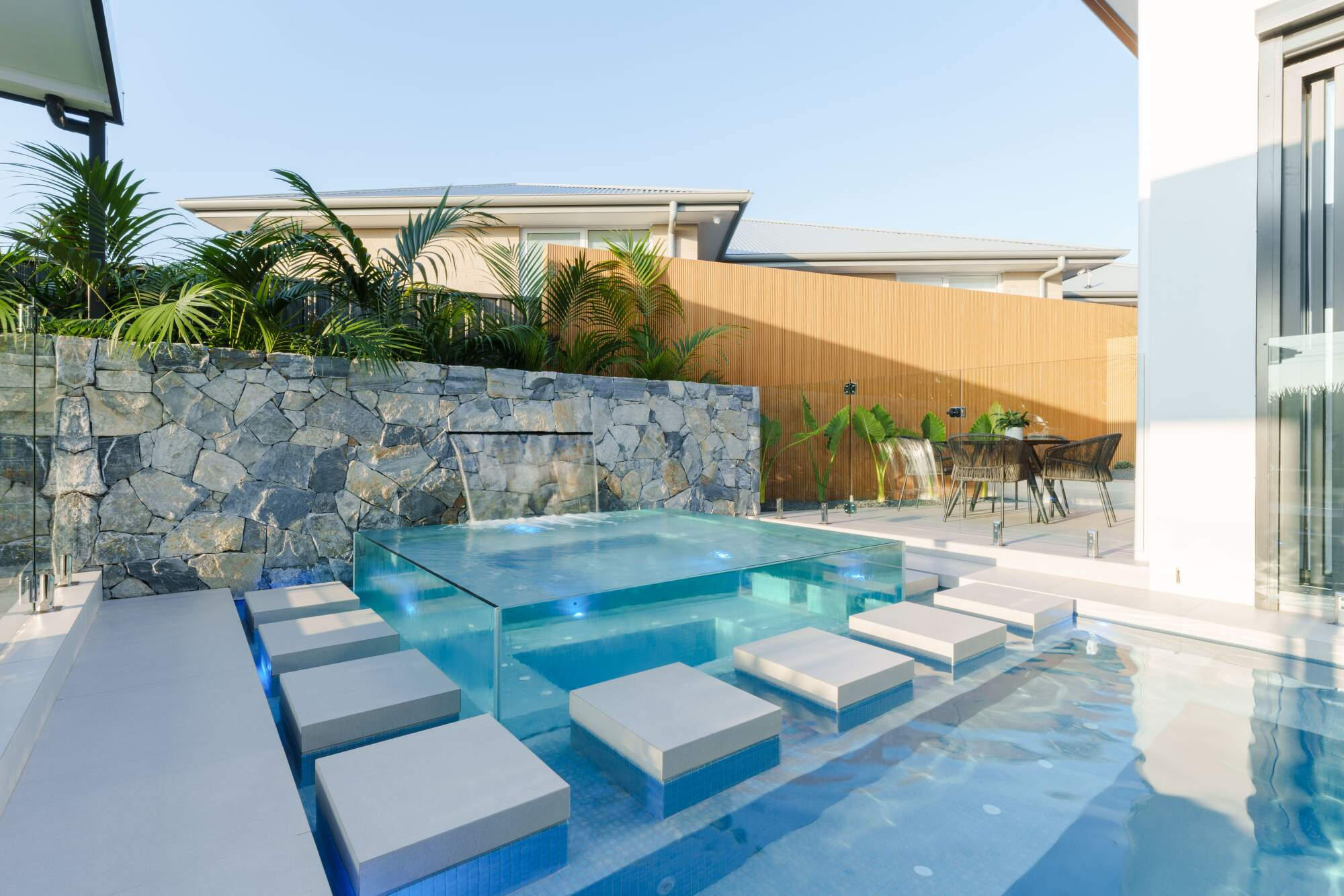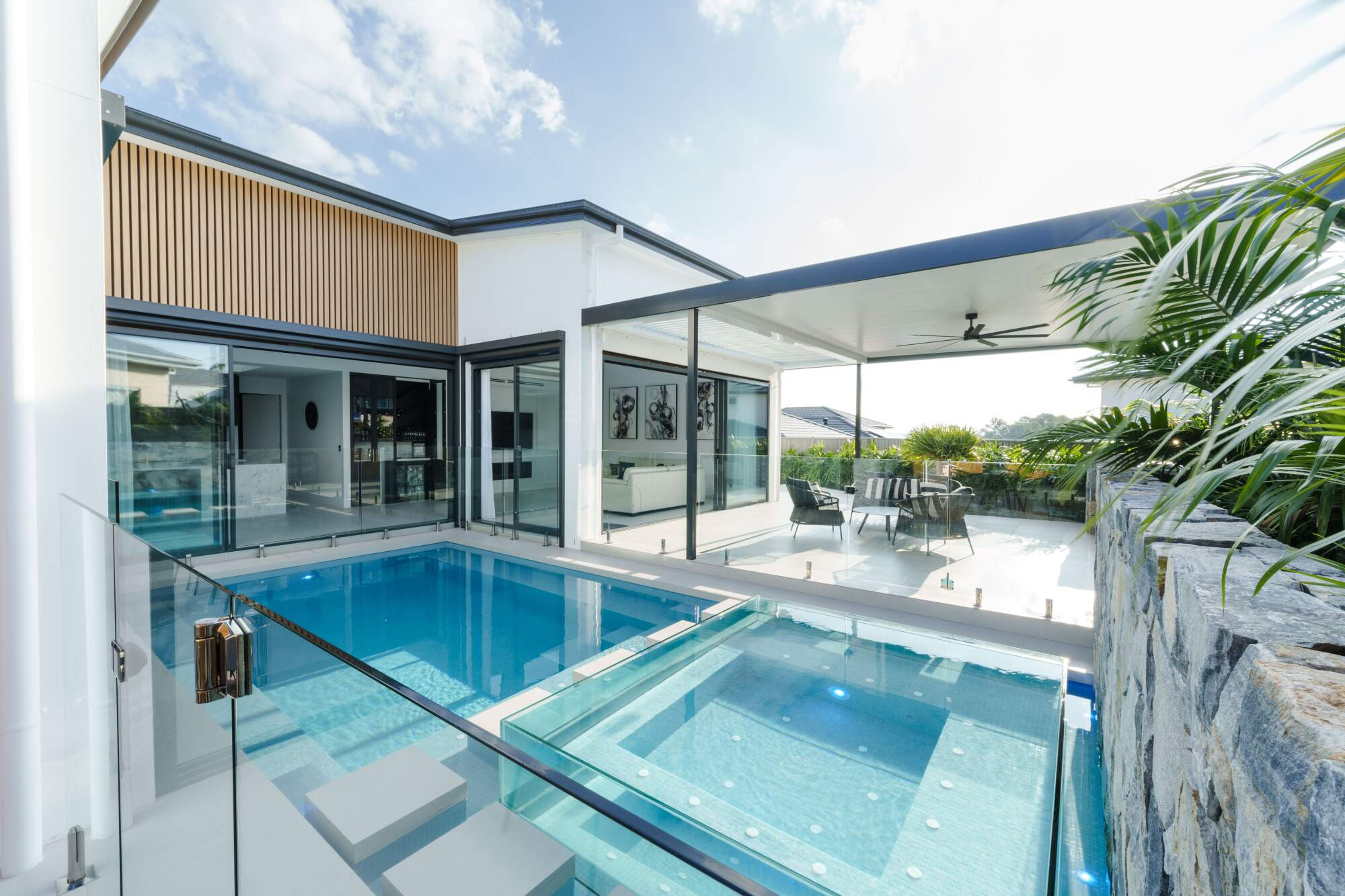 When you can't have a house on the coast you can just build it in your backyard! This project makes you feel like you have rented a spectacular air bnb in Port Douglas! A beautiful heated pool and spa to use all year round that makes you feel like you're in paradise. Surrounded by leafy palms, this airy space is built for enjoyment, relaxing and entertaining all at once with all the bells and whistles a touch of a button away.