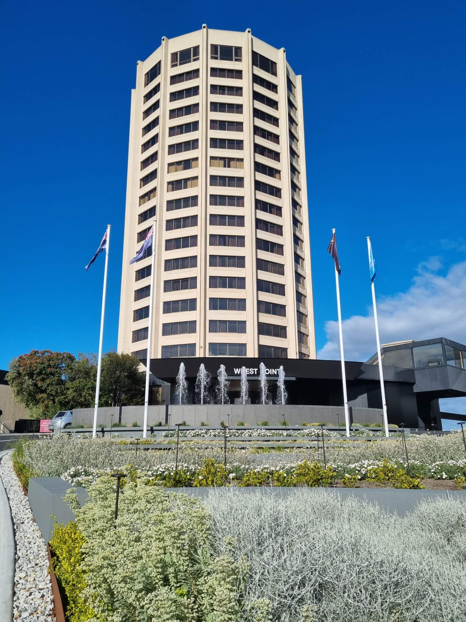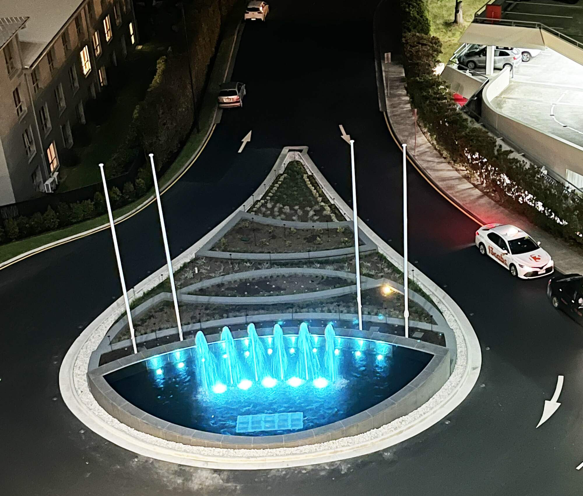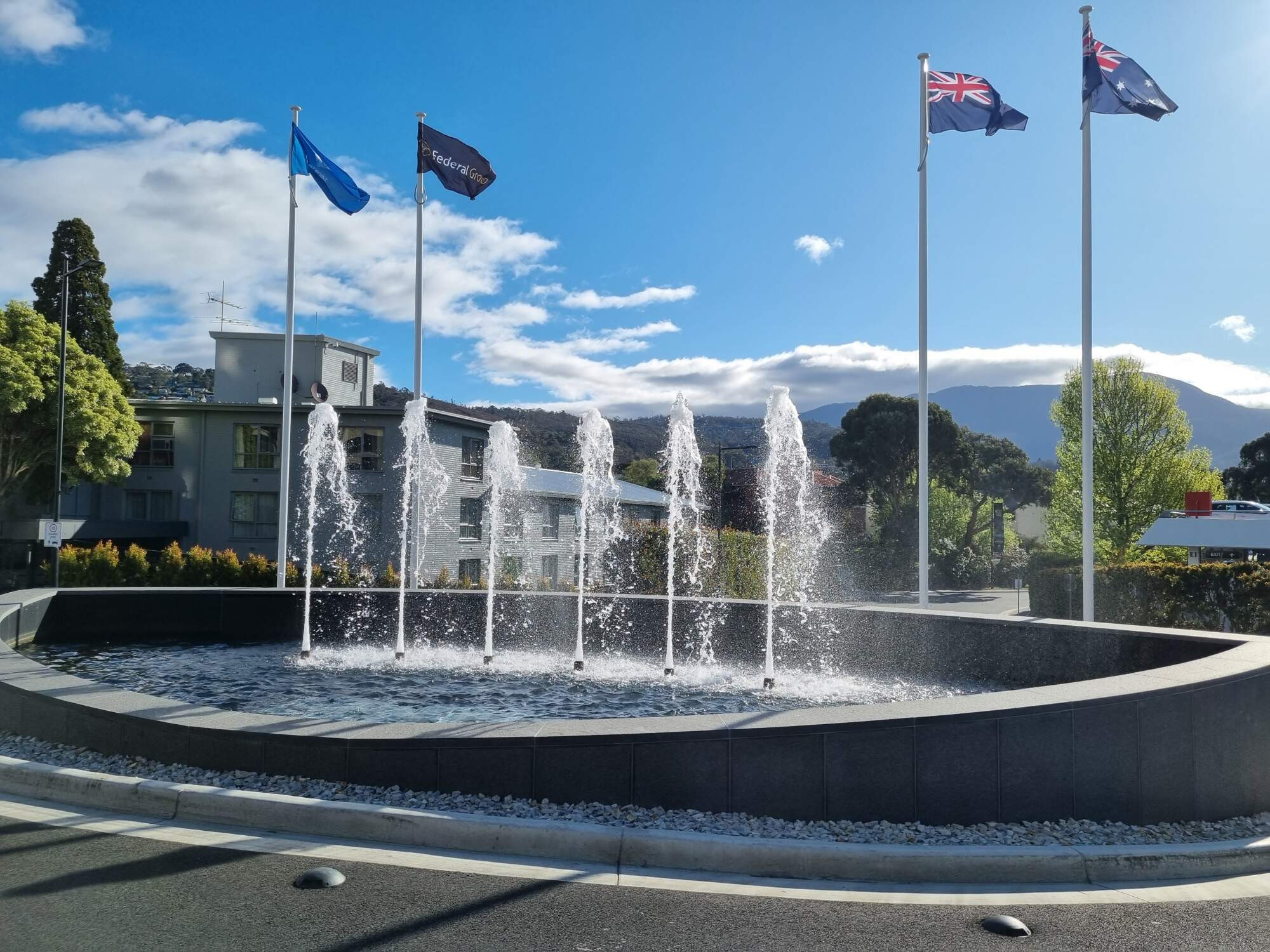 Wrest Point Casino's forecourt entry reflection pool, waterwall, lighting and jet display features two semi-circular sides that form an almond eye-shape ellipse. The reflection pool and waterwall are highly visible to patrons, guests and staff of the casino arriving and departing via the forecourt. The project met the deadline and exceeded all expectations. The dramatic lighting and jet display creates a magical visual impact after dark and adds a celebration ambience to the entry.