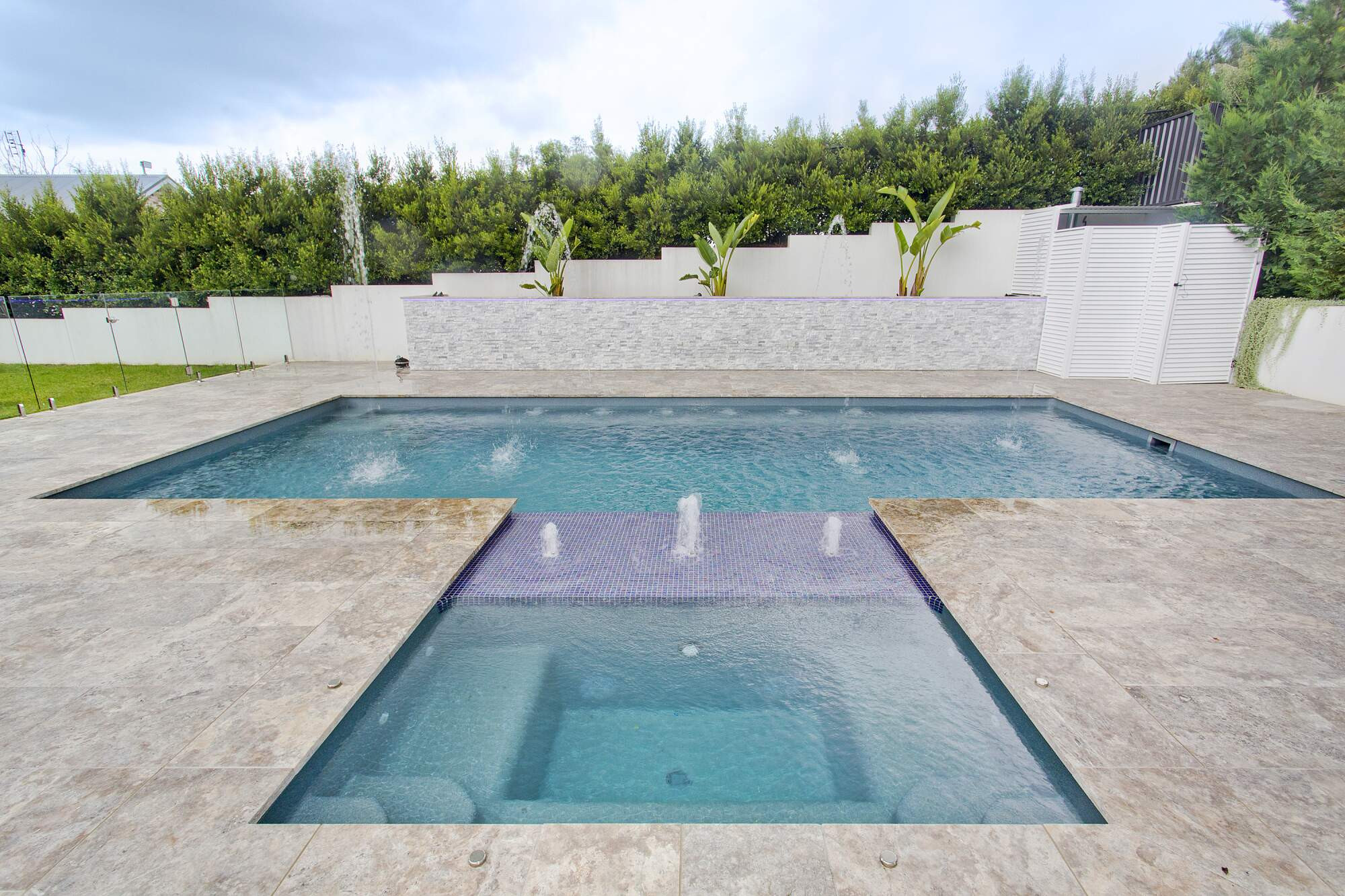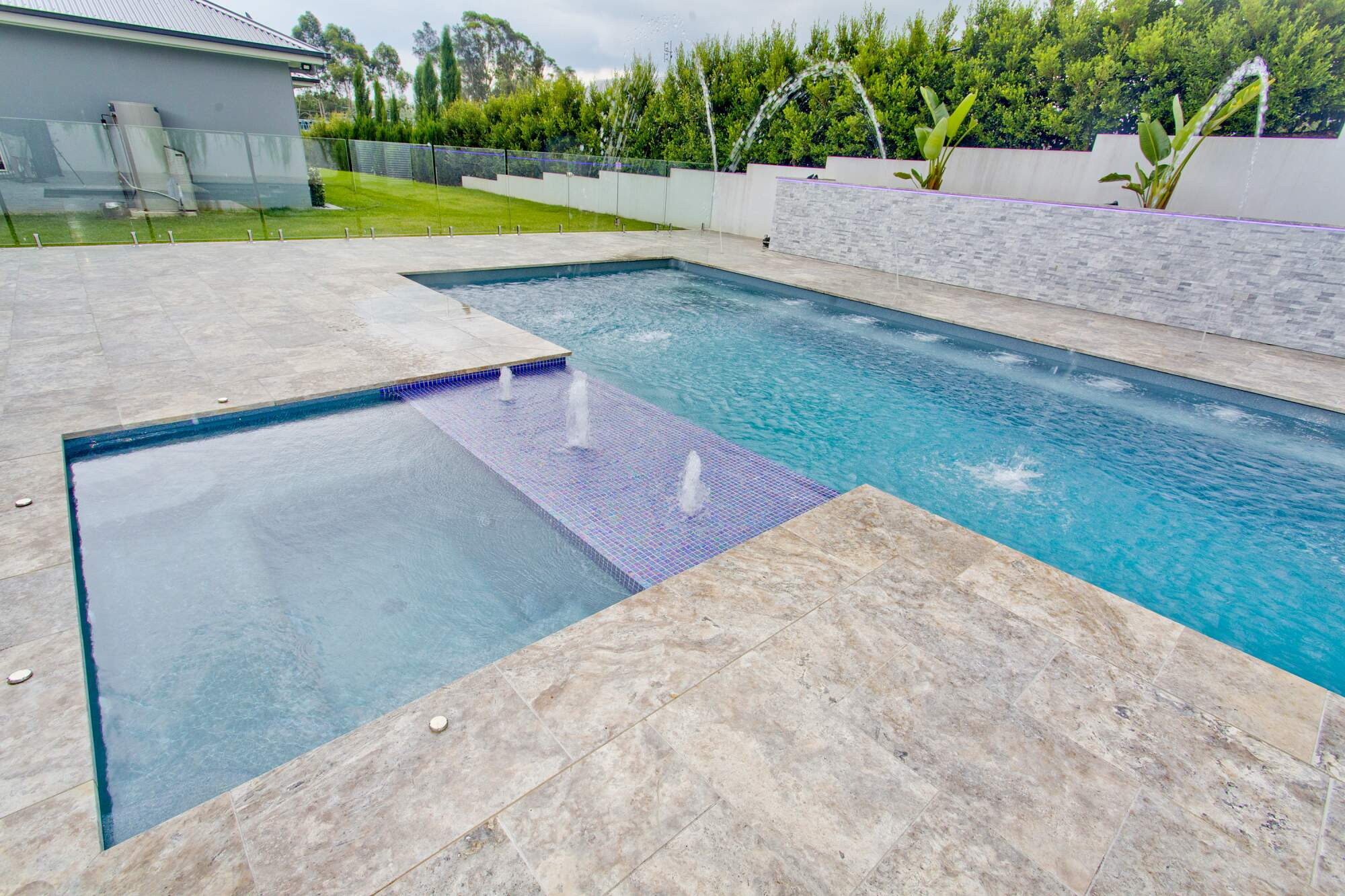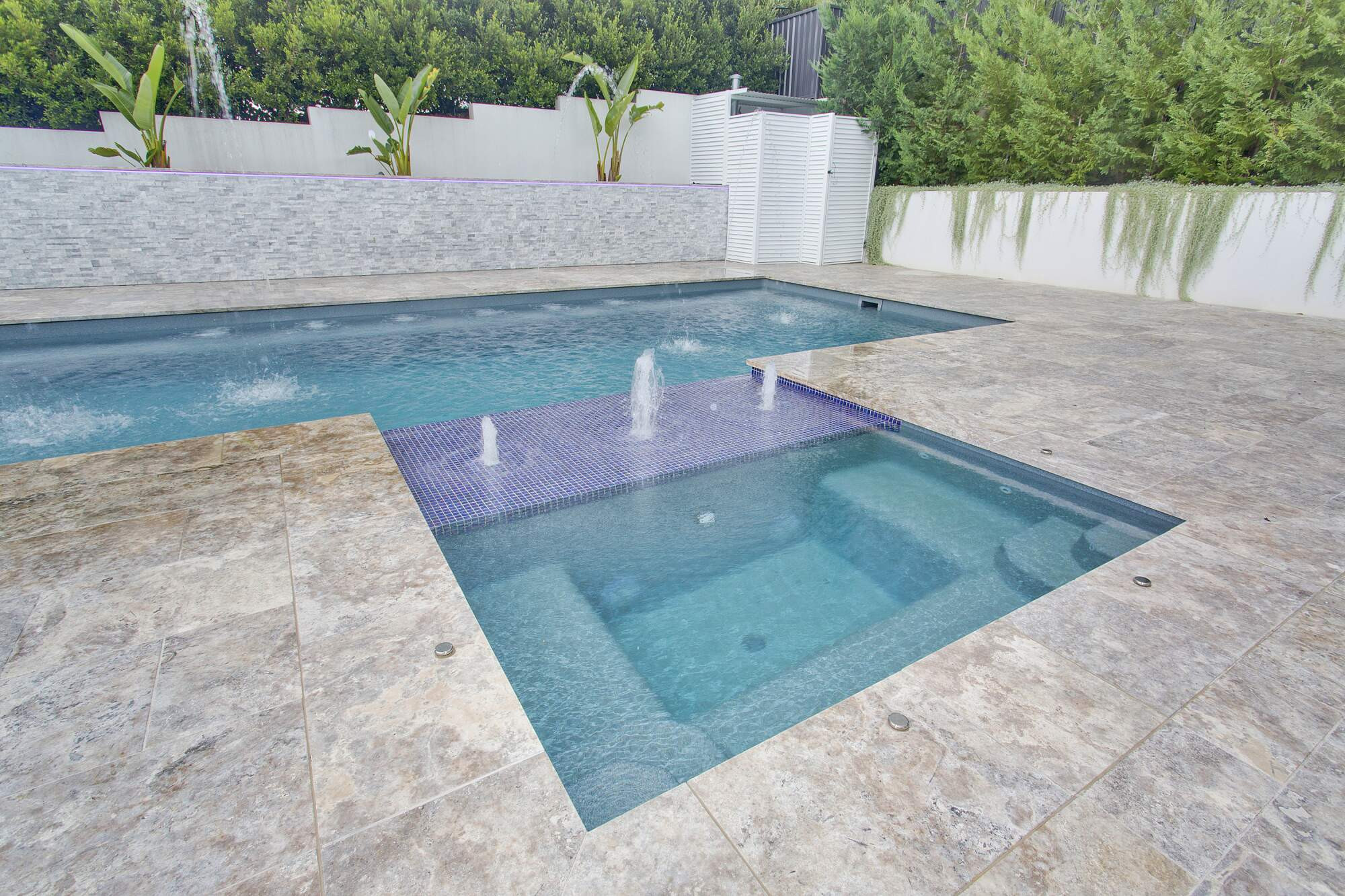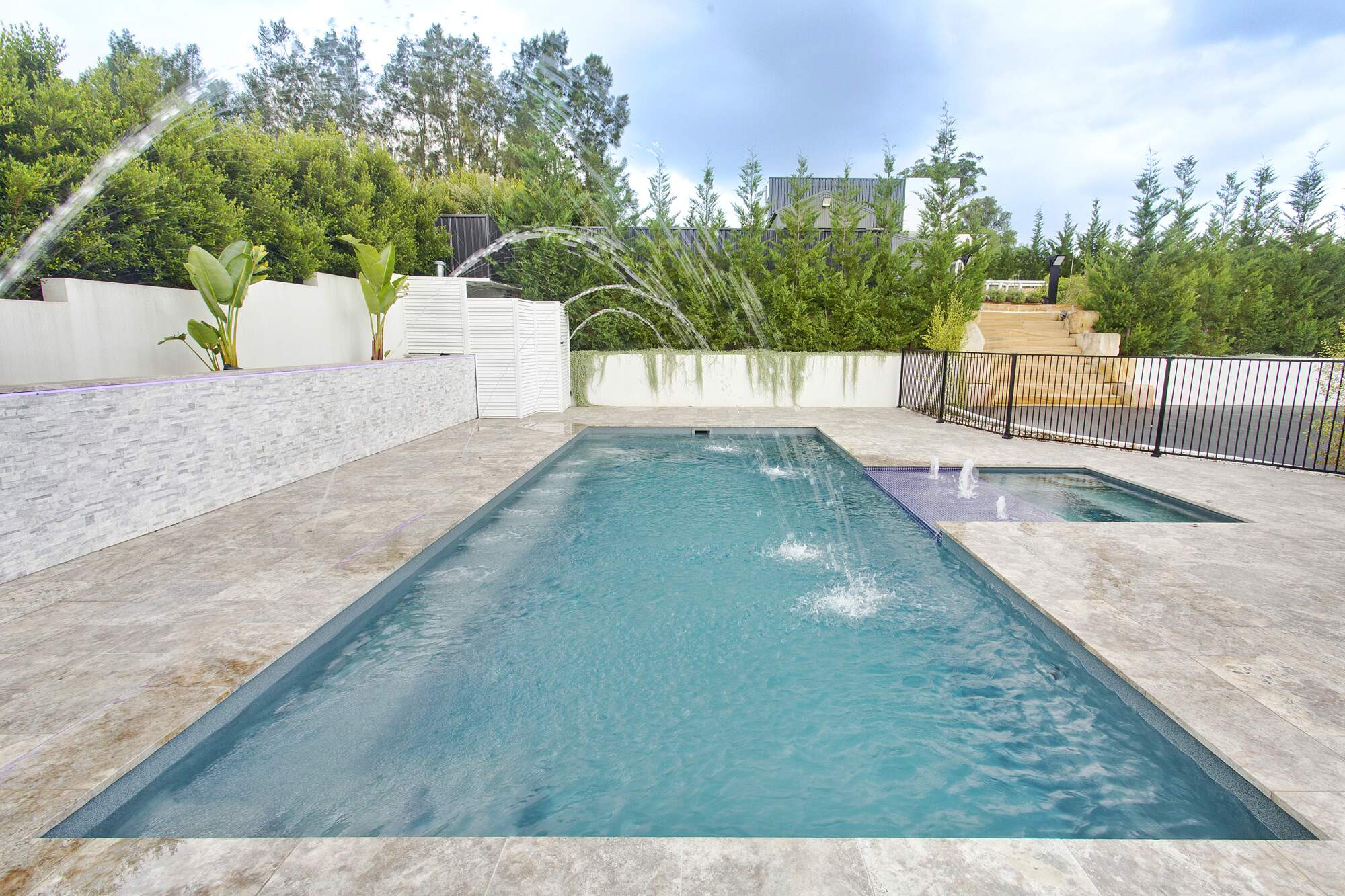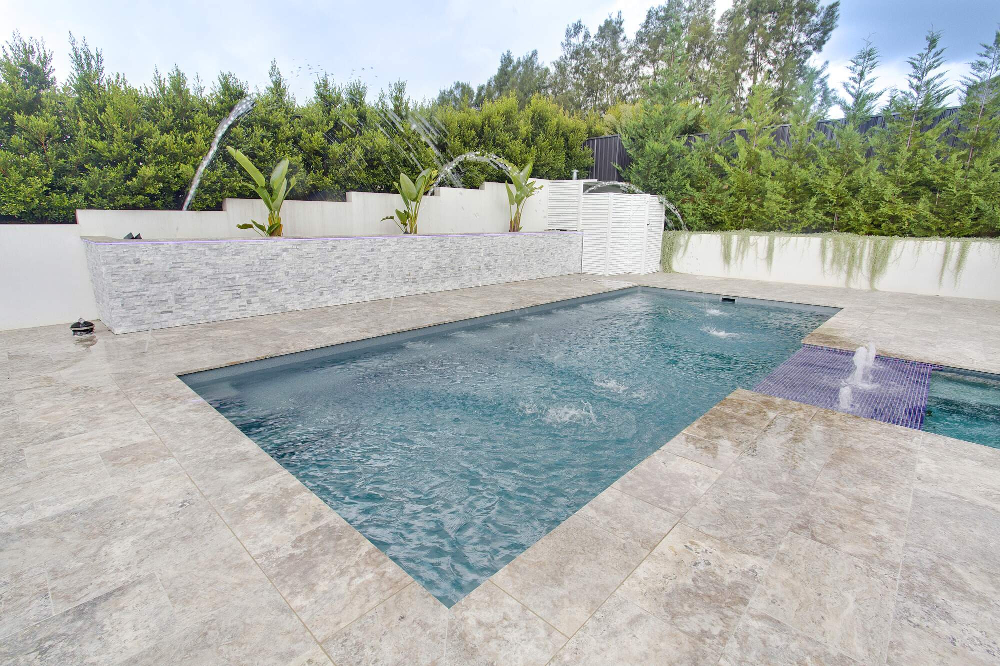 Our latest project boasts an exquisite blend of sophistication and serenity, featuring four garden jets that dance amidst the backdrop of a stunning spa adorned with bubbler jets and a captivating water feature. Envision a palette of calming greys and whites, punctuated by the subtle allure of azure blues in our enchanting water feature. Join us in transforming ordinary spaces into extraordinary retreats, where every detail is meticulously crafted to enchant and inspire.