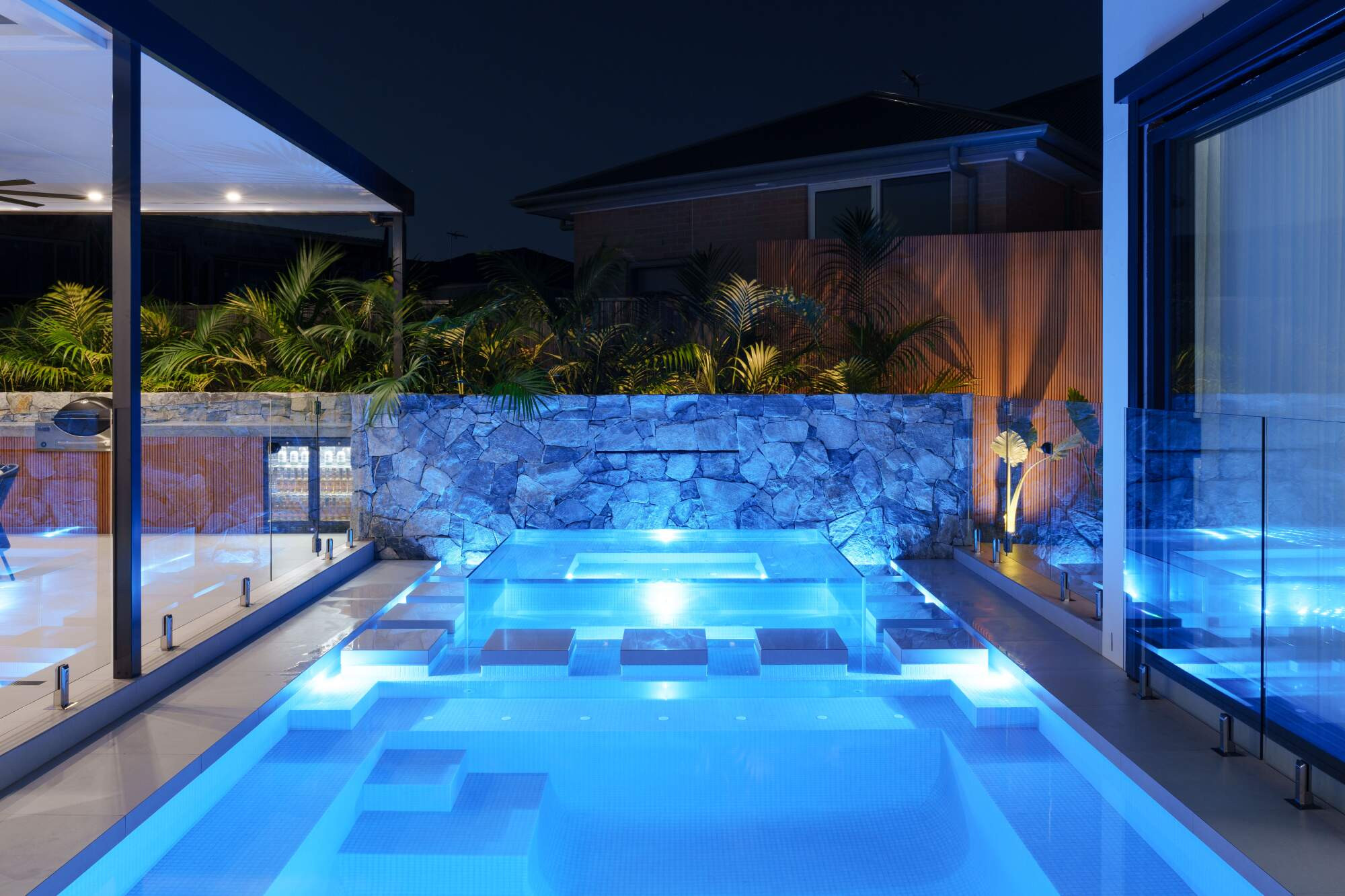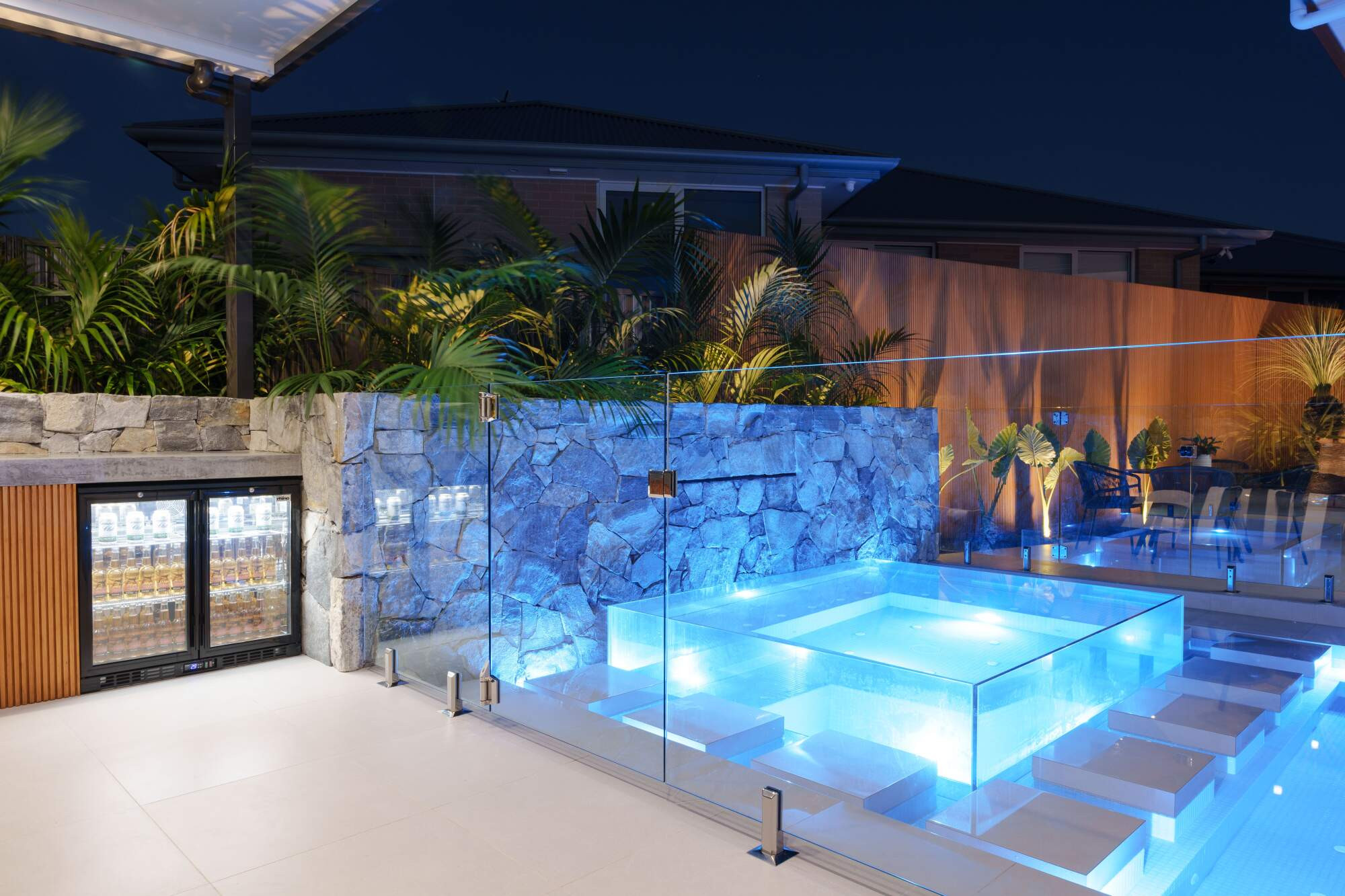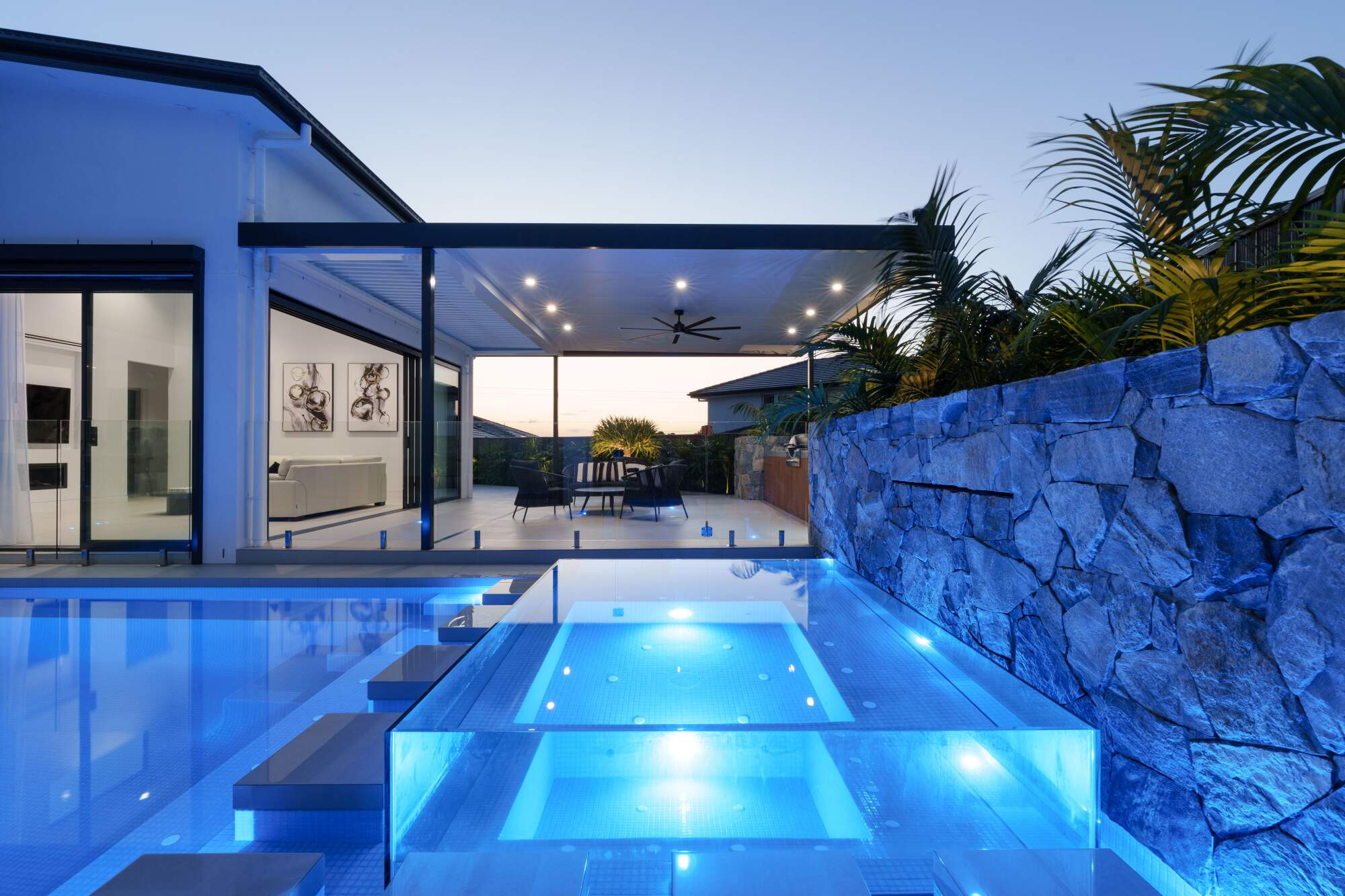 When you can't have a house on the coast you can just build it in your backyard! This project makes you feel like you have rented a spectacular air bnb in Port Douglas! A beautiful heated pool and spa to use all year round that makes you feel like you're in paradise. Surrounded by leafy palms, this airy space is built for enjoyment, relaxing and entertaining all at once with all the bells and whistles a touch of a button away.