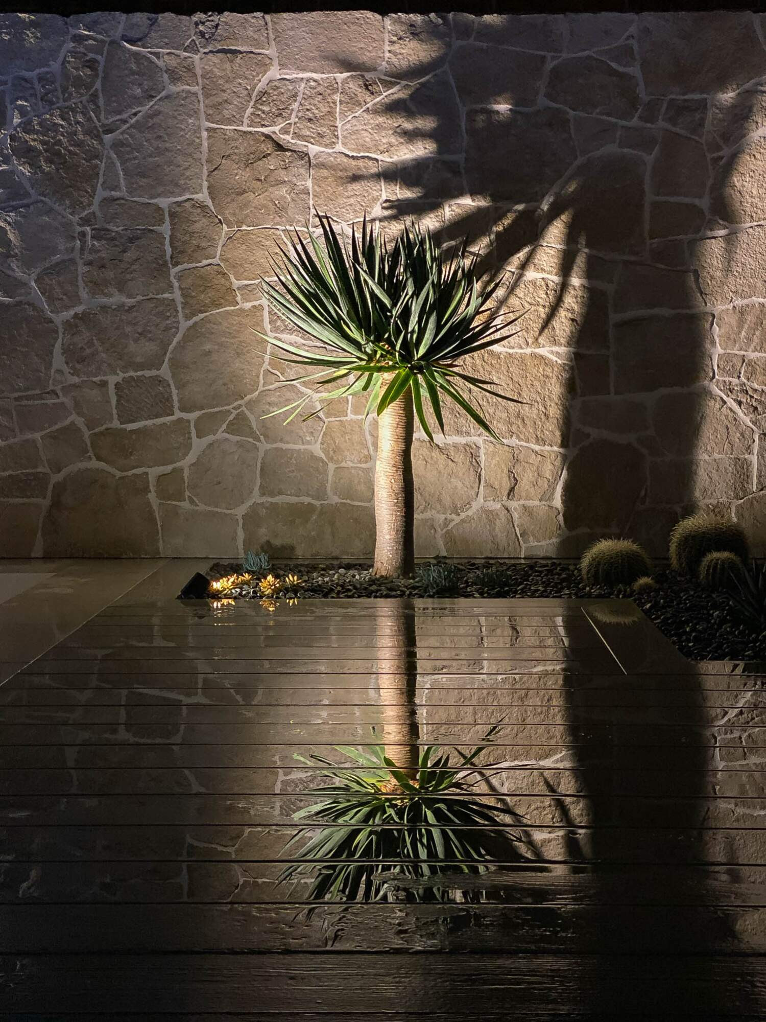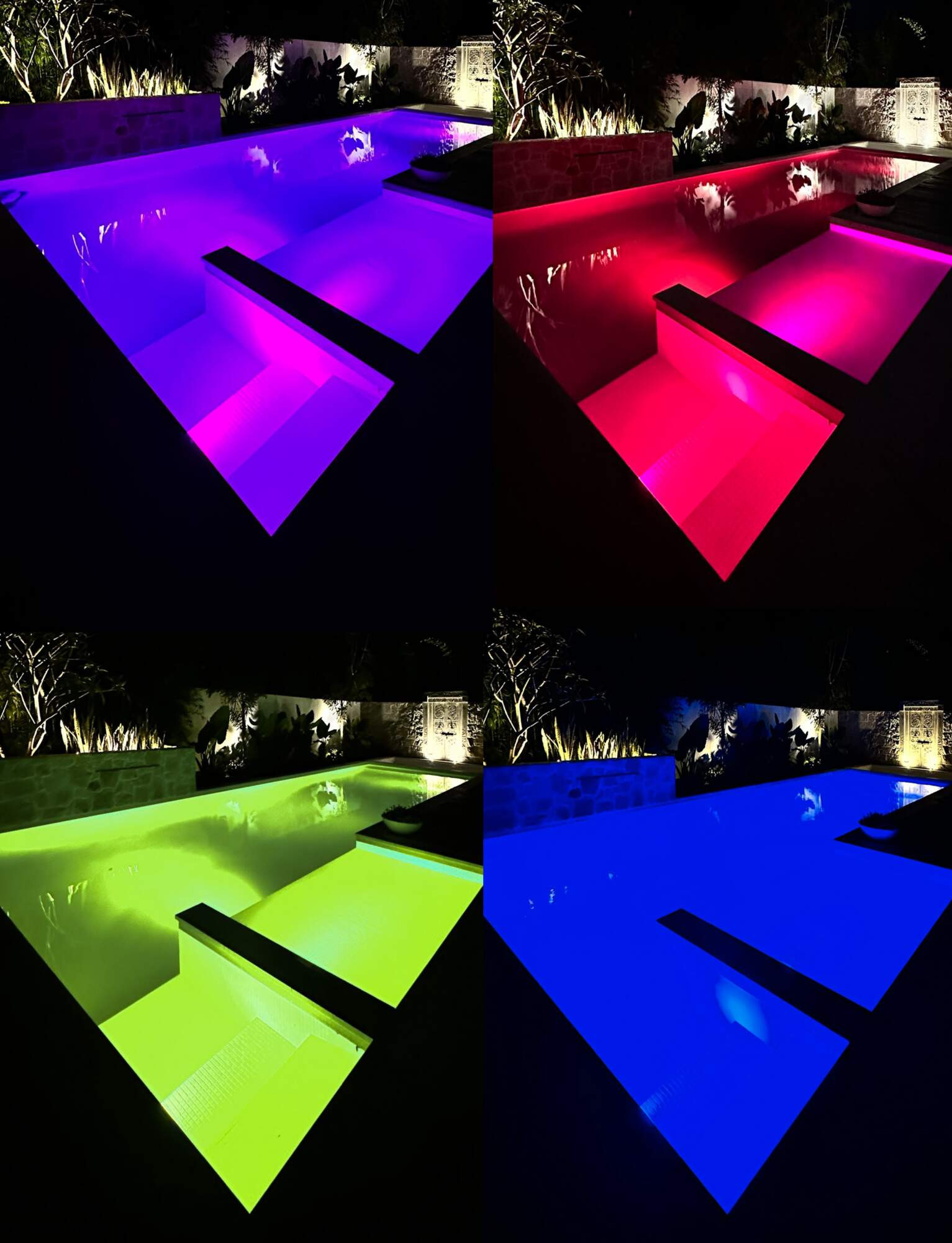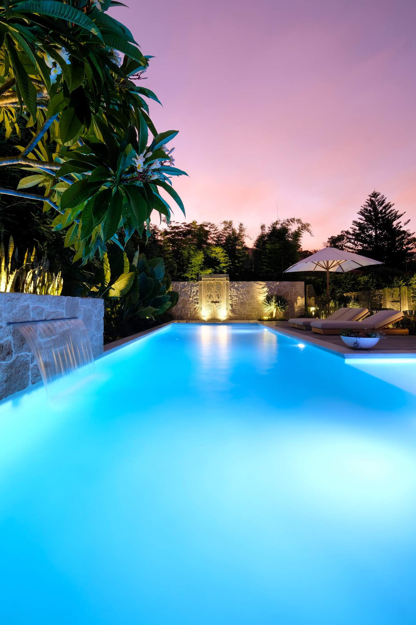 While exquisite during the day, this pool area transforms into an other-world experience by night, lending an entirely unique aura to the space. Considering ambient light and reflection as a means to light the space creates a mood distinctly reminiscent of meandering through a tropical resort by evening, while in-pool lighting can transform the mood from an exotic resort to an Ibiza pool party at the touch of a button. A truly versatile space designed to be enjoyed equally by day and by night.