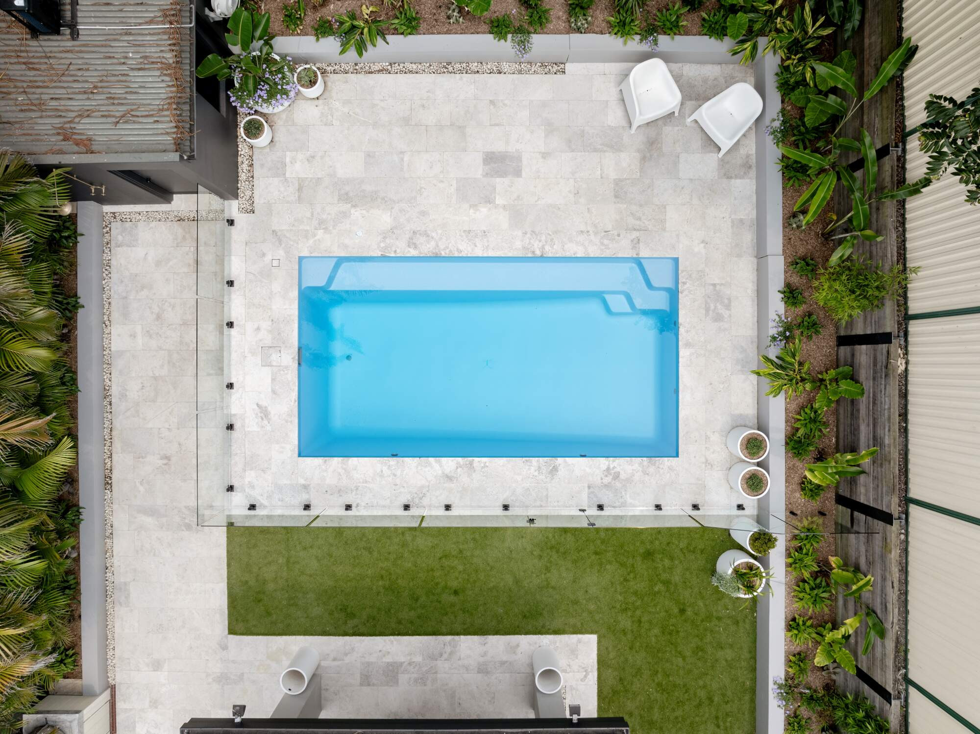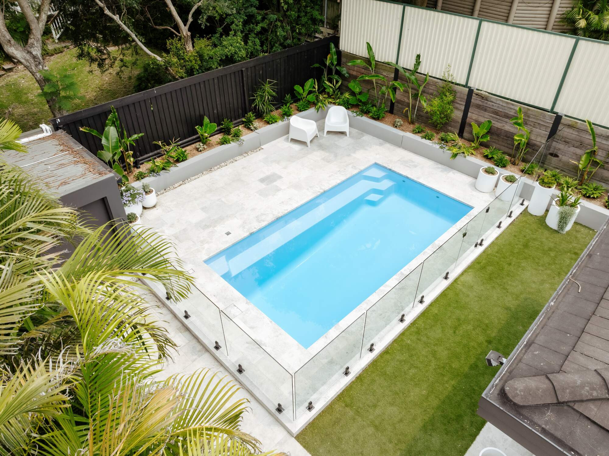 In Randwick, a mother sought to revamp her pool area to better suit her expanding family. Instead of a larger pool, she chose to embrace spacious surroundings. Aquify Pools installed a Positano pool (5.5m x 2.5m) in a Hampton's blue hue. Tropical trees bordered the yard, crafting an urban sanctuary. The design ingeniously incorporated vast spaces around the pool, fostering an ambiance of grandeur and openness. With meticulous attention to pool colors, materials, and layout, coupled with ample en