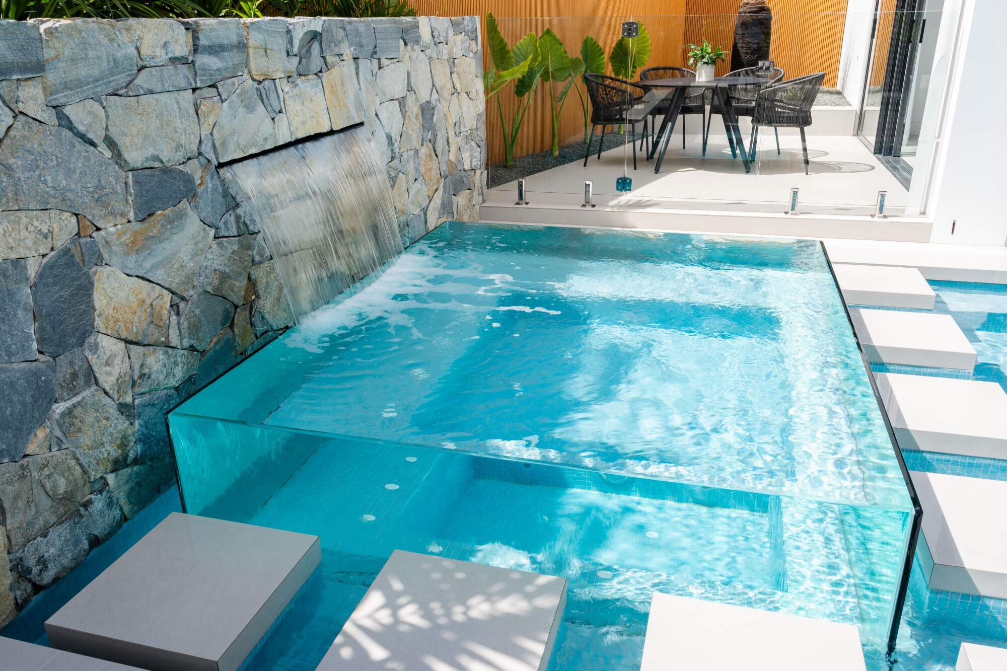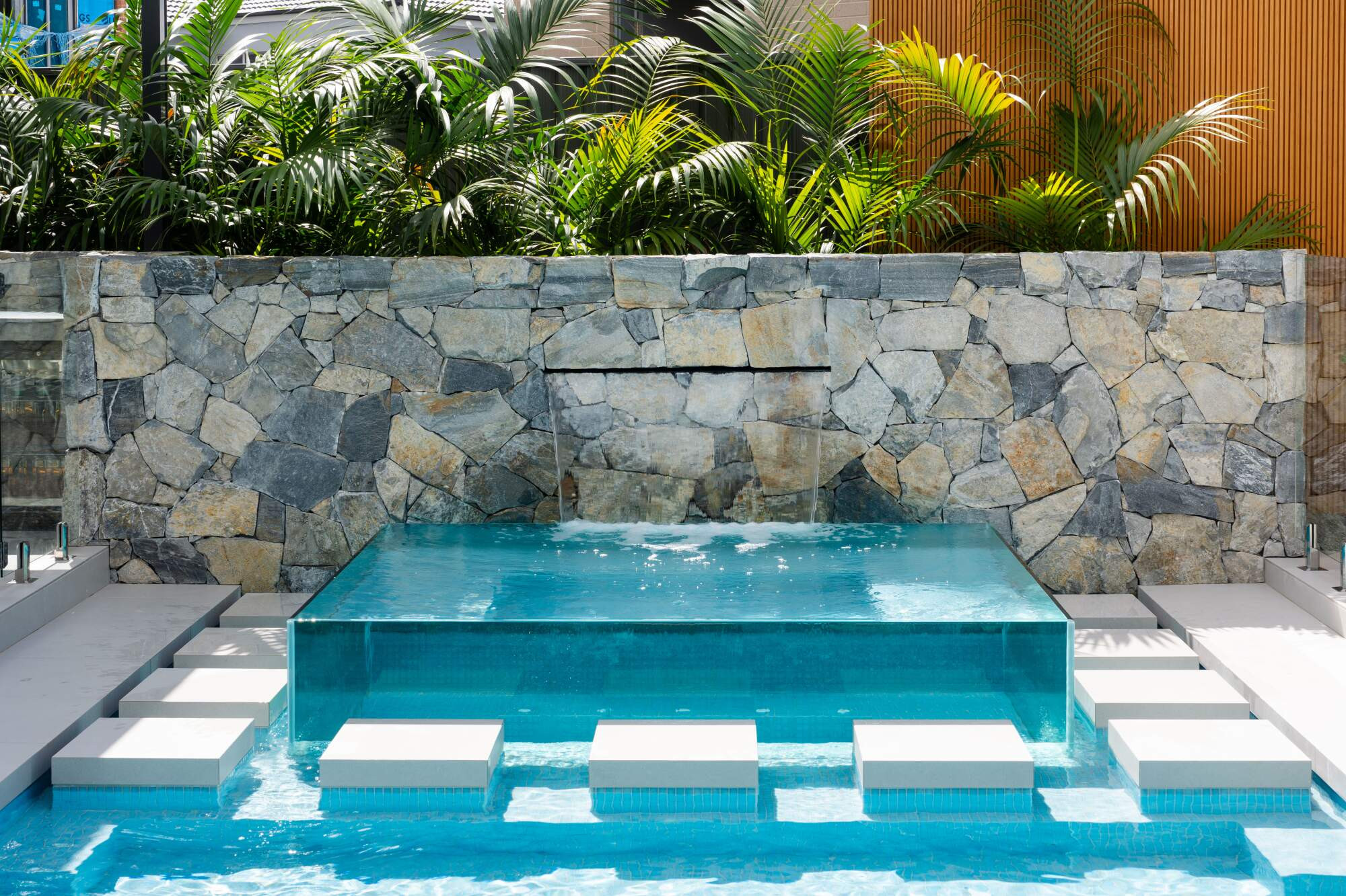 Stone waterwall, Transform Pools and Spas