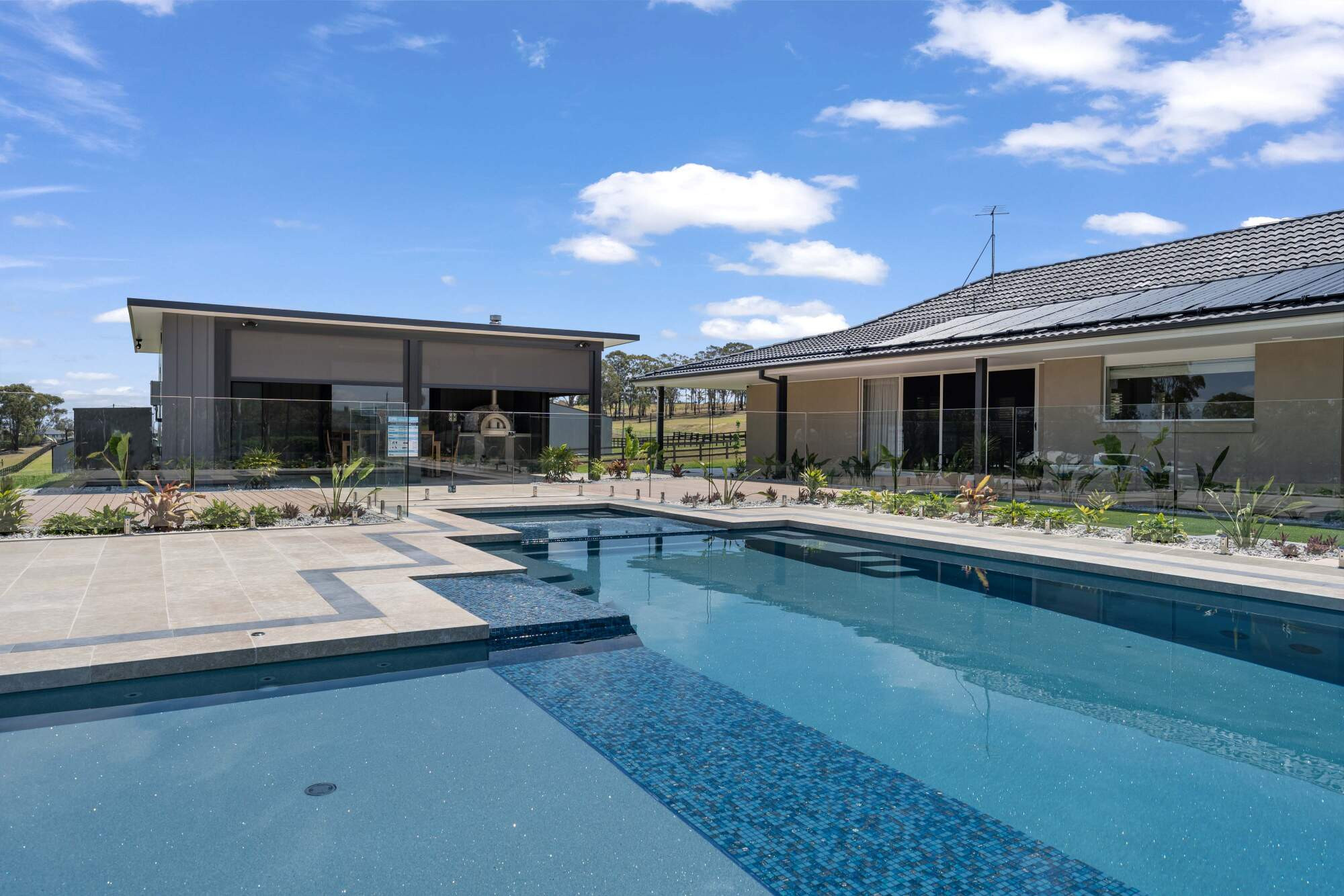 The client was looking for a pool and spa with the addition of a wader/beach zone. They wanted a big wow factor with a focus on outdoor living. This project delivers on all of those aims.