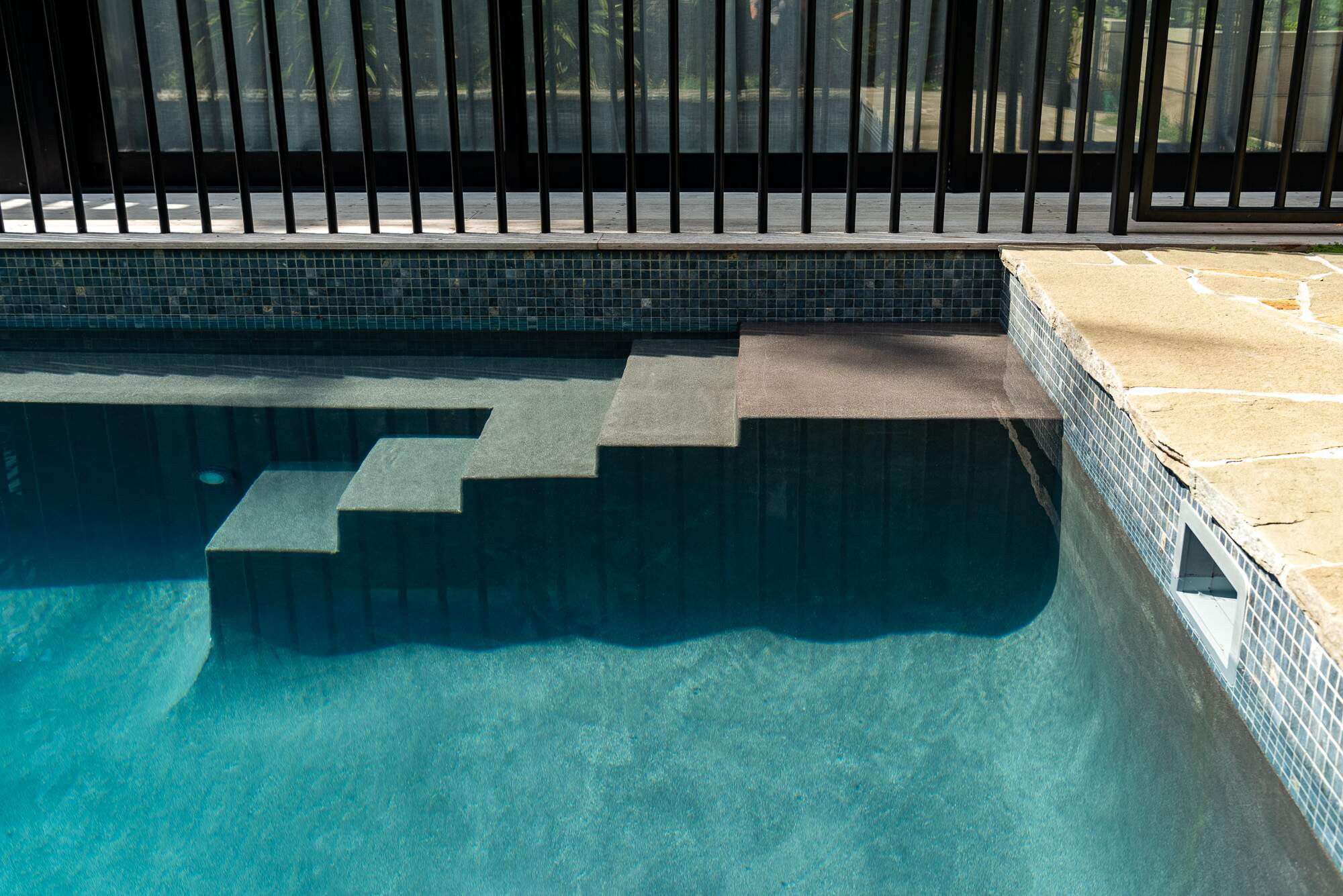 Bringing together the unique NZ quarried crazy paving, a custom coloured blended pool render, native planting and eco-friendly sustainable pool products, this pool became an instant hit with family and friends of the homeowner, epitomising the very essence of modern Kiwi summertime living