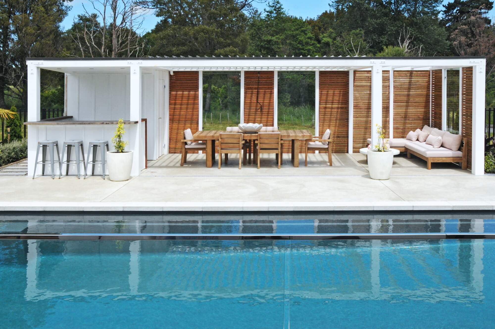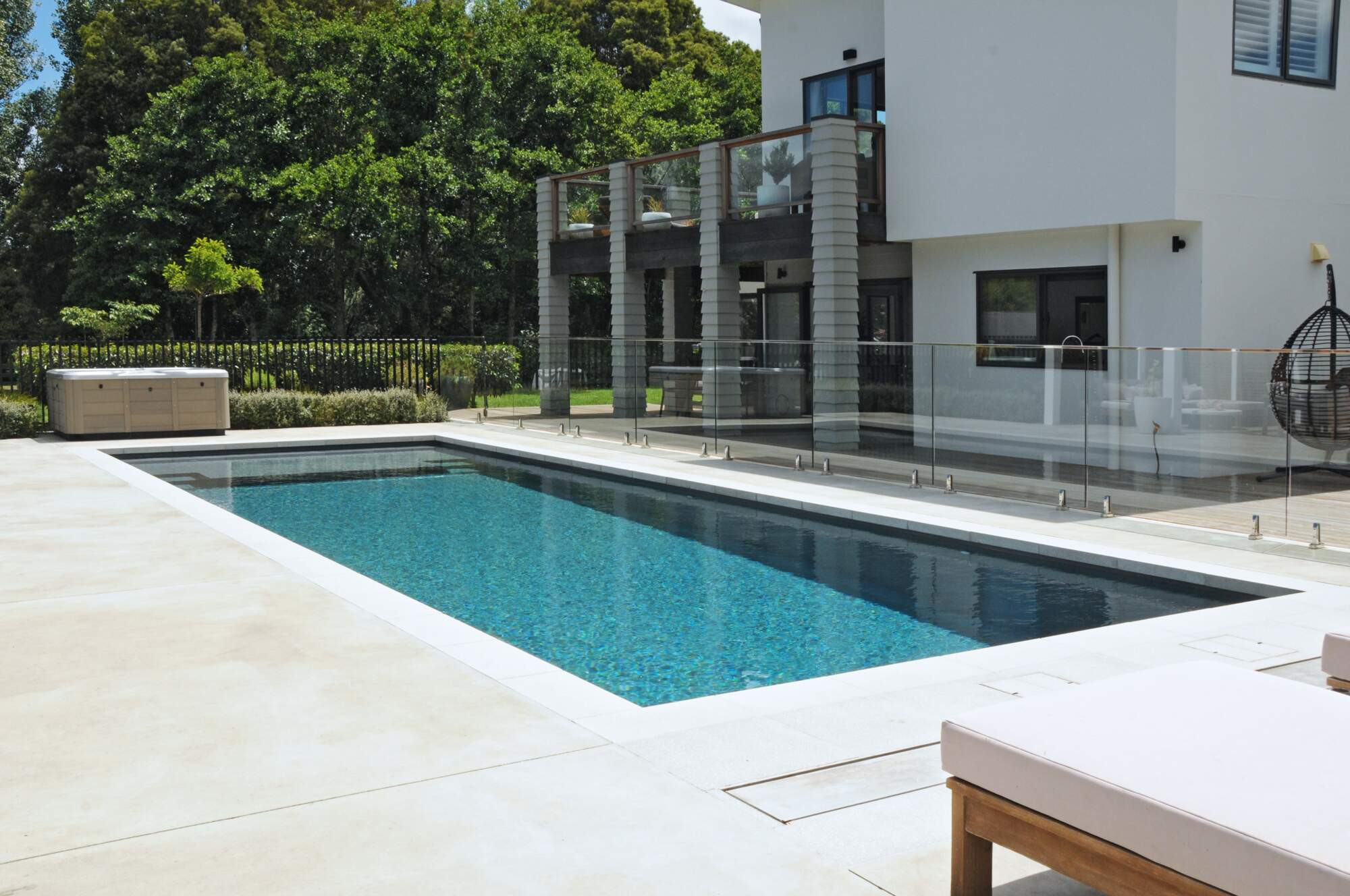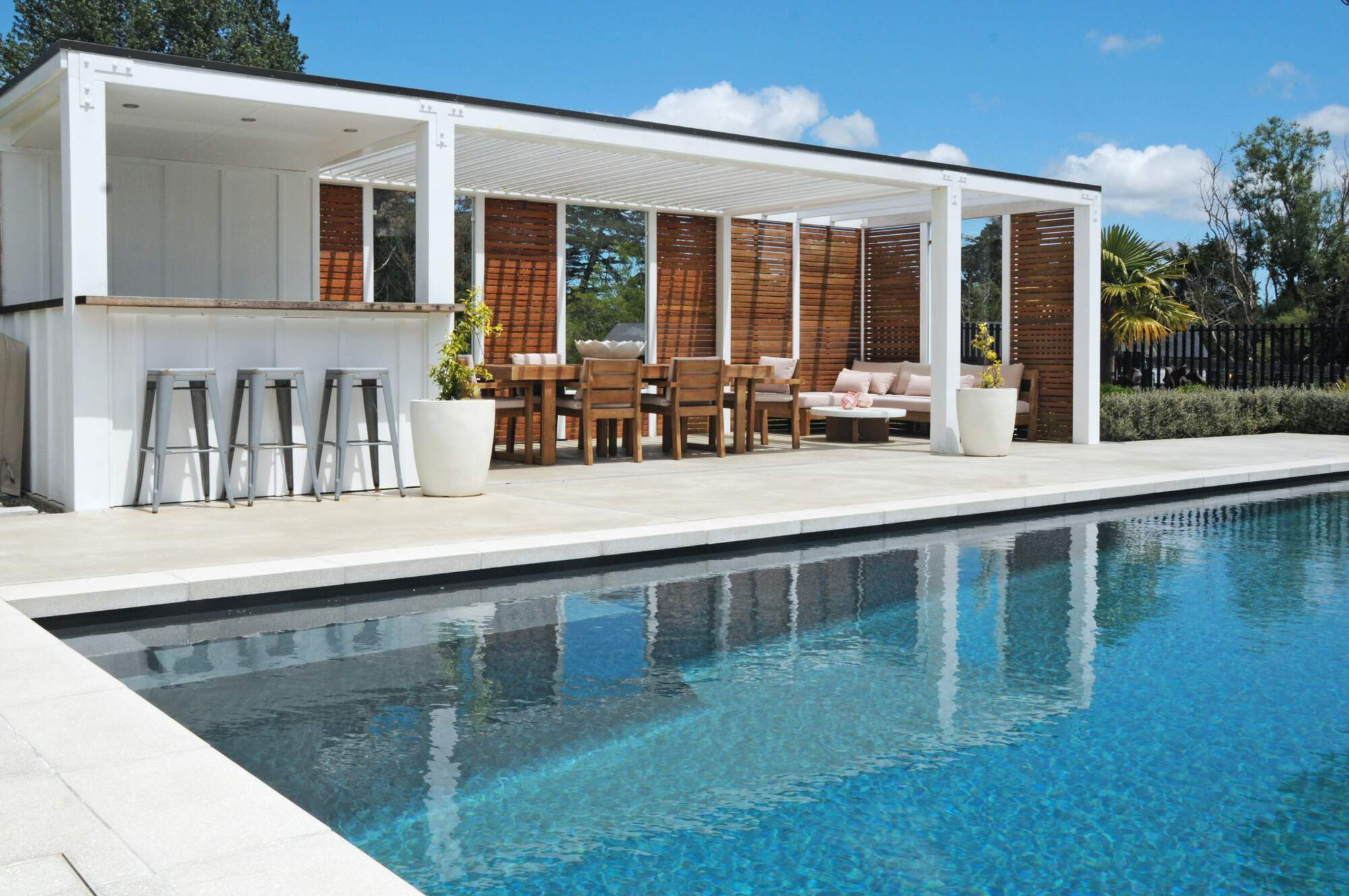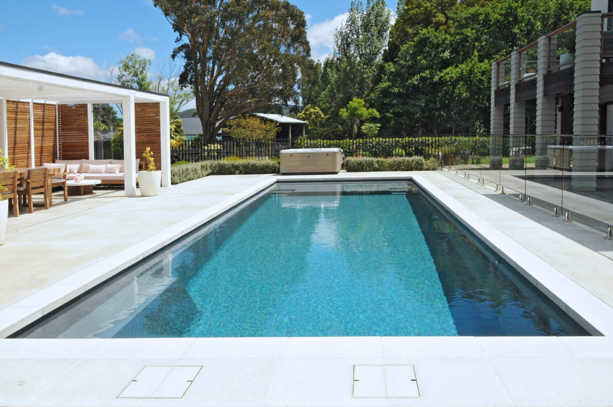 We loved working with this fun couple to create a resort looking pool area that they totally love. Our clients can relax in their pool area and watch over their rescued goats who happily graze just over the fence by the pool. One of our favourite pool builds ever.