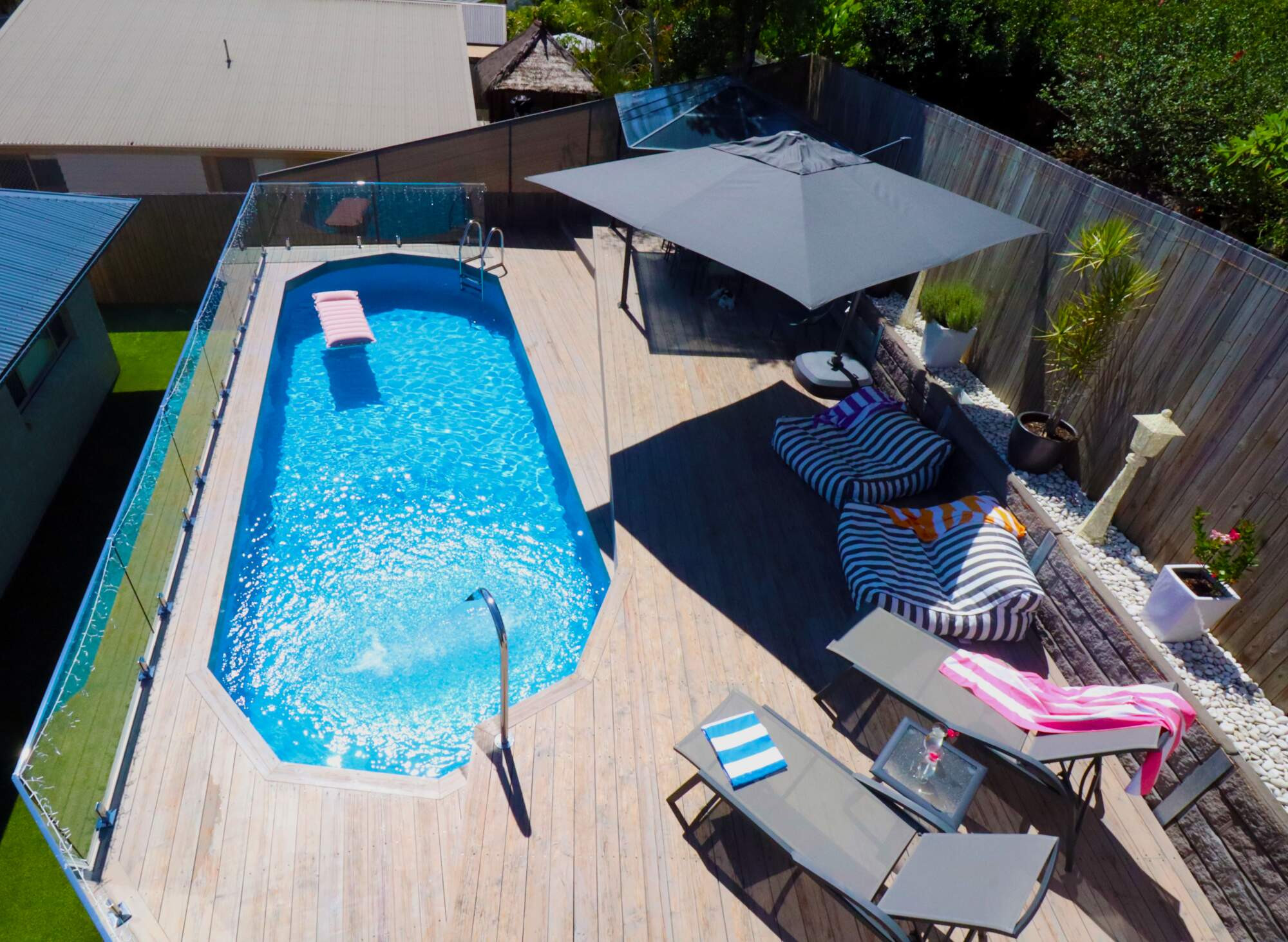 If you are looking for a pool that can fit in a challenging site, look no further than our 9m Modular Classic pool. This pool can be installed on a steep slope with minimal excavation and disruption to your landscape. It also features mineral sanitation, which reduces the need for harsh chemicals and enhances water quality. You can enjoy the ambiance of led strip lighting that changes color according to your mood. The heat pump means you can use your pool all year round, regardless of weather