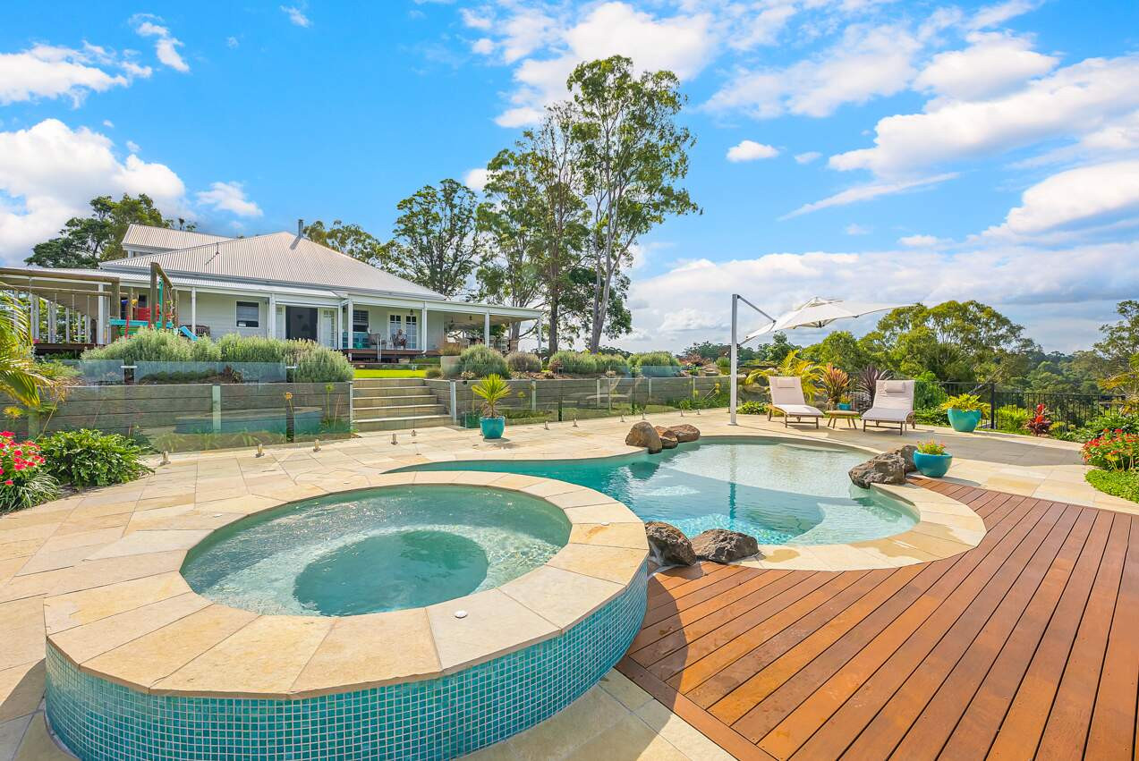 Nestled within an expansive acreage site, this masterpiece features a magnificent 6-metre free-form pool complemented by a raised spa, seamlessly blending captivating curves with sleek finishes. Crafted with a vision to evoke the serenity of nature, this pool incorporates natural rock elements along the coping, seamlessly transitioning between the tranquil waters and the sprawling acreage beyond.