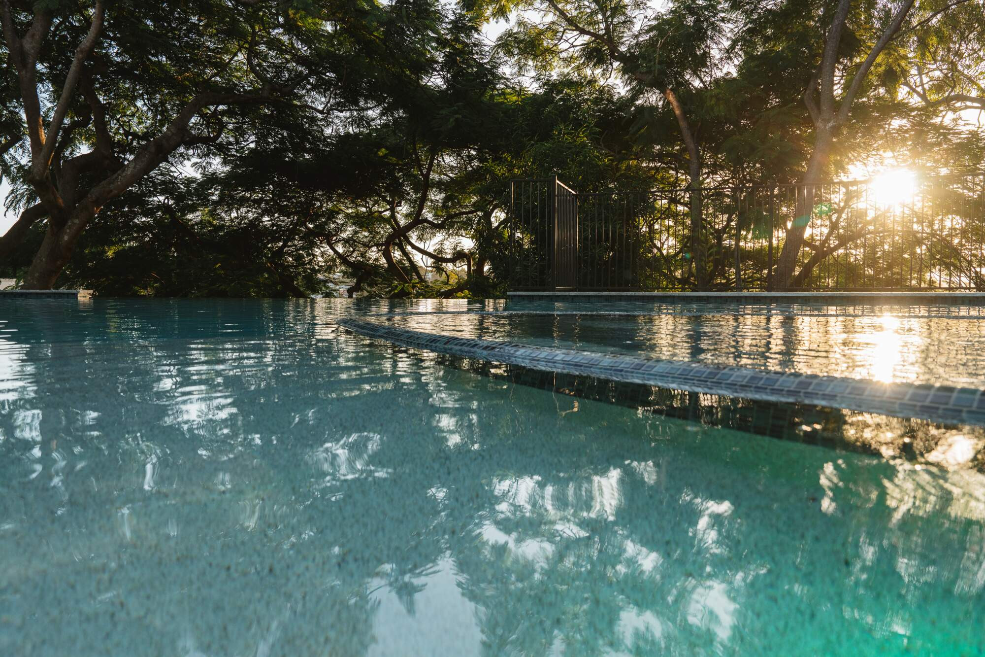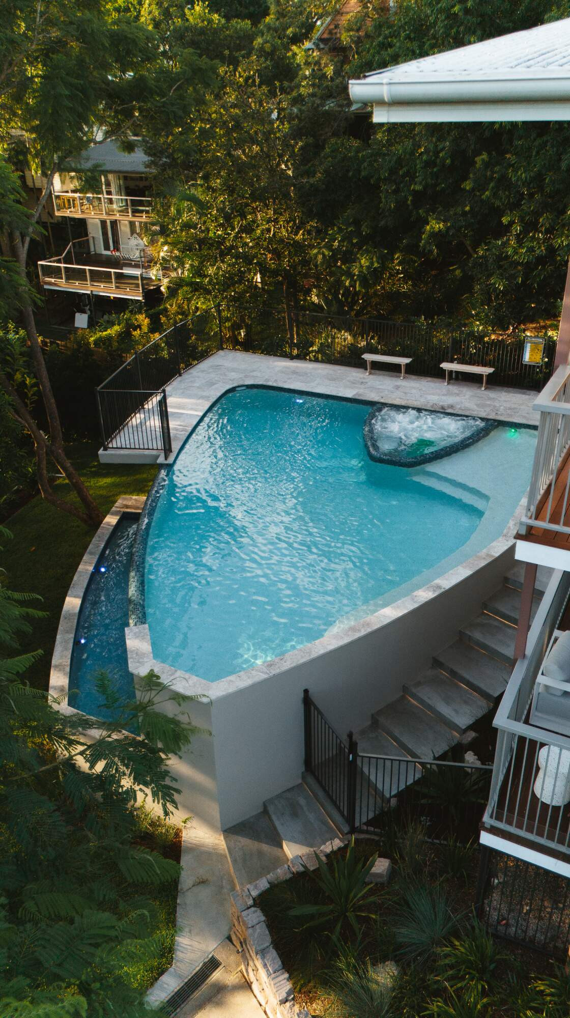 Achieving harmony within your environment is only attained through careful integration of design elements. Pool and spa seamlessly blend to embrace the natural hillside location with an individual infinity edge design. Precise engineering with creative freedom ensured the success of balancing unique features within the environmental context to create a truly rare and exquisitely beautiful pool.