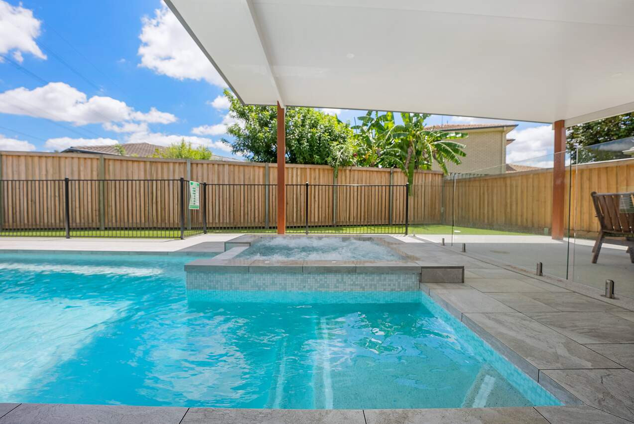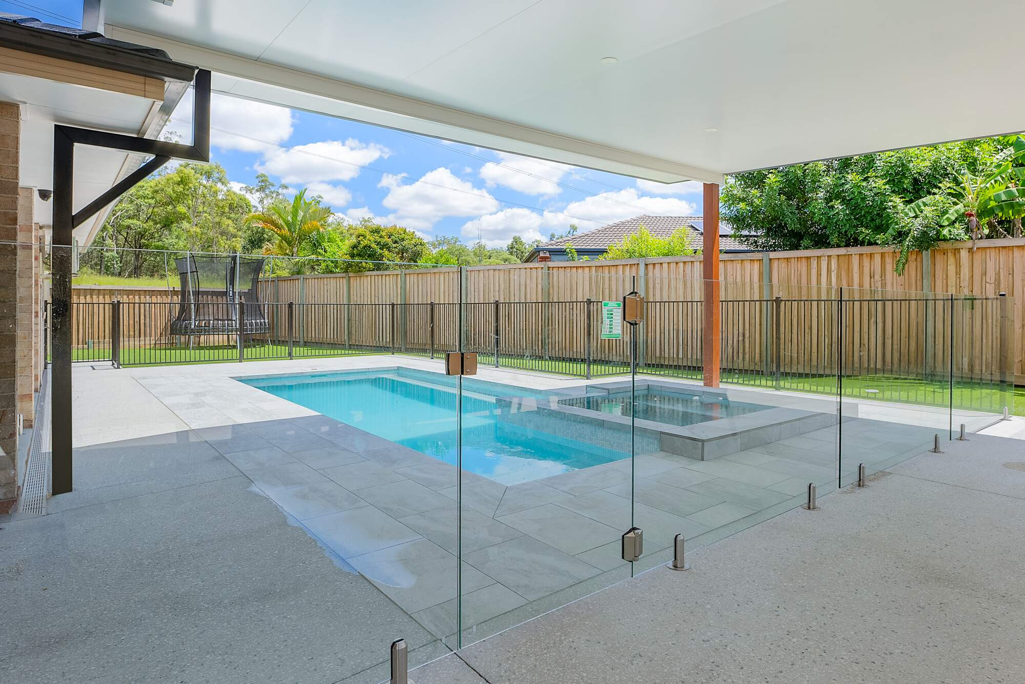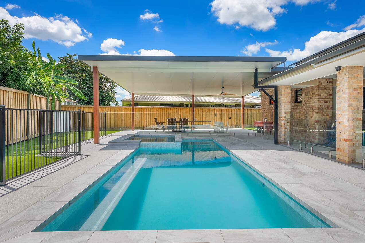 Designed to provide a shaded and protected oasis year-round,this expertly crafted pool spa combination, complete with wide entry step offers multiple zones for both playful moments and serene relaxation.