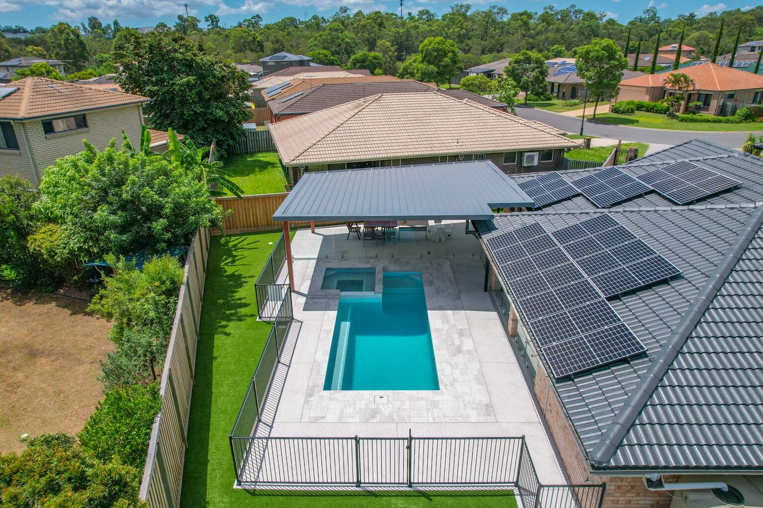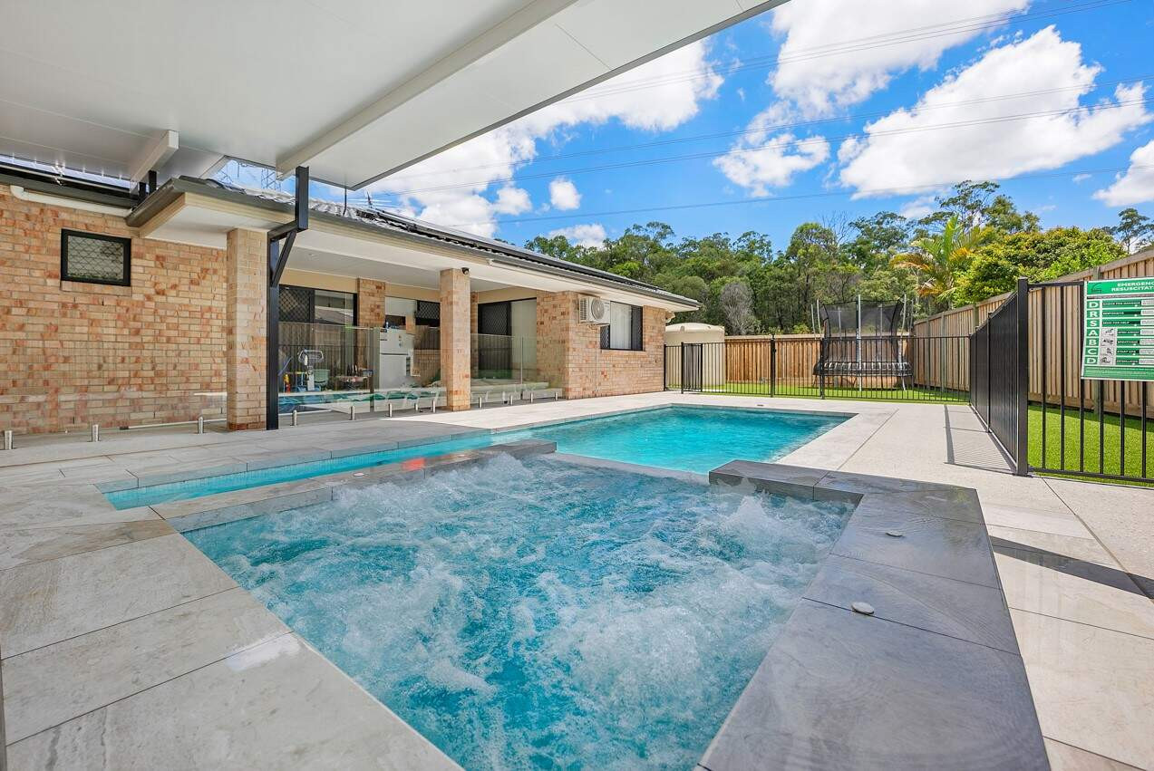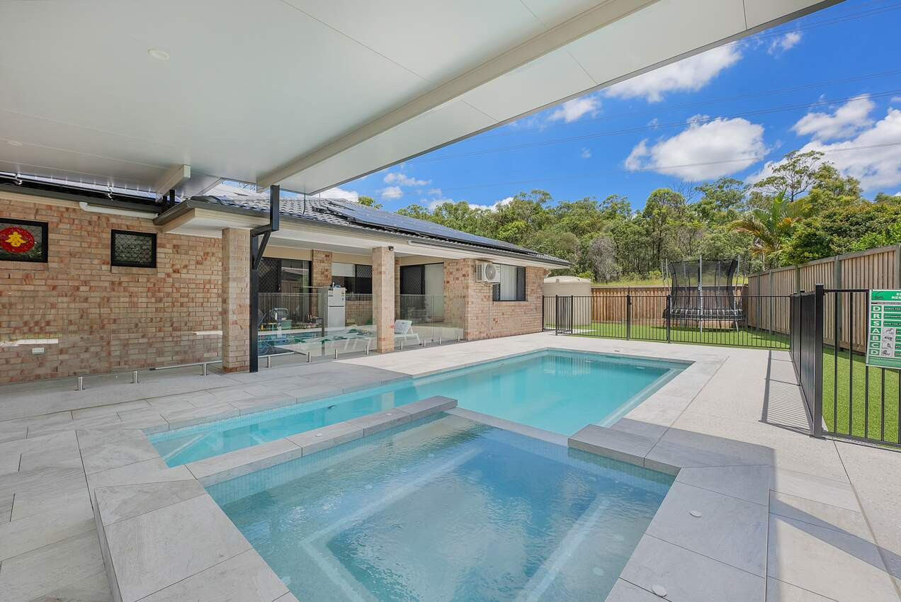 Designed to provide a shaded and protected oasis year-round,this expertly crafted pool spa combination, complete with wide entry step offers multiple zones for both playful moments and serene relaxation.