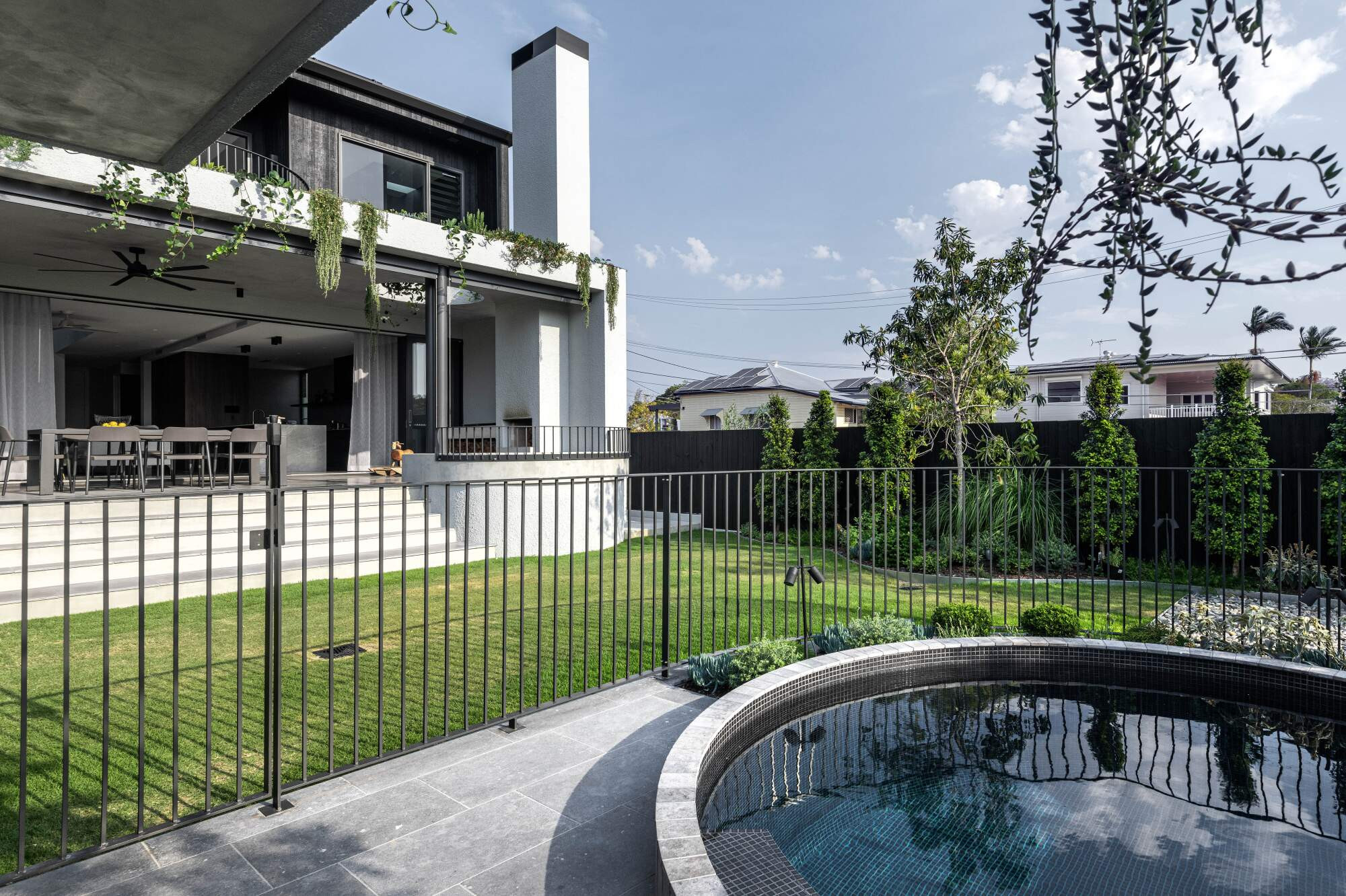 Decadent, inviting and meticulously planned, this outdoor sanctuary effortlessly complements the home’s modern aesthetic and clean lines. Despite being inner city, lush greenery creates a secluded and private space where the homeowners can revel and relax in their own Climate Care Certified, carbon neutral, opulent retreat.