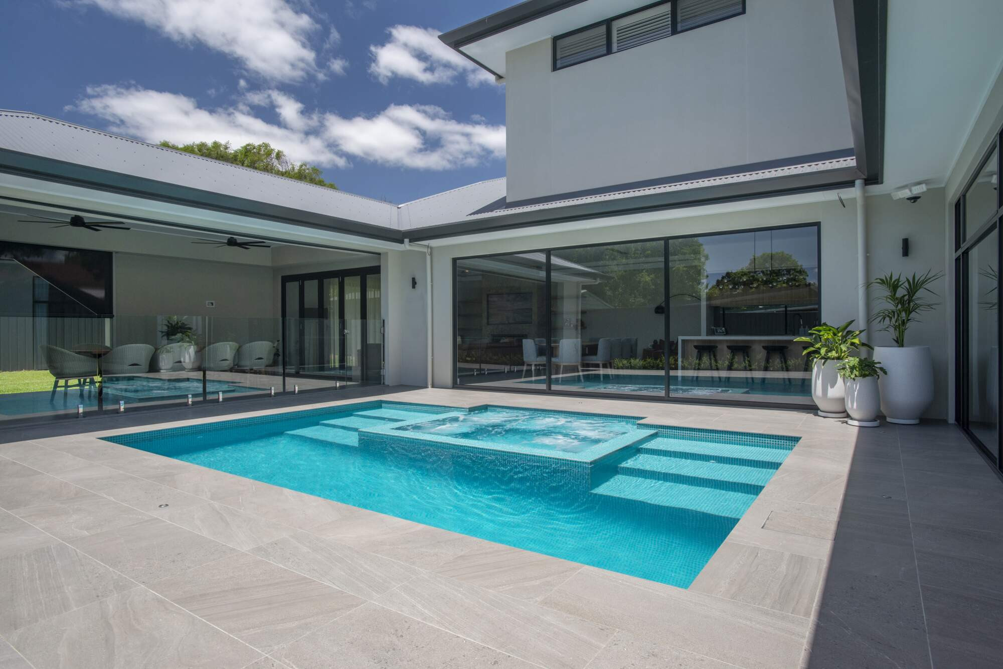 Experience the pinnacle of luxury living with our stunning pool and spa, meticulously designed to be the focal point of your new home. From the floor-to-ceiling windows in the kitchen, marvel at the breathtaking view of our exquisitely crafted pool and spa. With seamless integration of design and functionality, our pool epitomises elegance and sophistication. Dive into a world of class and texture, where every detail is meticulously curated for an unparalleled outcome.