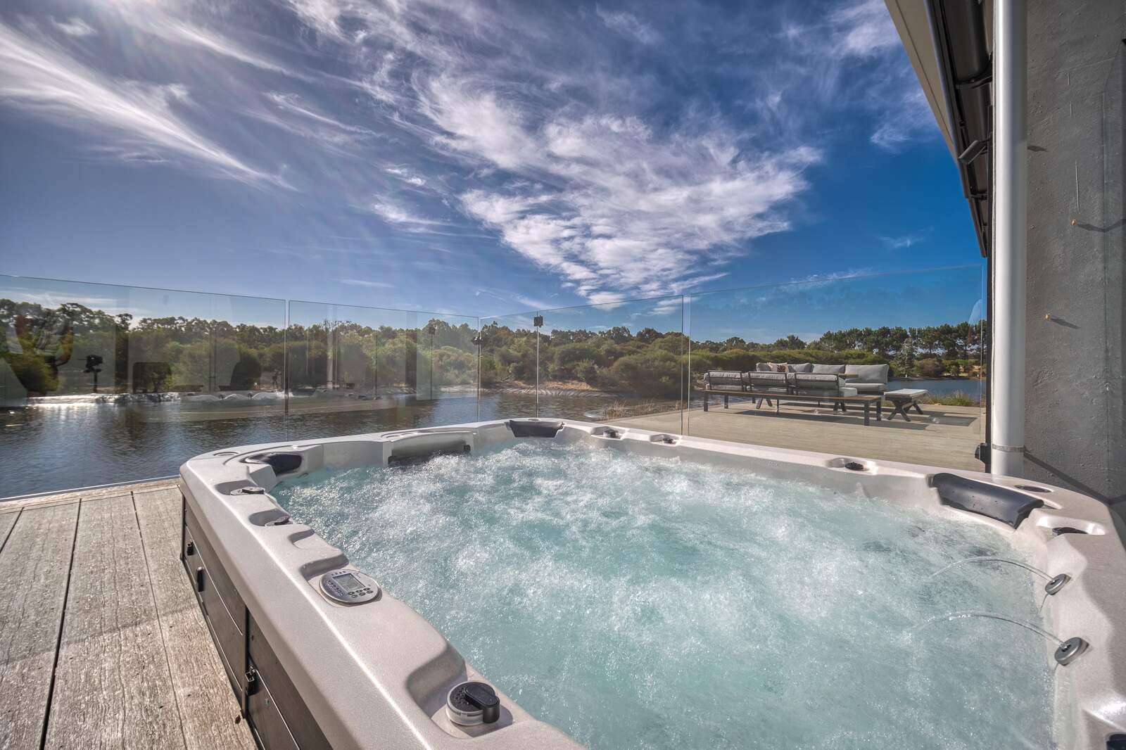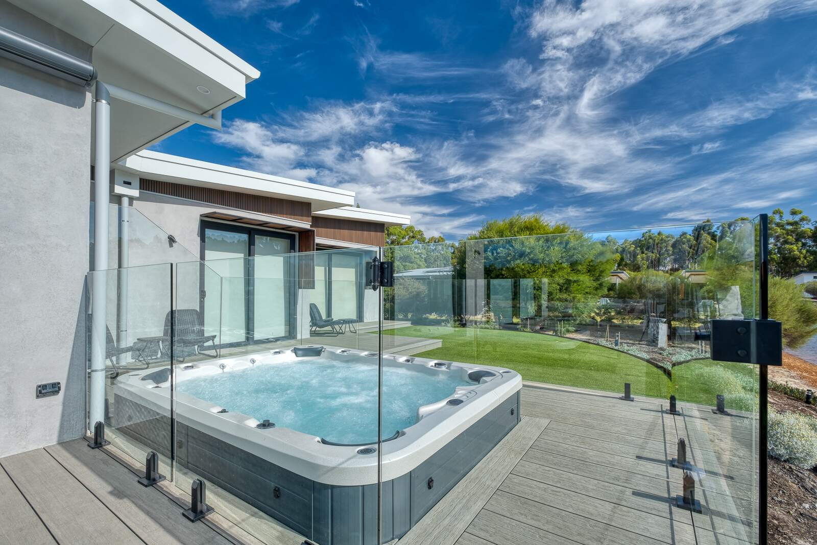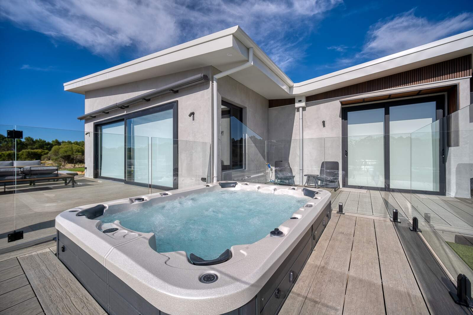 Indica Hemp House is an incredibly unique luxury property, built from locally grown industrial hemp, formulated into hempcrete. This house has been designed to showcase this amazing building product and features a spectacular Vortex™ Titanium entertainer spa for relaxing and enjoying the view.