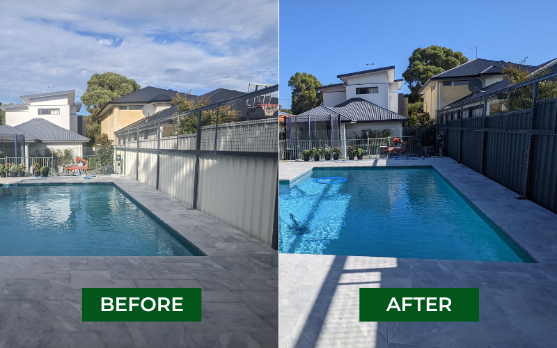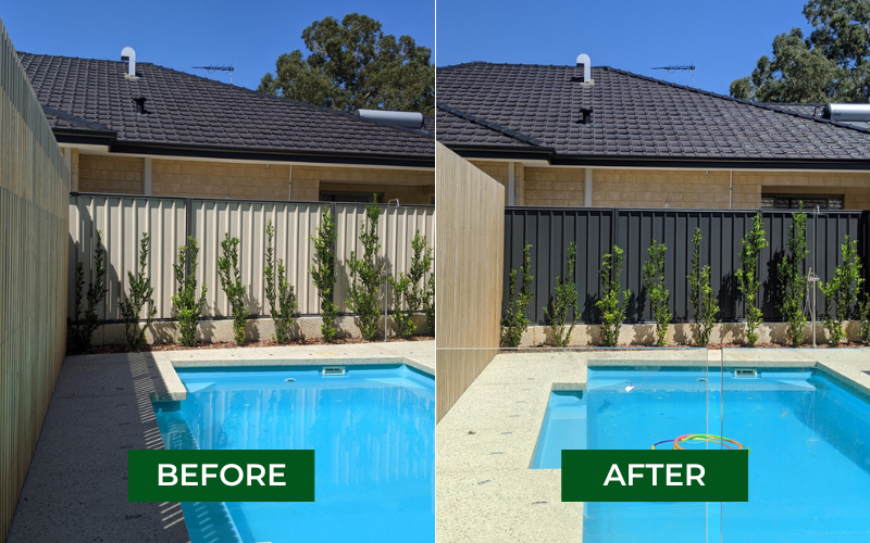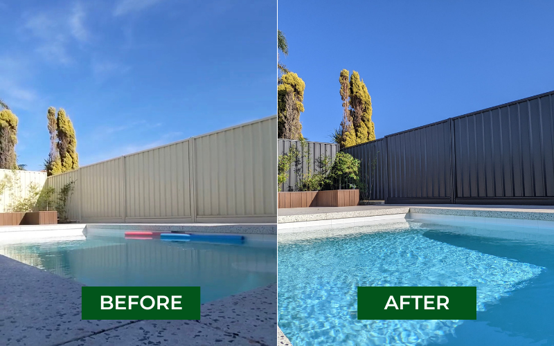 Fence Makeovers enhances the aesthetics of pool areas through its innovative recolouring of residential fence surrounds.