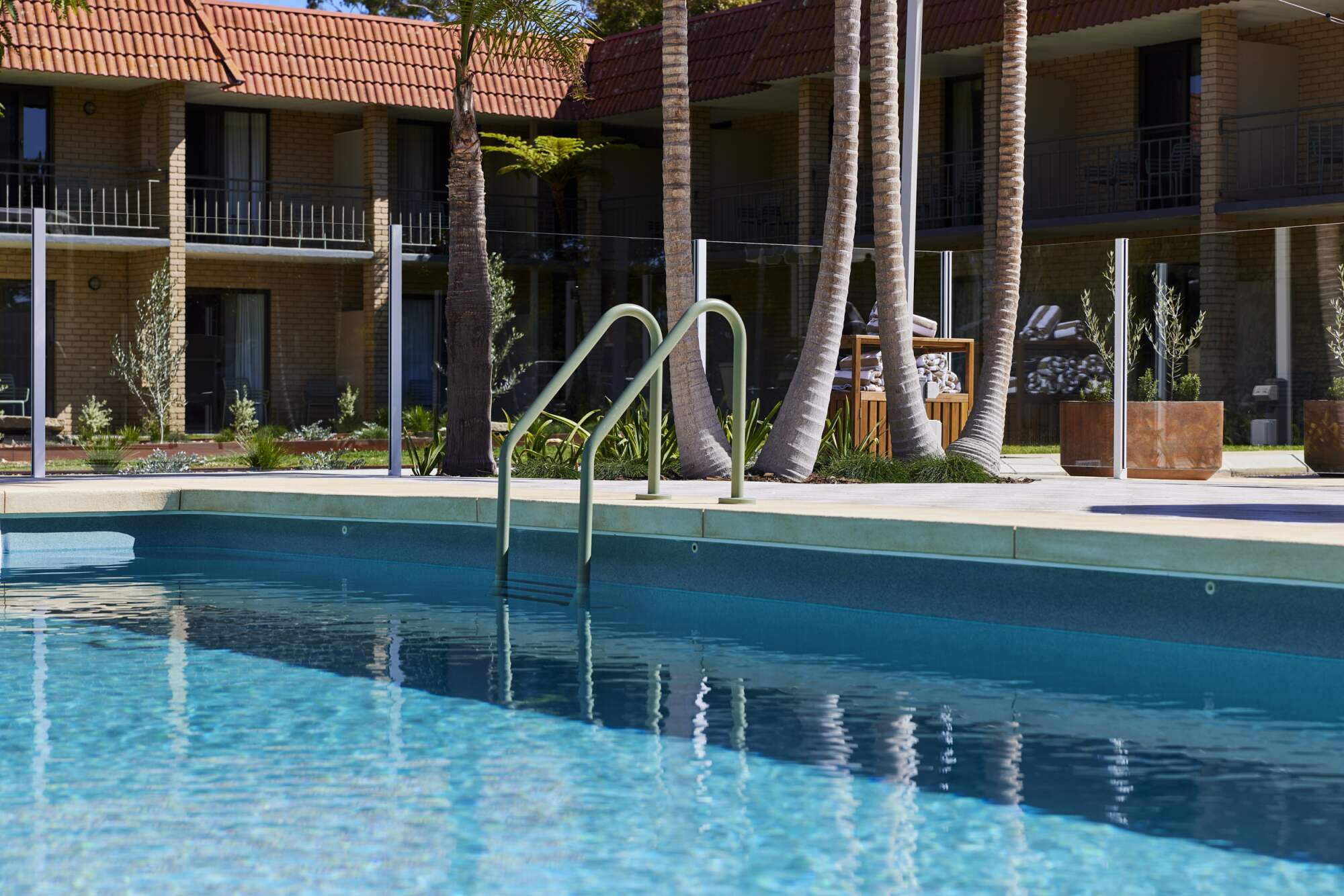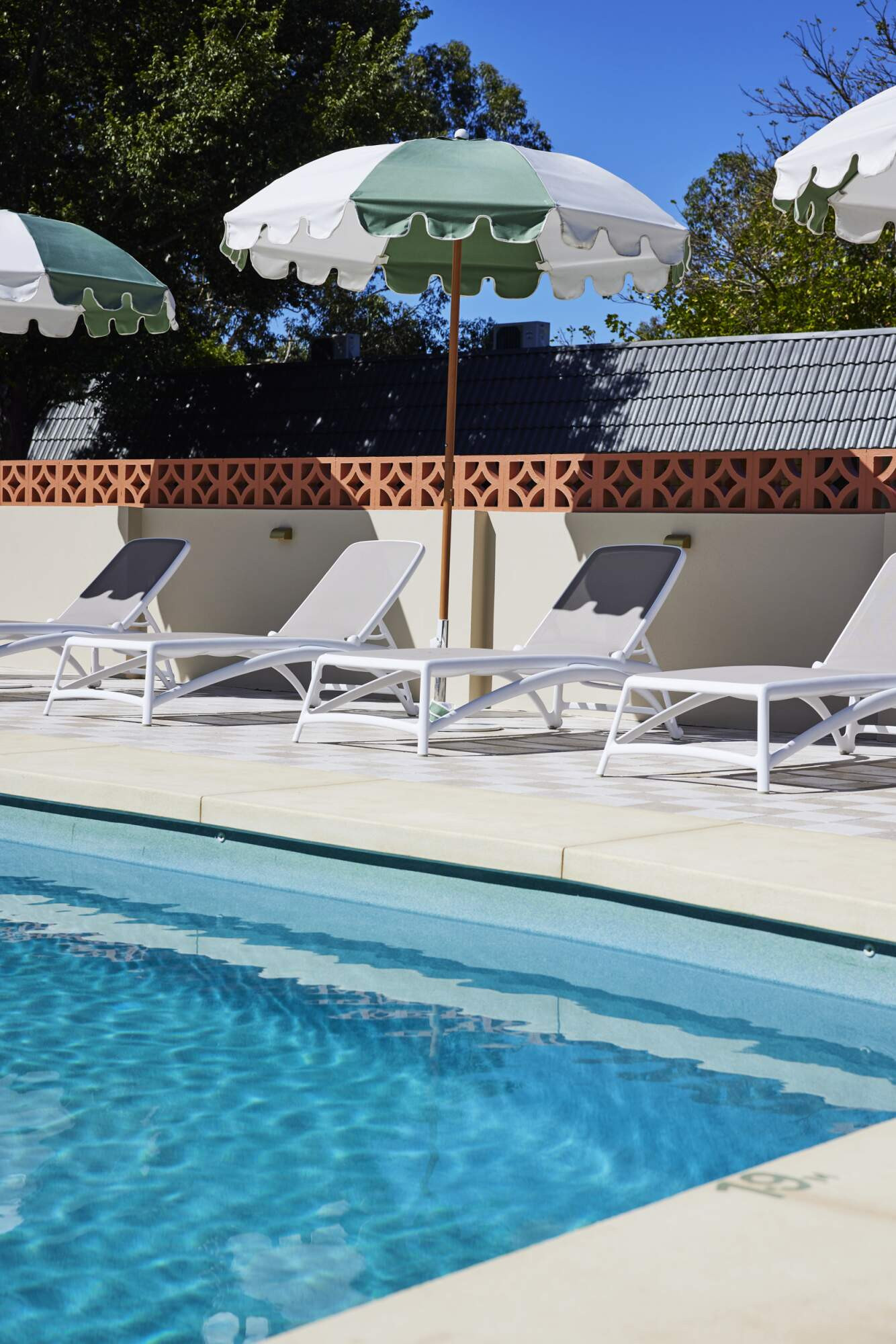 Bringing sexy back might be the song but bringing retro back was the aim for this resorts pool landscaping makeover. From drab to fab this place looks the goods after a total makeover with a retro theme as the goal.