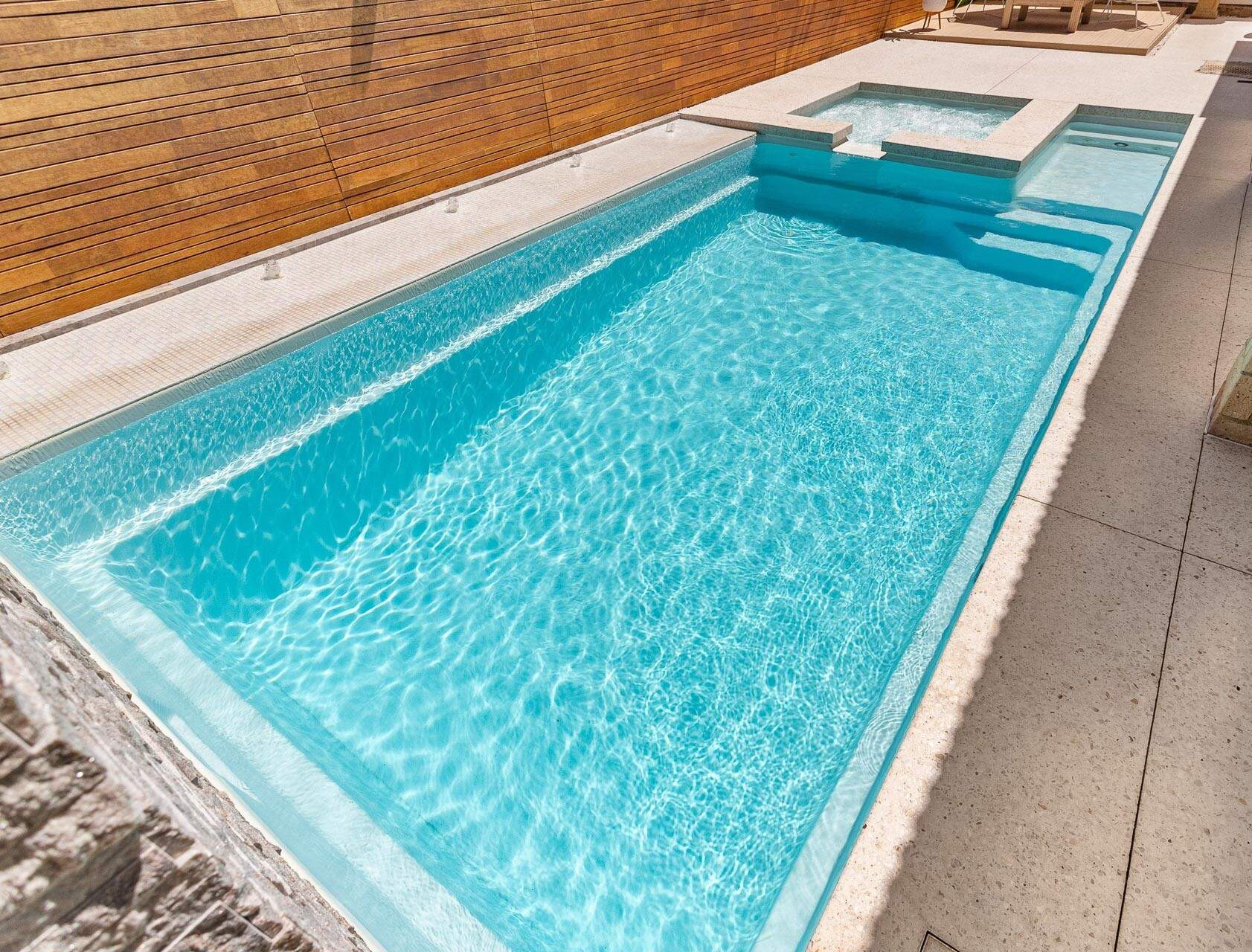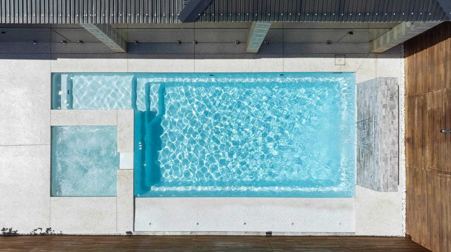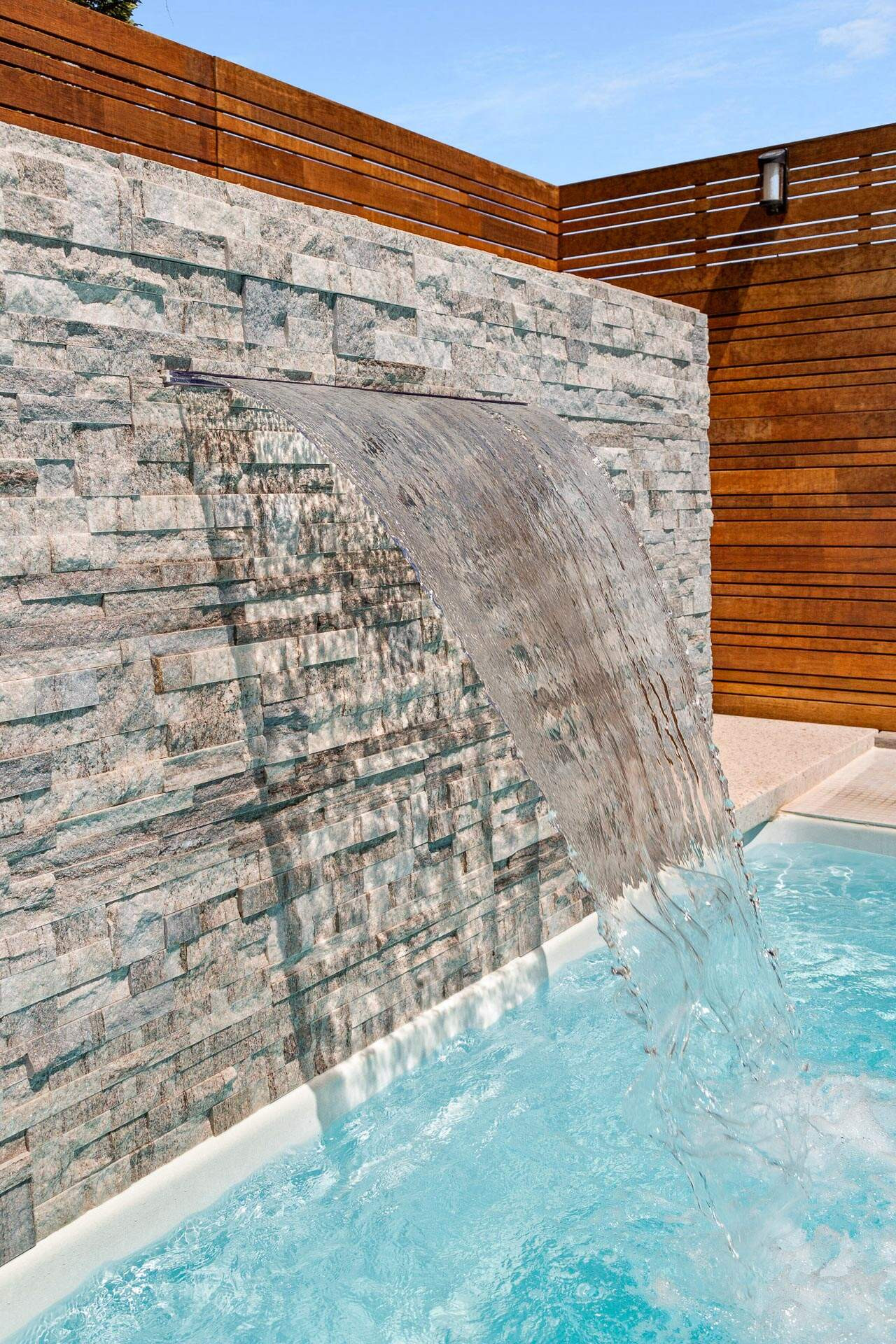 This pool & spa commination allowed room for a few innovative touches including fully mosaic tiled water sunbed with 4 x light bubblers as well as separately operated rock clad waterfall with 900mm blade, allowing water to cascade into the pool, both of these water features adding visual appeal and water acoustics.