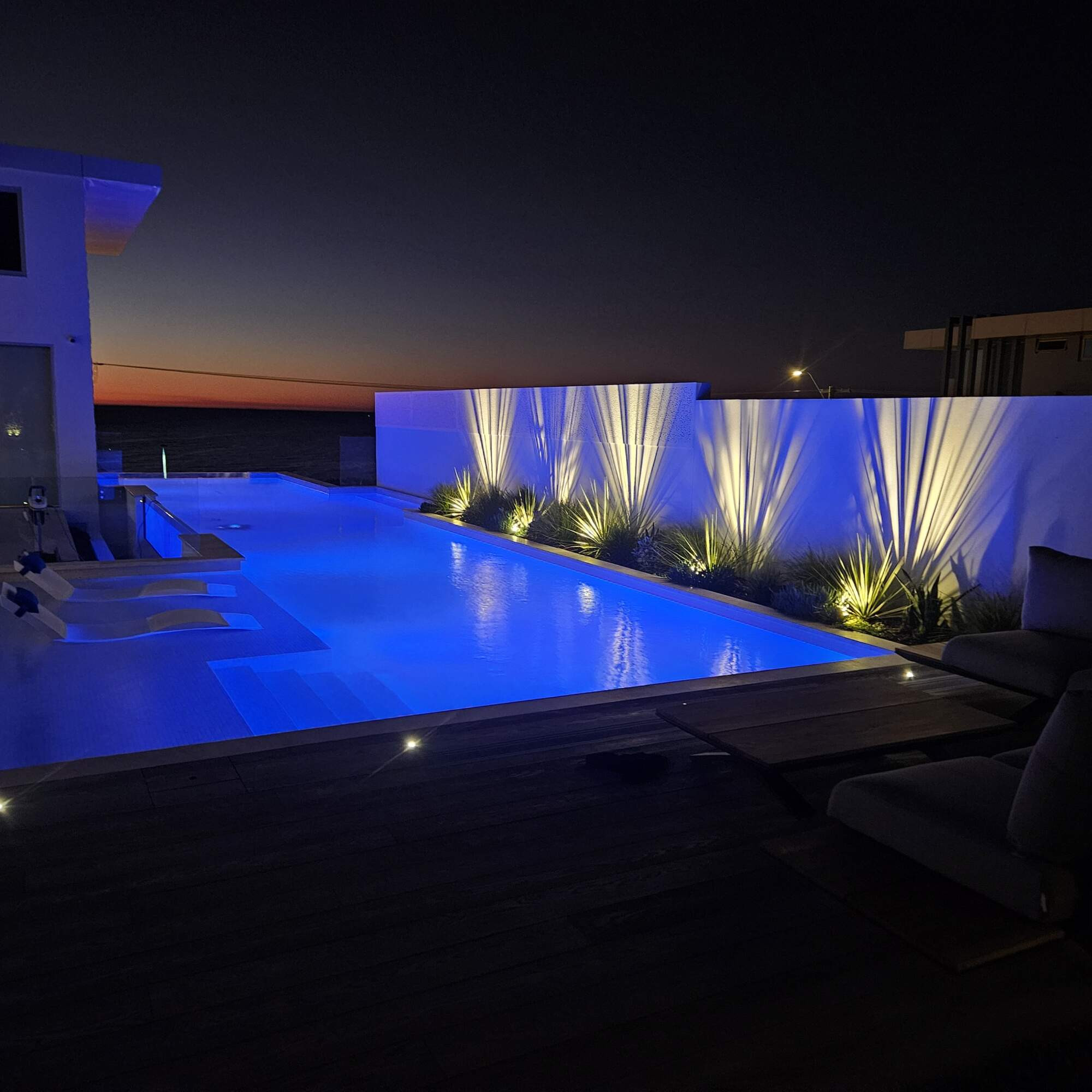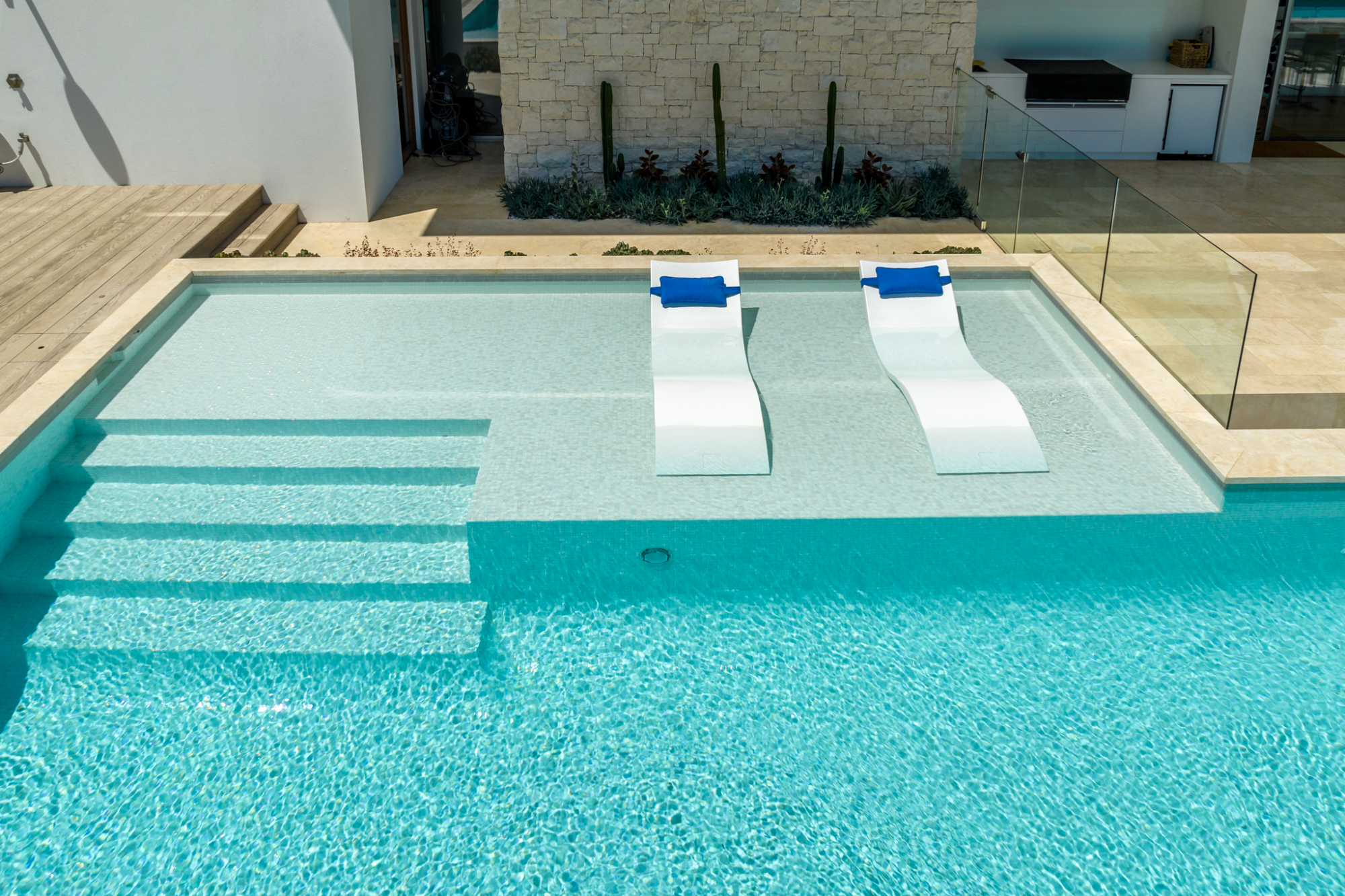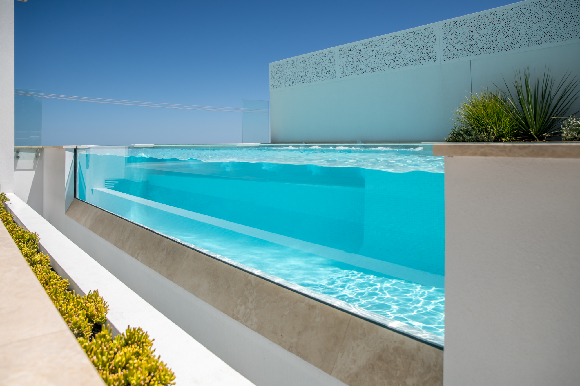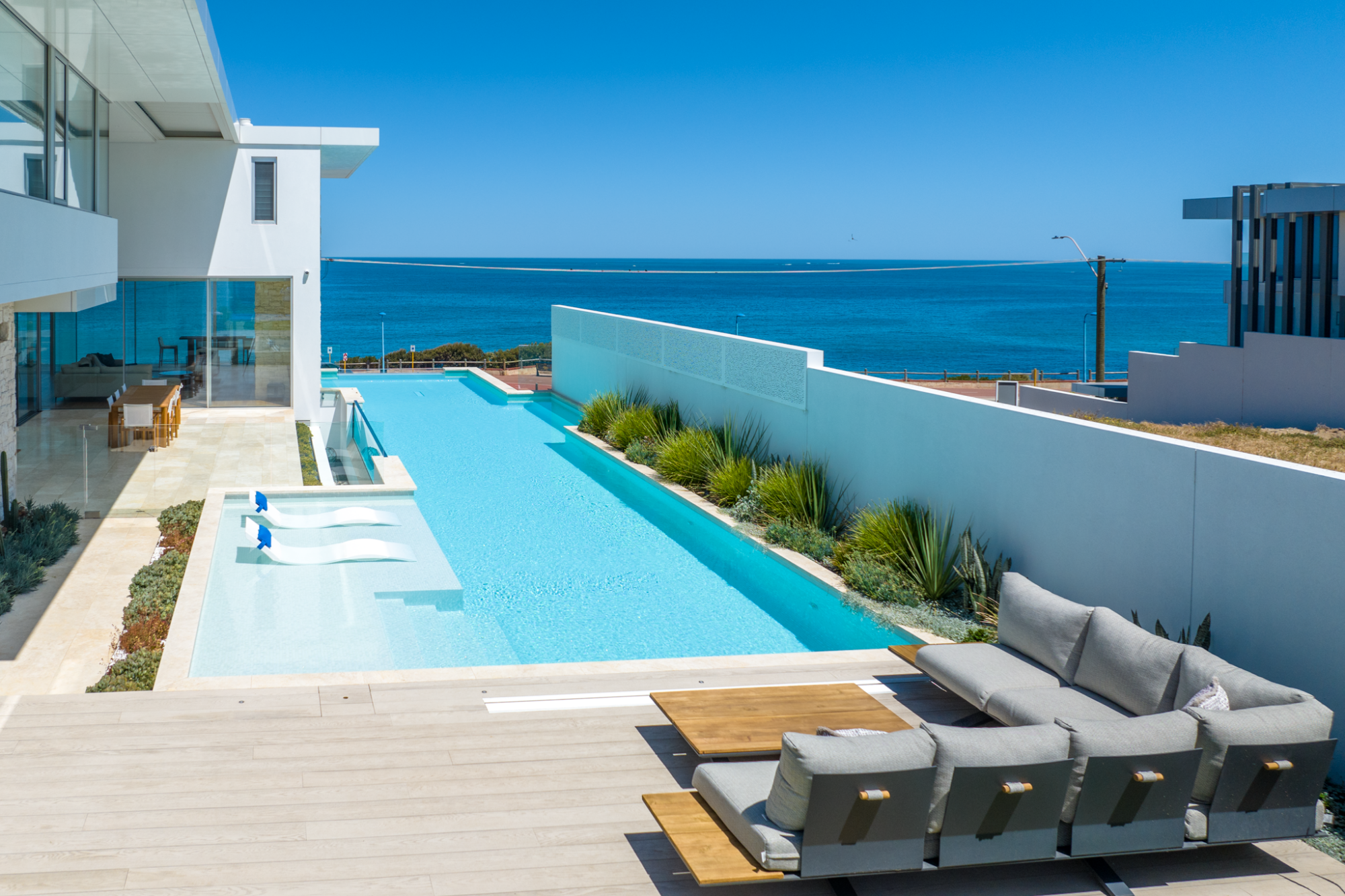 This lap pool is ‘out-of-this-world’ incredible…it honestly has it all! Fully tiled with a Baja shelf, the pool offers an incredible coastline from one of its two windows. When viewed from West Coast Drive, it is apparent how much design, engineering, construction and finesse have played a part in delivering this masterpiece. The client is so happy he decided to take our advice and completely change the design and the result is outstanding.