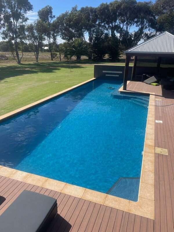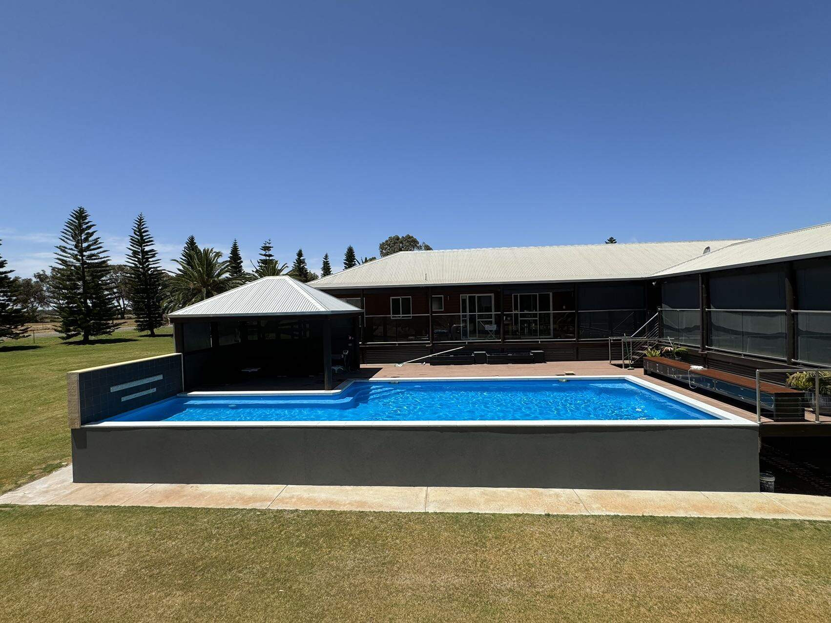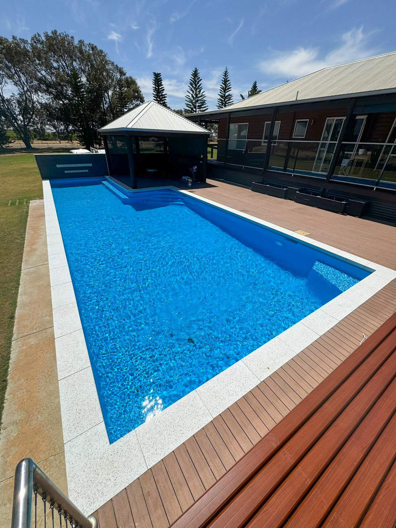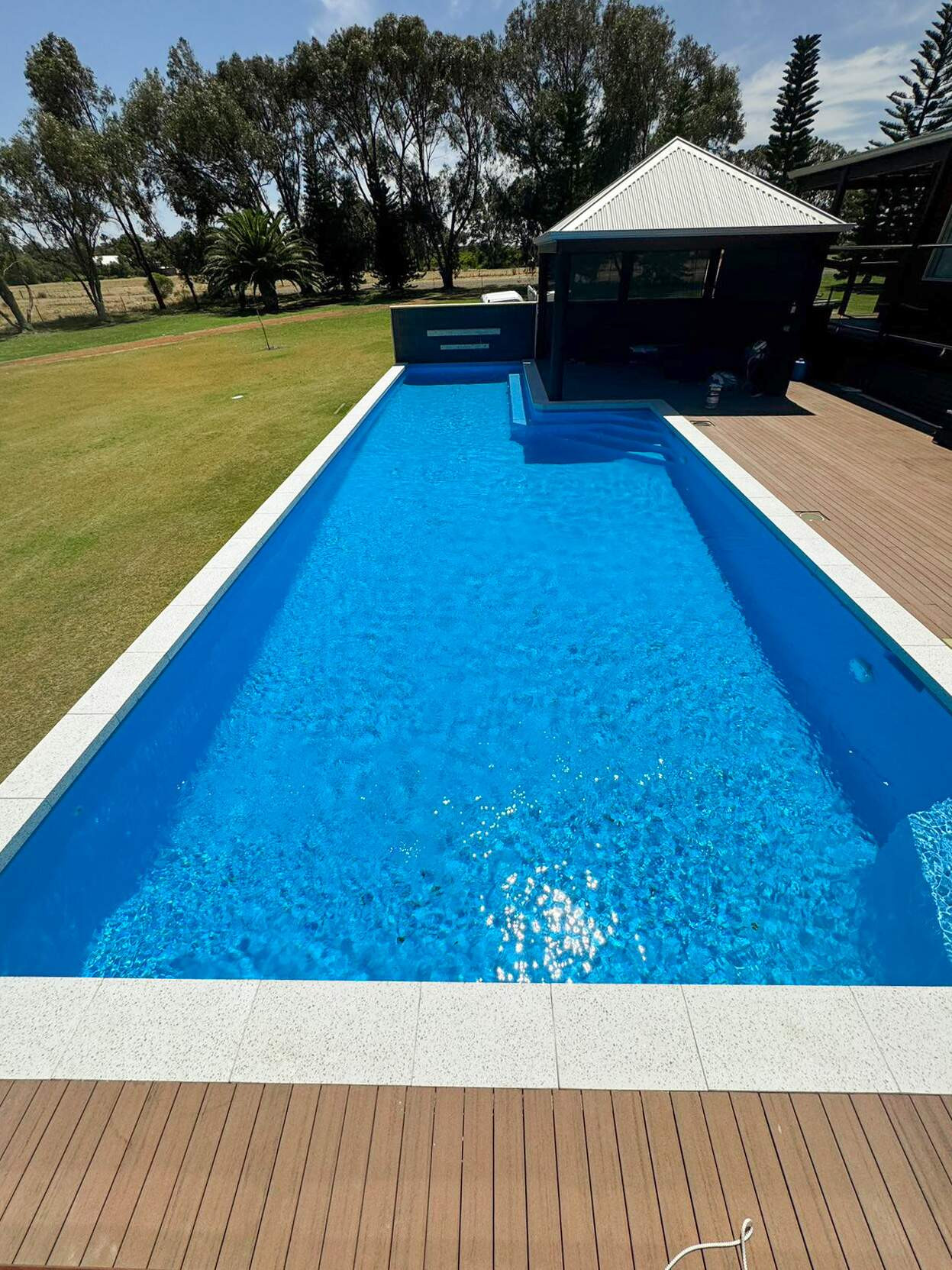Up the coast in the beautiful township of Dongara, an above-ground concrete pool renovation with a modern, inviting look.