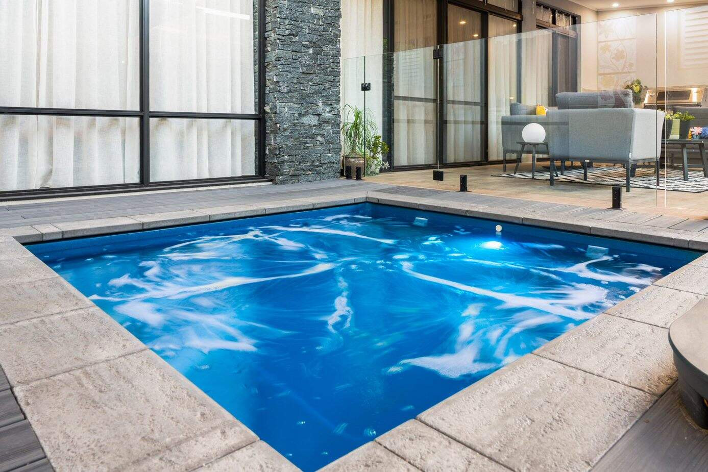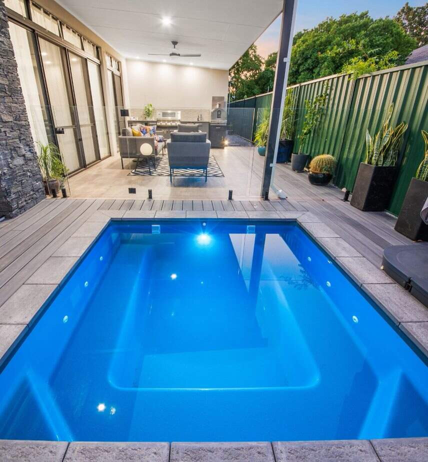 The 2.4 x2.4 Monaco Spa in Royal Jade is a lovely addition to this home's quaint outdoor entertainment space. With lighting, heating and 8 jets it comfortably sits 8 adults and dual access points allow easy positioning. A perfect size in this pocket, our customers enjoy many hours of both hot and cold spas and relaxing in their private haven they created.