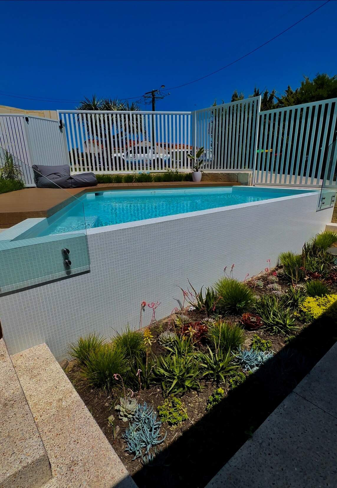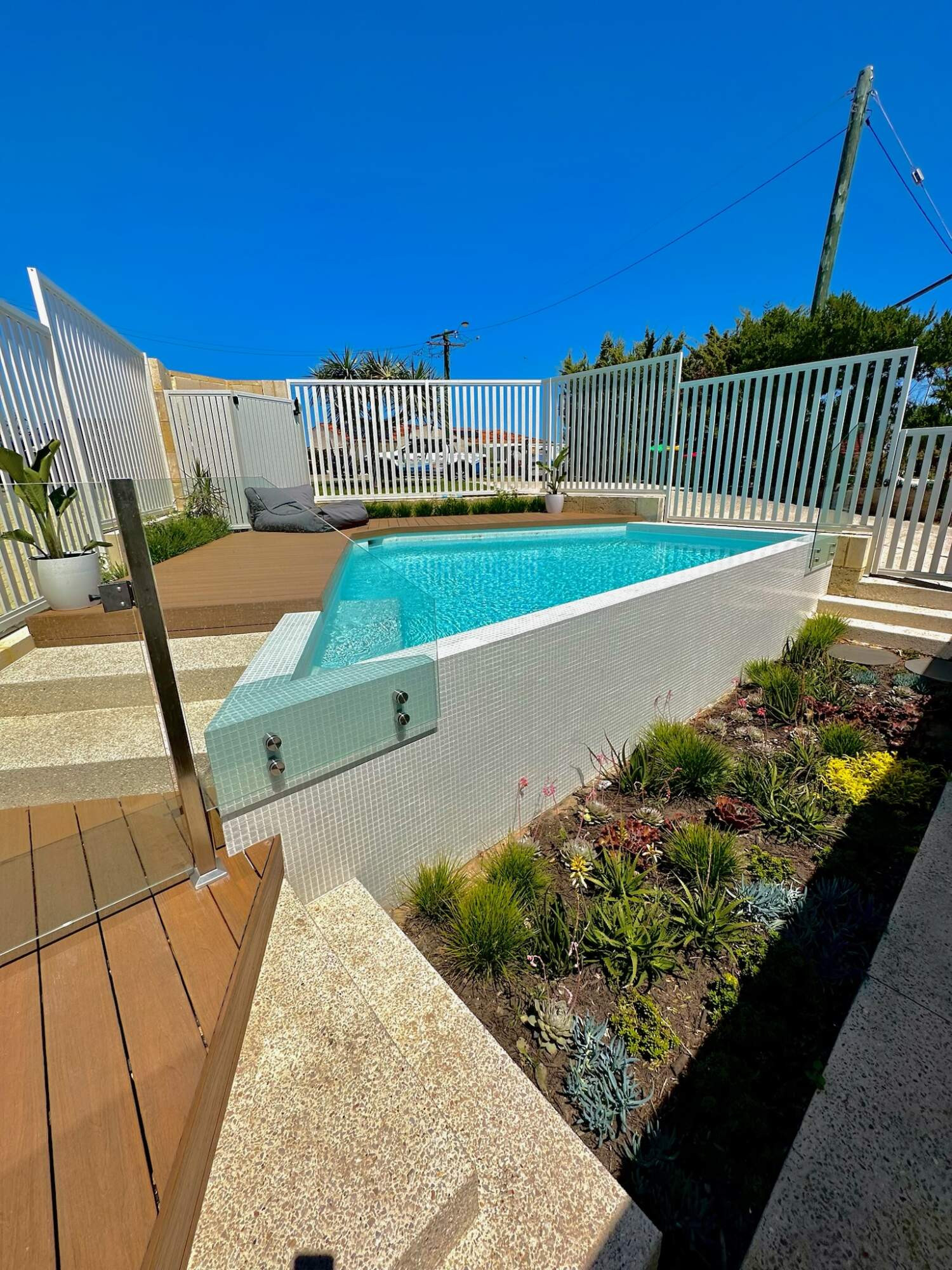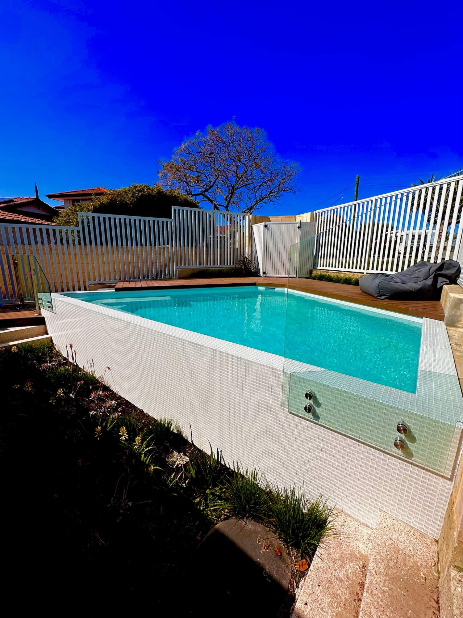 “Dive into luxury with our stunning partial out-of-the-ground concrete swimming pool, featuring a captivating mosaic wall. Elevate your backyard oasis with unparalleled style and sophistication. Immerse yourself in the ultimate blend of beauty and functionality, creating memories to last a lifetime. Experience the epitome of elegance with our bespoke pool design, tailored to exceed your every expectation.”