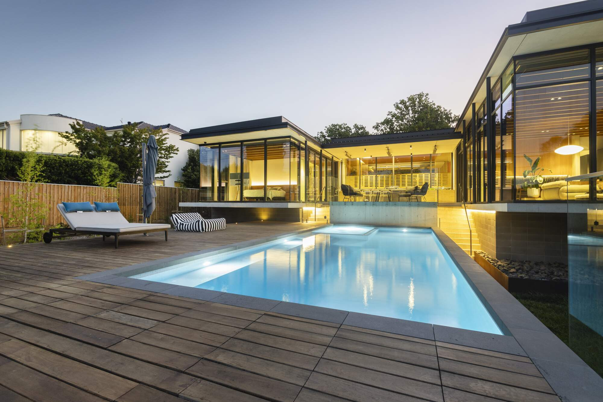 Resort style magnificence, showcasing our team’s attention to detail and insistence on excellence. Contemporary design combined with beauty and functionality. A classic, yet modern example of seamless integration between home, outdoor living and entertainment area and surrounding garden and the swimming pool and integrated spa.