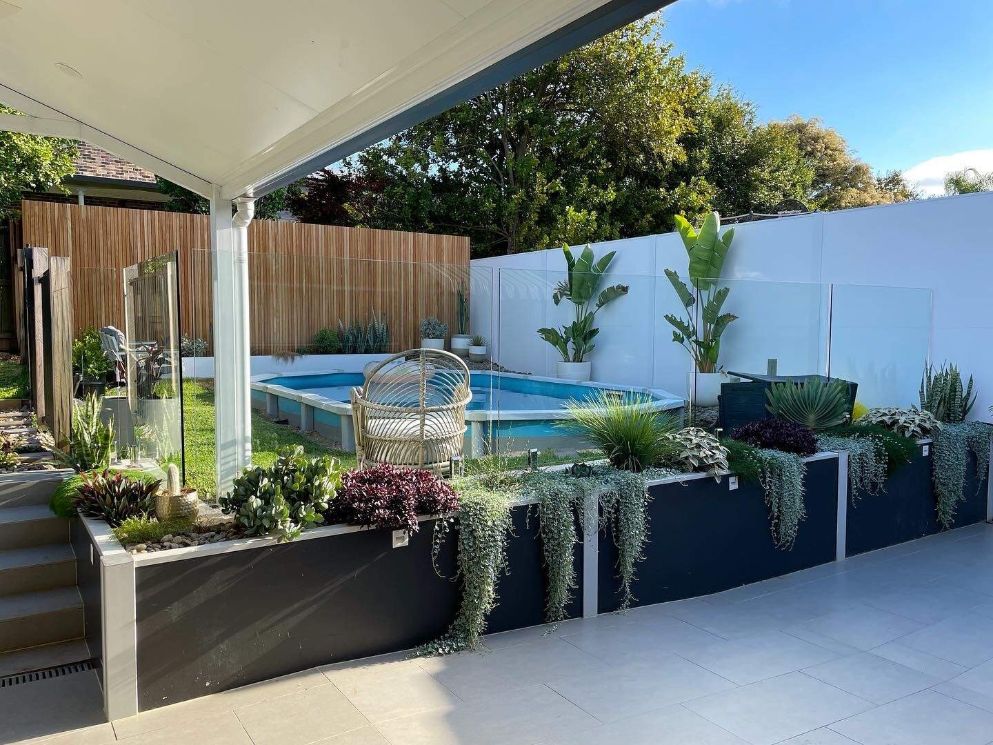 Experience the perfect blend of style and functionality with our modular pool, seamlessly integrated into a sloping hill for a sleek semi-inground look. Enhanced with our innovative Swim Out Step and bench kit, this space is now more inviting and practical than ever. Surrounded by lush greenery and elegant glass fencing, it’s the ultimate backyard retreat for relaxation and entertainment.