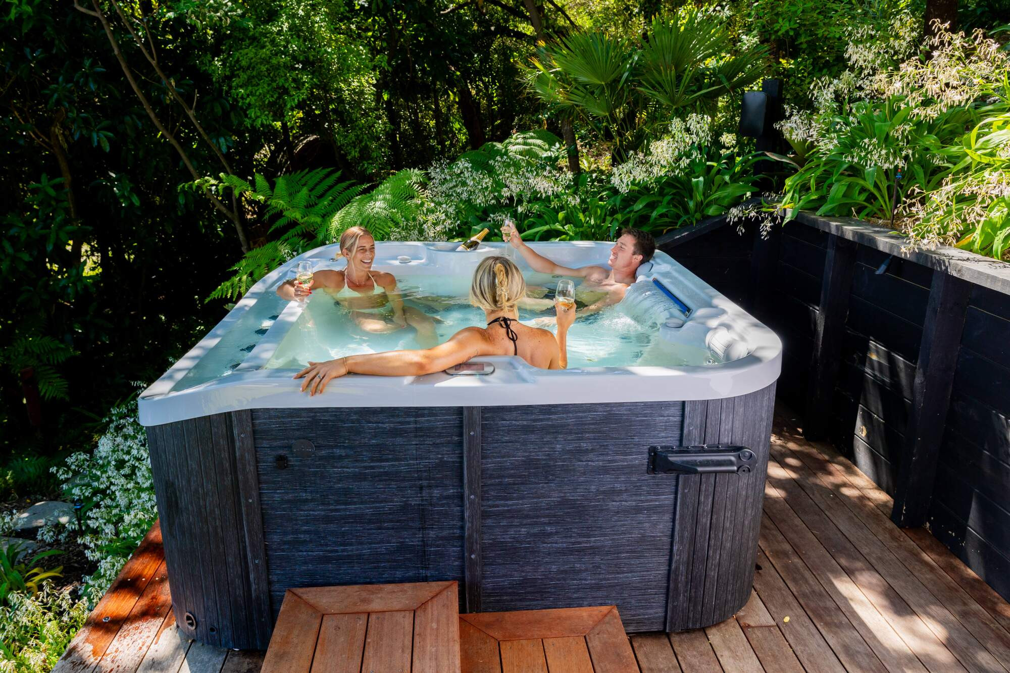 Experience ultimate relaxation with the 6-seater Niagara spa, featuring an infinity edge waterfall for a stunning visual effect and soothing sound. Its universal seating layout includes a cool-off seat and two loungers offering full-body hydrotherapy via three robust Gecko® jet pumps. With Alpine’s Four Layer Insulation™, SpaNet® SmartTouch Control, and UltraClear™ UV-C, Ozone, and NaturePure™ sanitization, this eco-friendly spa reduces power bills and chemical use while providing a serene, low-