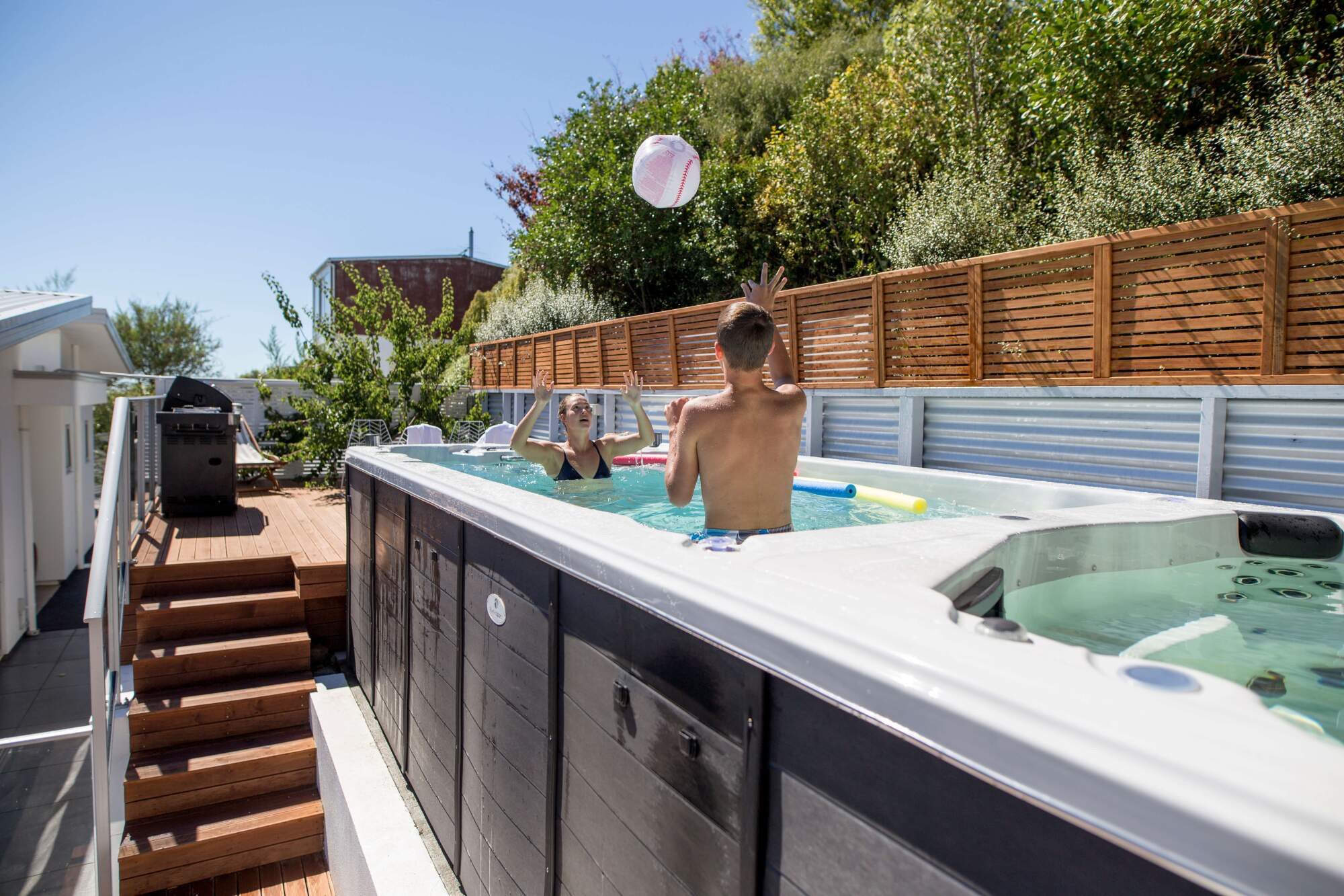 Columbus is a versatile Swim Spa with powerful propulsion jets and a dedicated Spa Zone featuring a luxurious recliner. It offers 8 ergonomic hydromassage seats for the whole family and helps refine your swim stroke. Its built-in water purification reduces chlorine use, while the intelligent SpaNetĀ® controller ensures easy operation. With top-notch insulation, Columbus is one of the most efficient and exciting Swim Spas available.