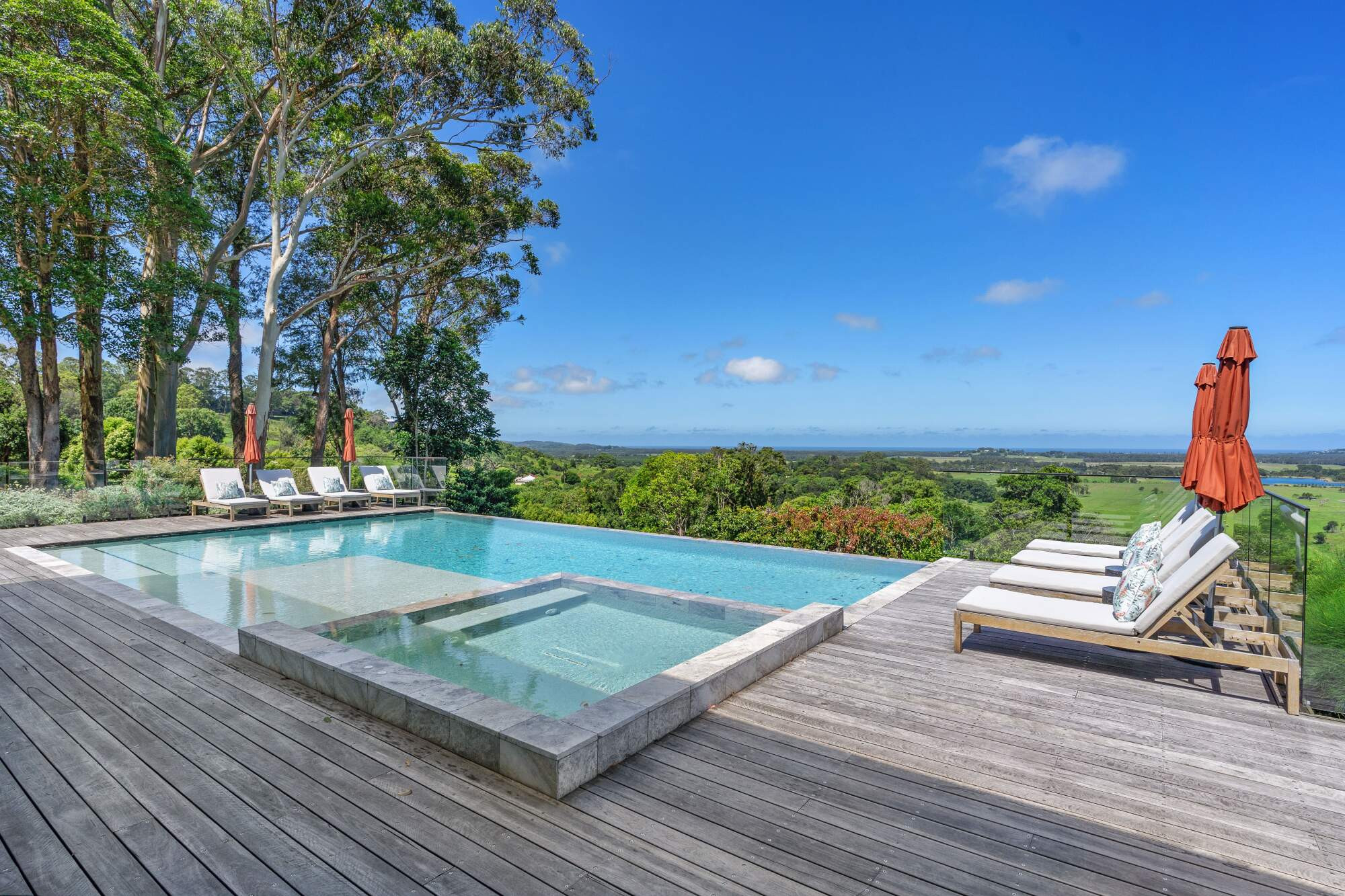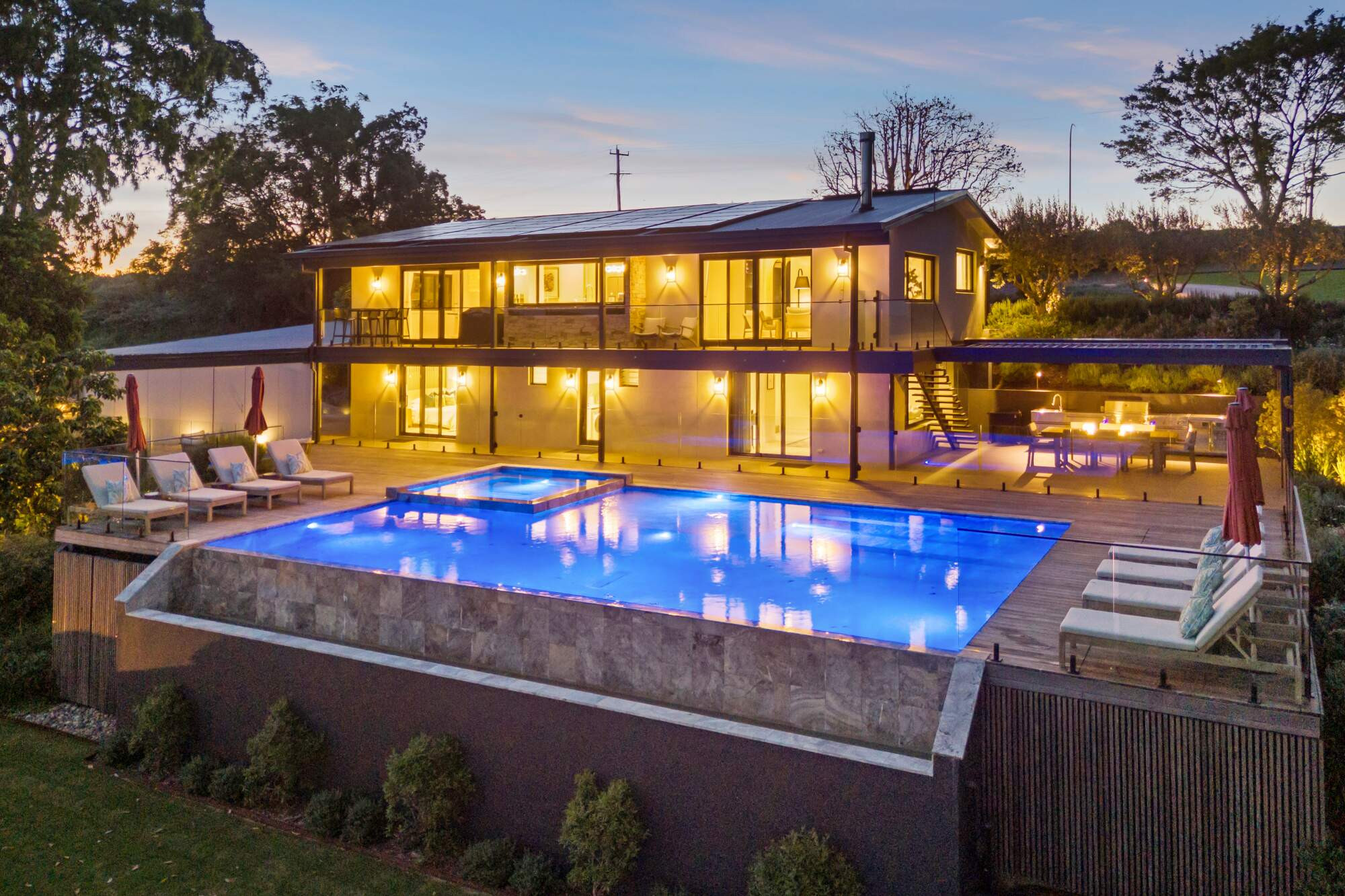 Embraced by open skies and nestled amongst the hinterlands rolling hills. Created to be a luxurious escape that is harmonious with its surroundings through the use of warm natural finishes with a seamless transition to the water by following the flow of the house, this pool is visually striking due to its use of strong clean lines. The infinity edge emboldens the modern design through the idea of transcending spacial limitations allowing one to be immersed in calming water with indulgent views.