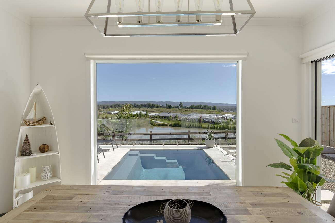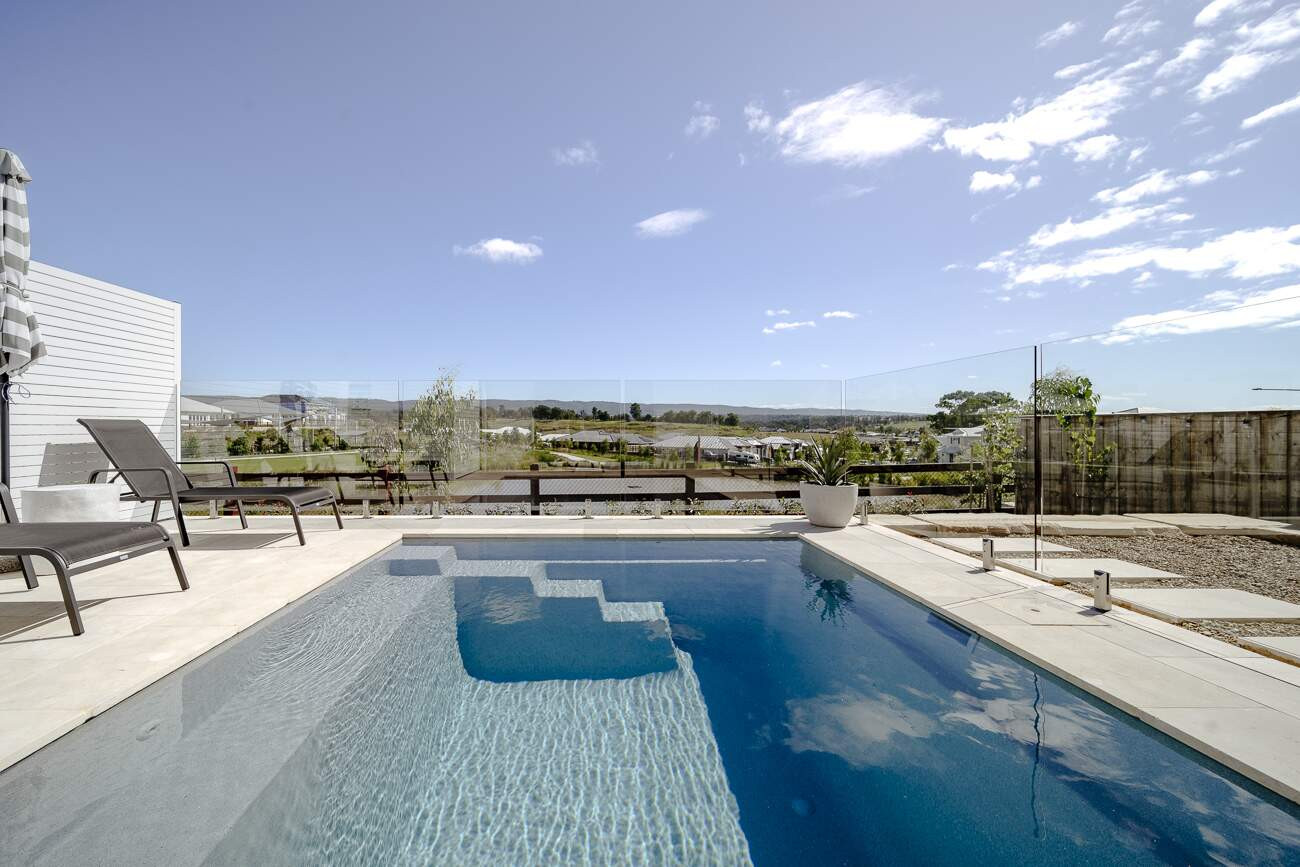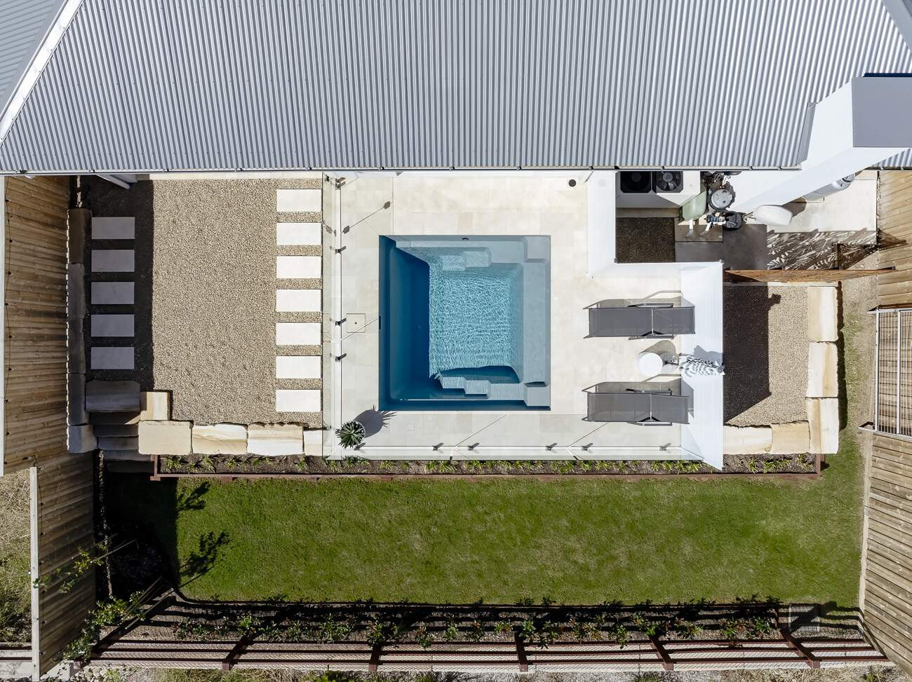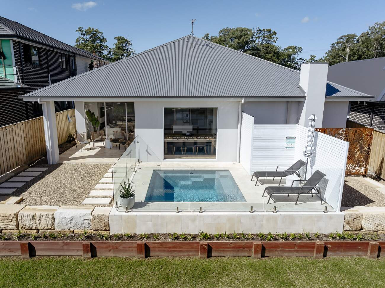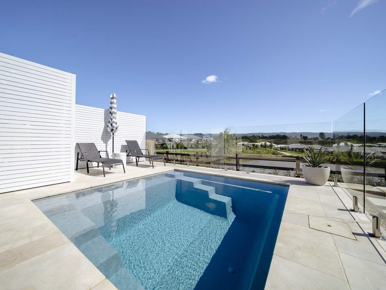 This elevated pool design seamlessly integrates with its surroundings, overcoming a sloping block to offer stunning views from both the house and the water. Compact yet deep, it provides the perfect space for family enjoyment, blending functionality with beautiful, natural aesthetics.