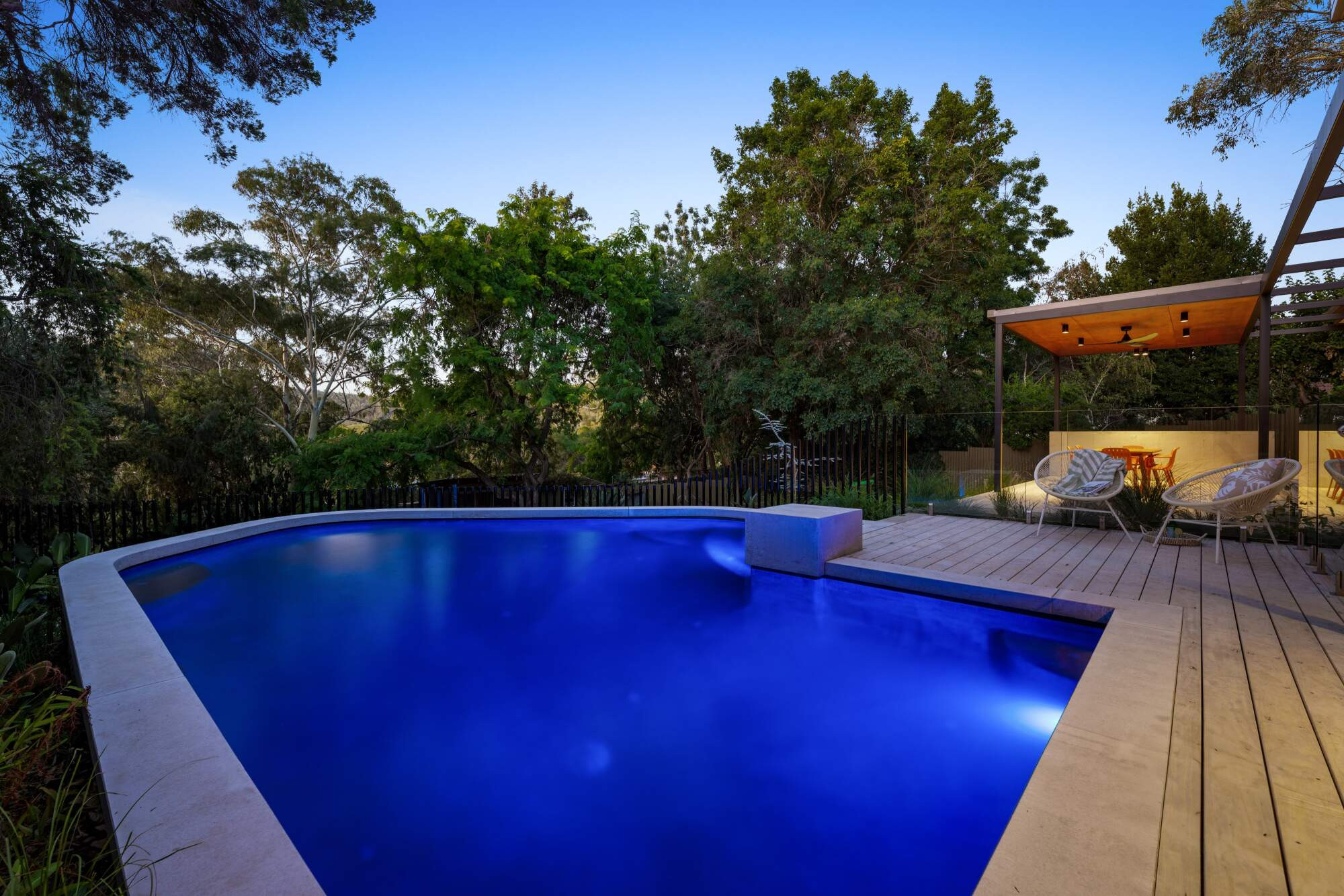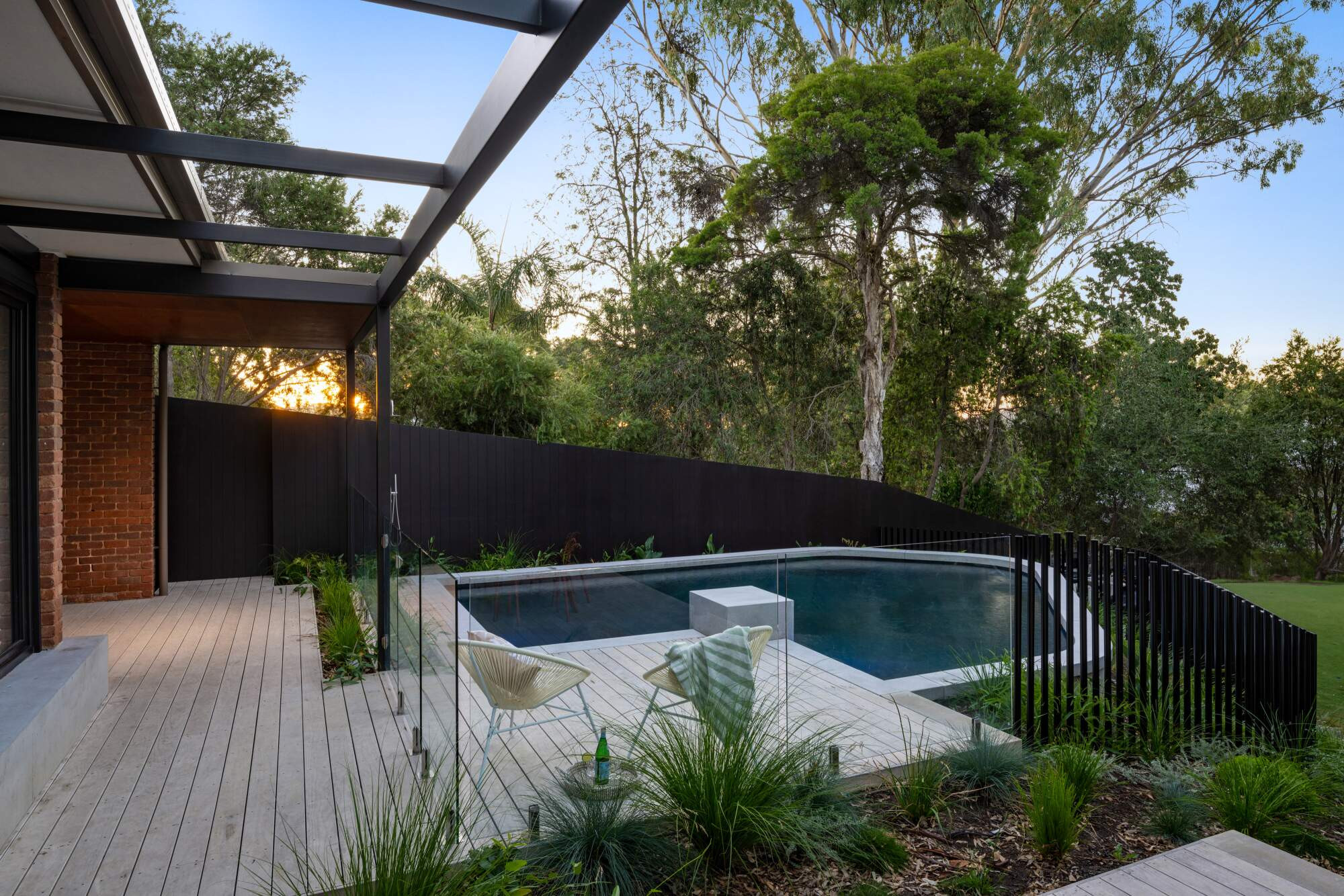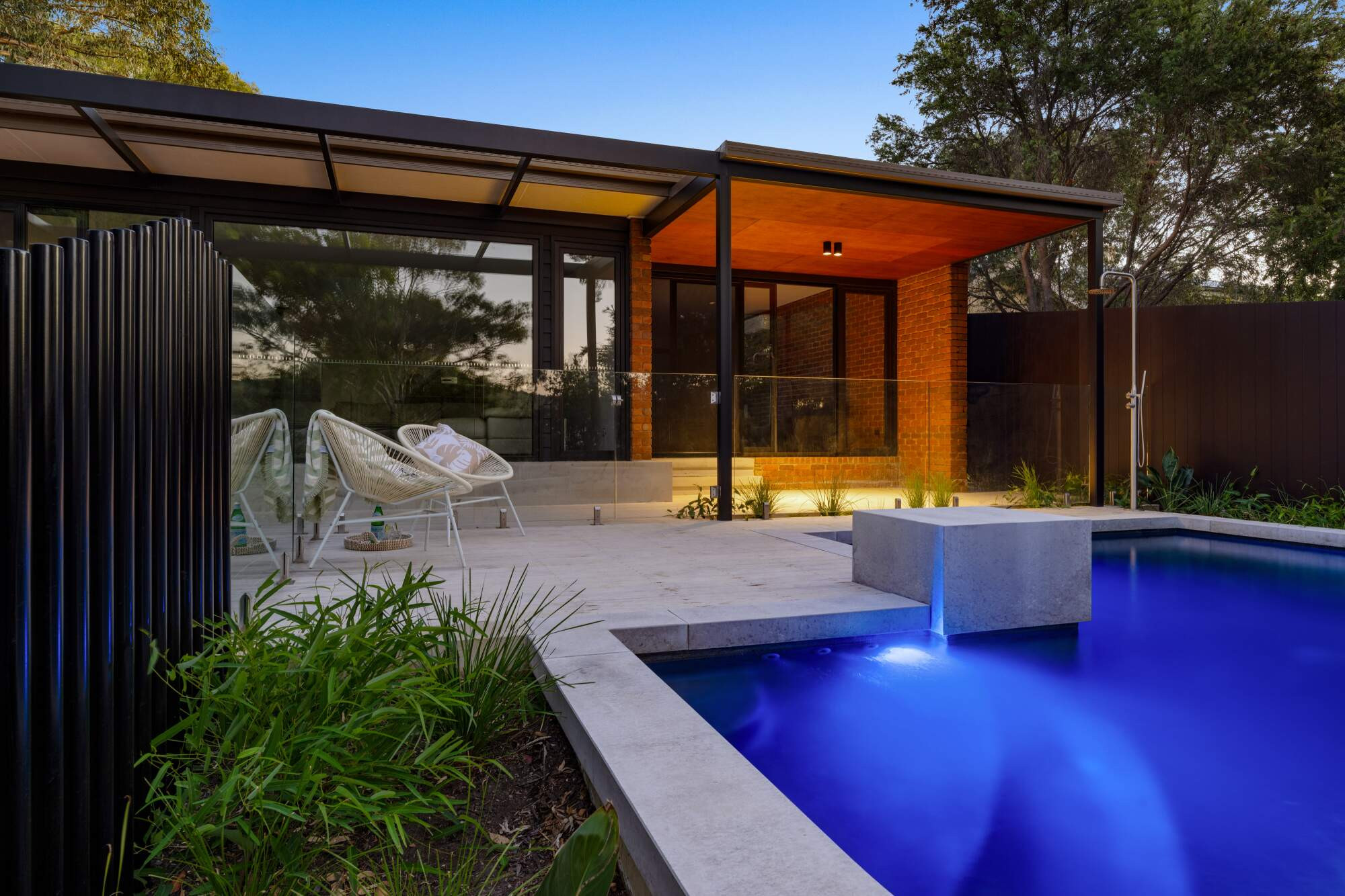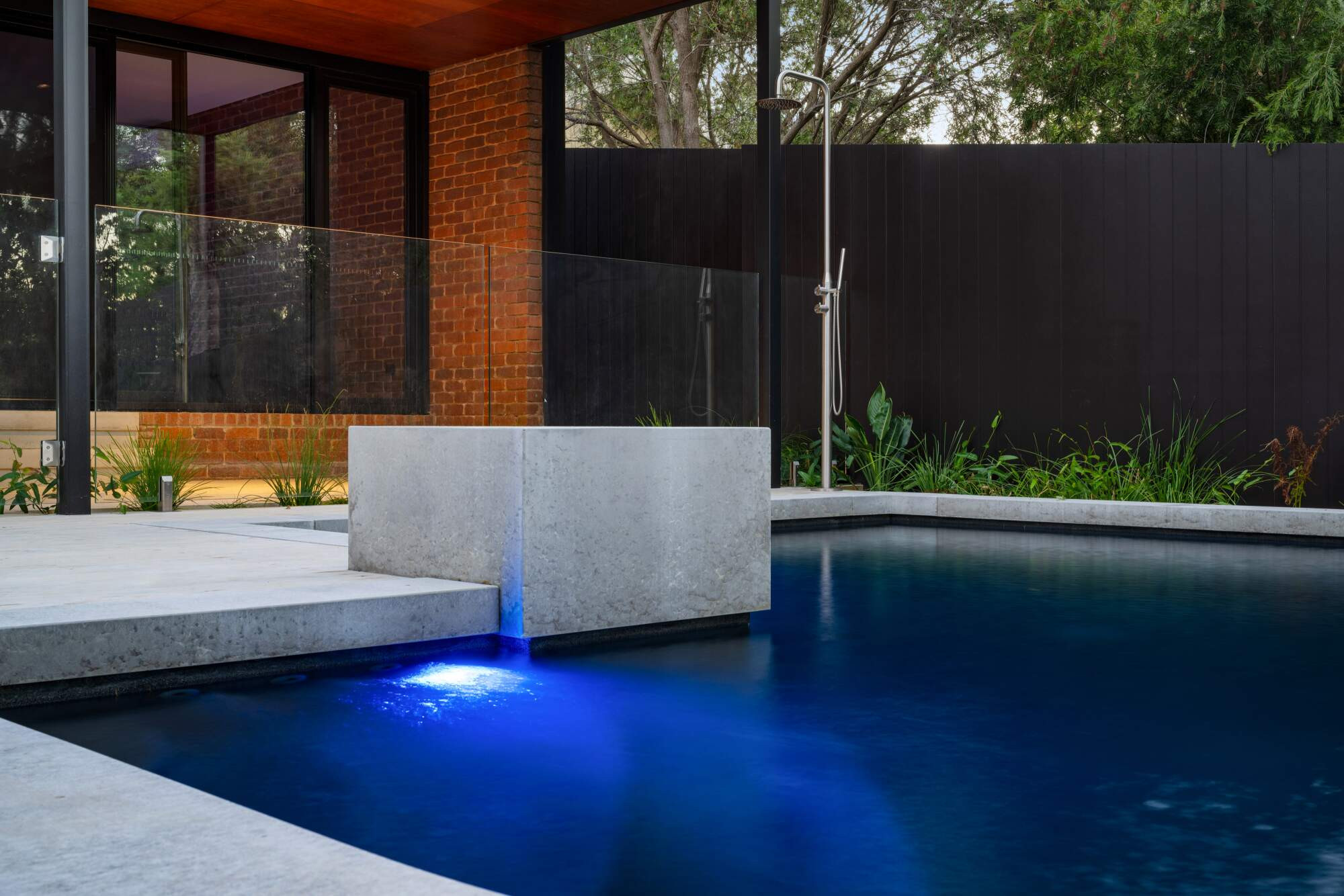 This stunning freeform-style concrete pool seamlessly integrates with its natural surroundings while showcasing sophisticated architectural design. Featuring elegantly curved walls, custom pre-cast concrete coping, and a striking off-form concrete finish, it harmonises with the sloping landscape to create a visually striking and functional outdoor retreat. Thoughtfully designed for both relaxation and recreation, this pool is a testament to innovative craftsmanship, balancing elegance.