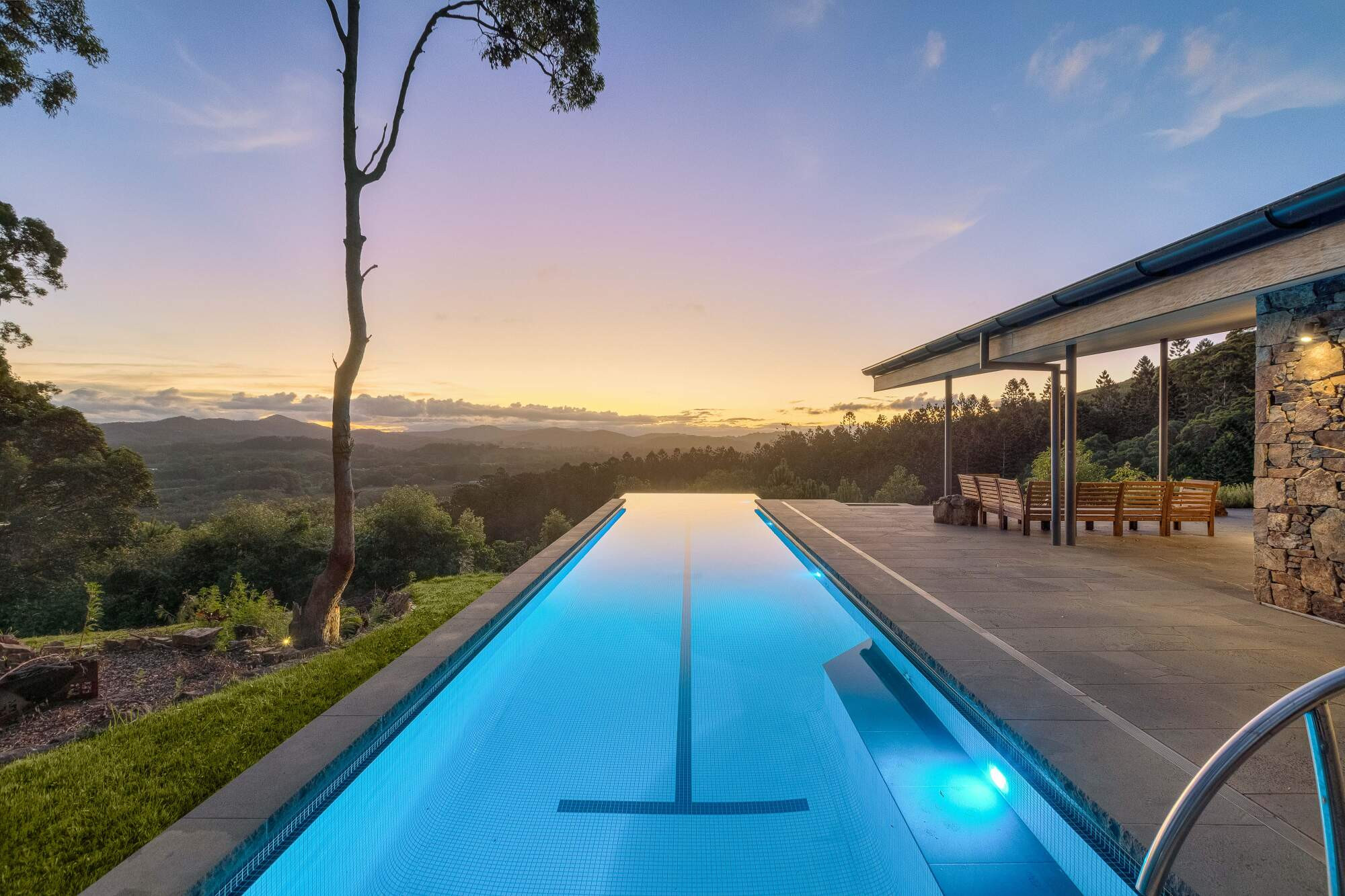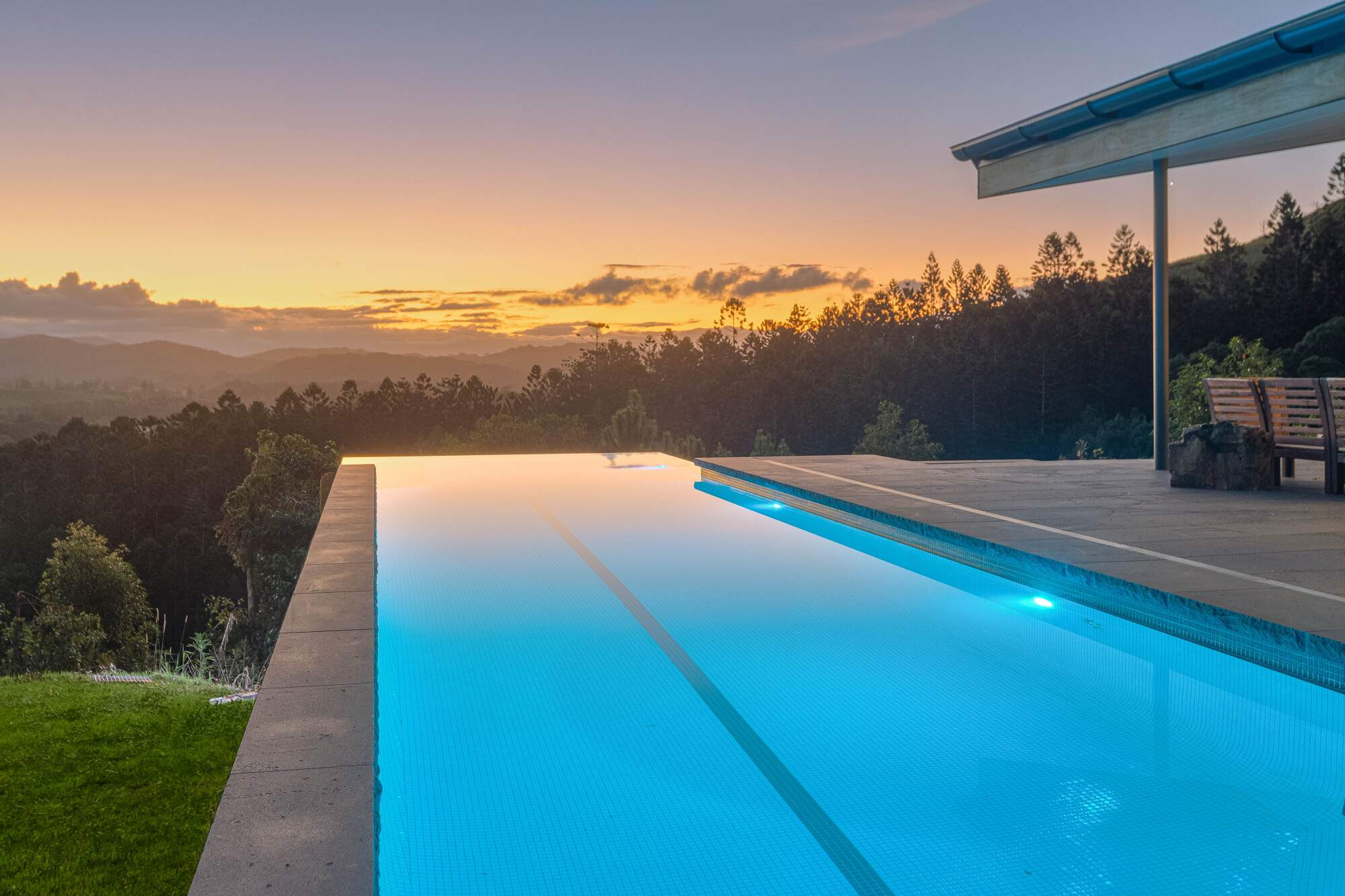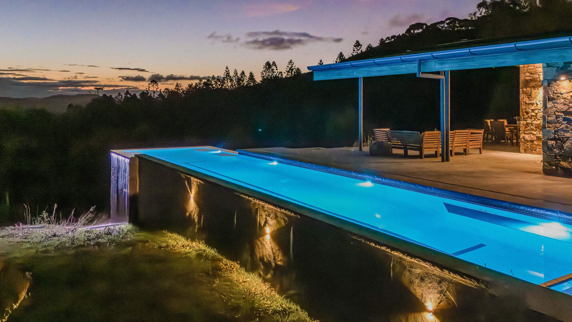 This 15-metre lap pool is designed to blend effortlessly with its natural surroundings, creating a tranquil retreat. Set into the sloping landscape, it offers a seamless connection between home and nature. The gentle spillover edge, highlighted by soft LED lighting, creates a peaceful atmosphere perfect for relaxation and exercise. With every detail crafted to enhance the beauty of the setting, this pool transforms the outdoor space into a sanctuary that elevates everyday living.
